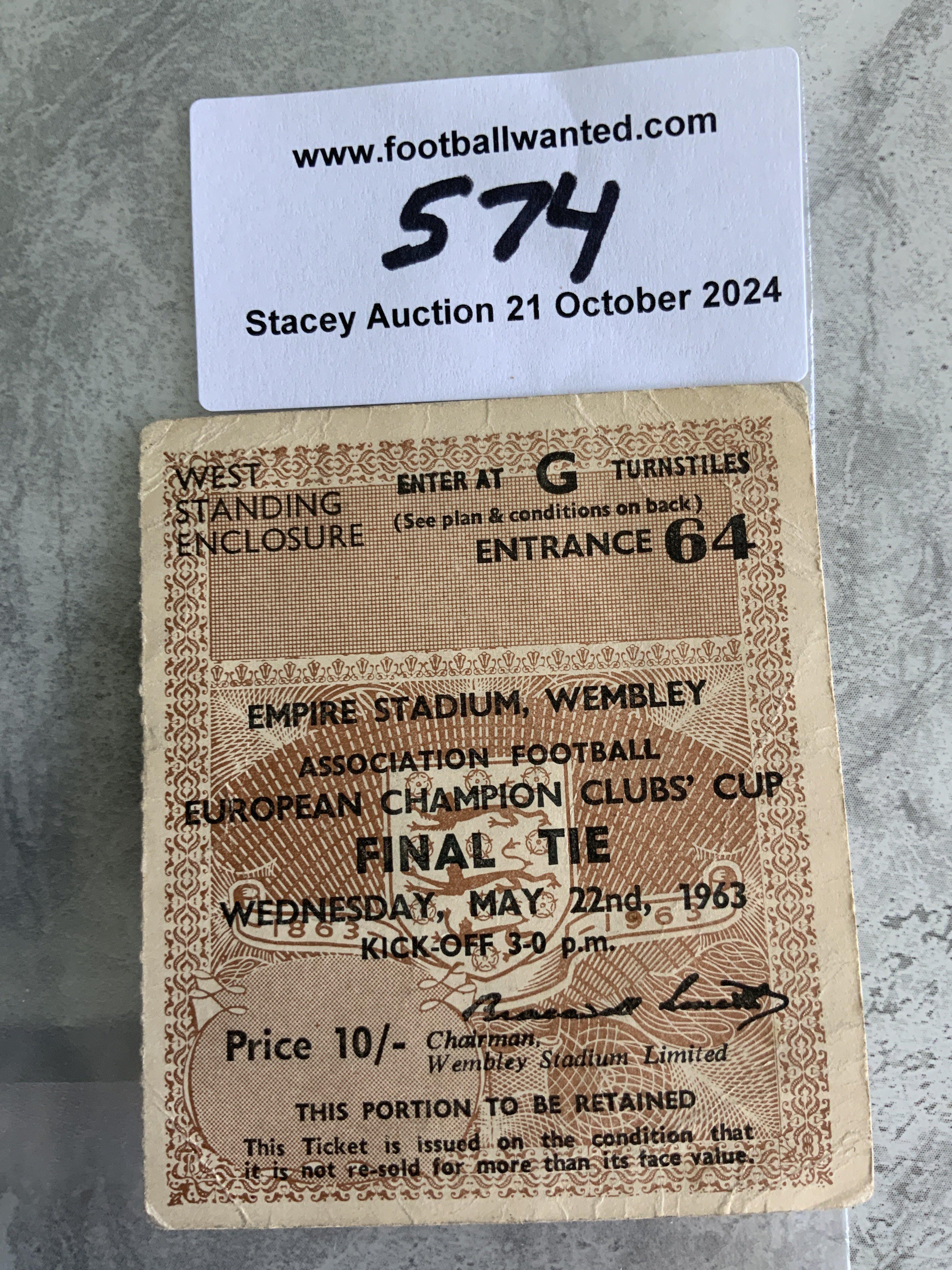 1963 European Cup Final Football Ticket: Benfica v AC Milan at Wembley in good condition with a couple of minor creases at corners.