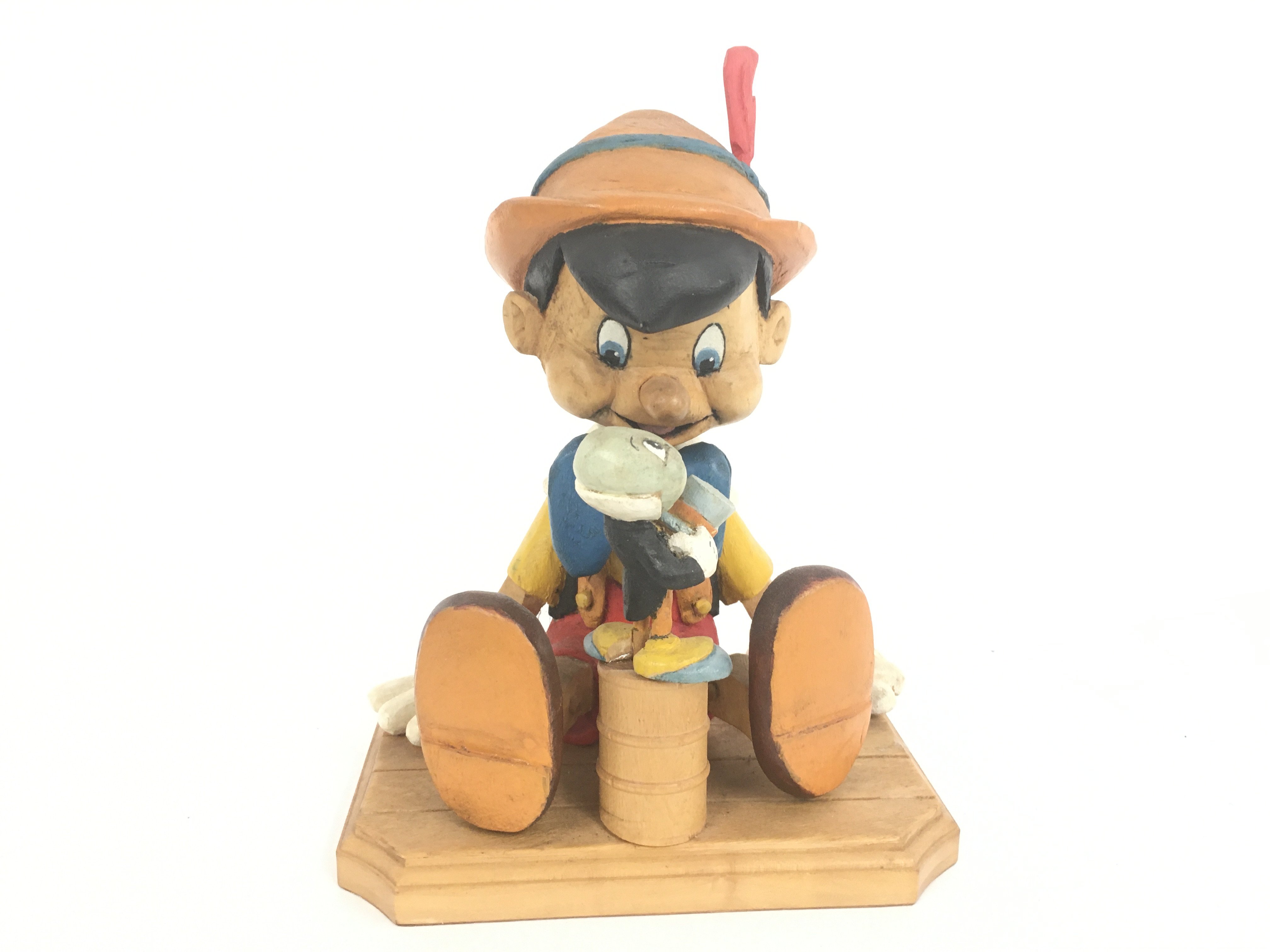 A 1936 1 Off Carving From a Islington Shop Window For Book Displays. A Pinocchio and Jiminy Cricket.