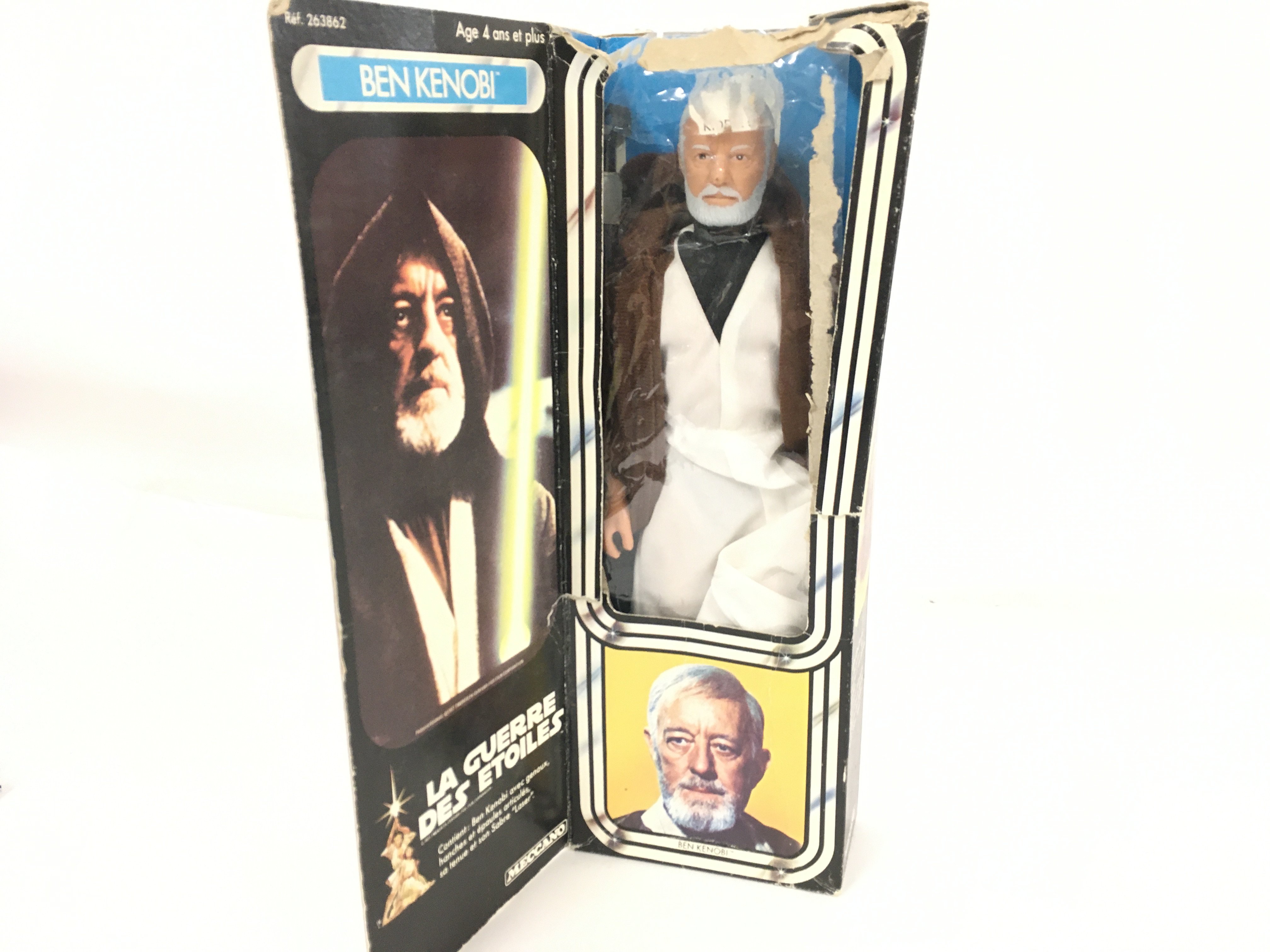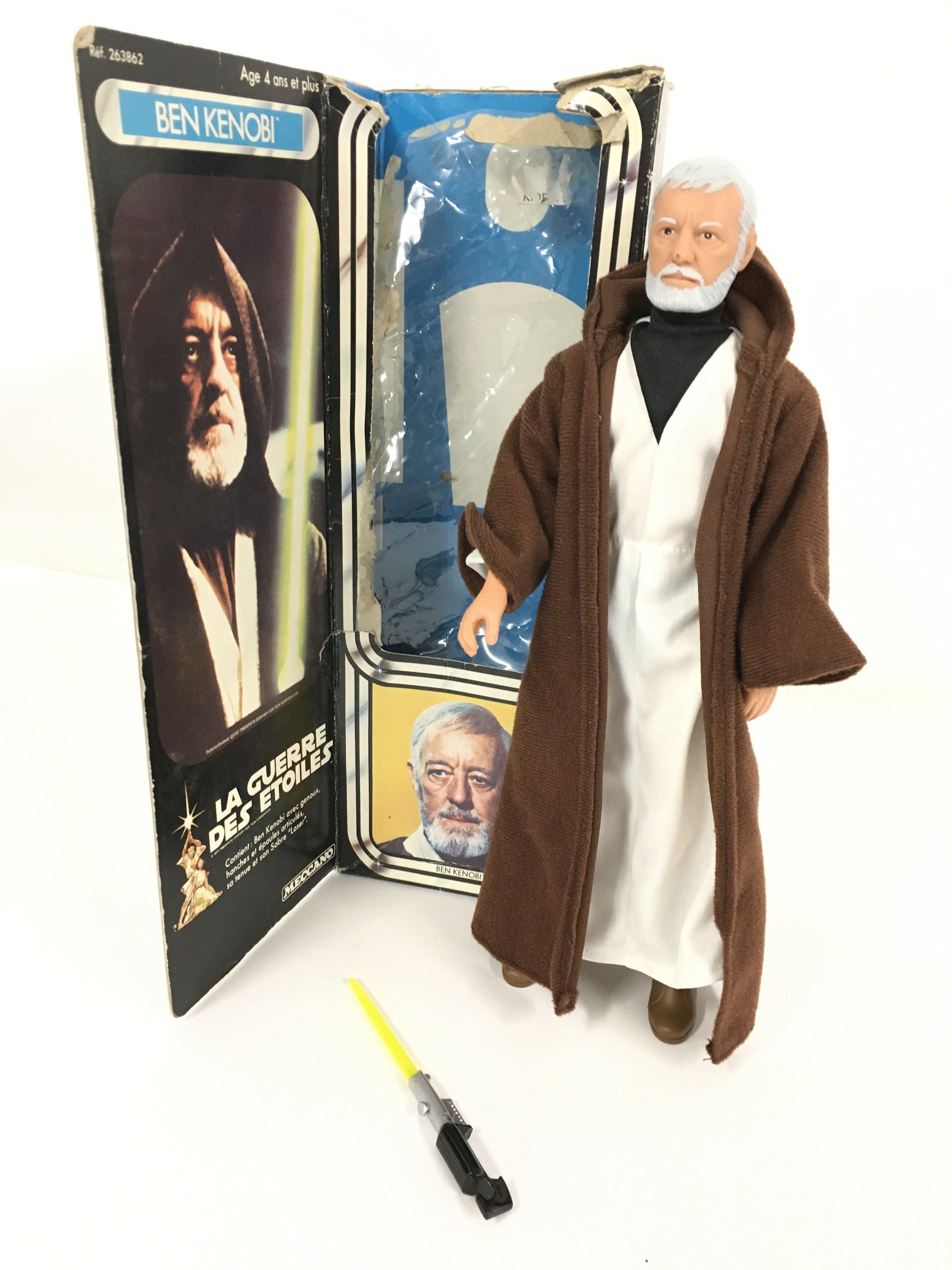 A French Boxed Vintage Star Wars Meccano Ben Kenobi 12" Doll. Box is worn.
