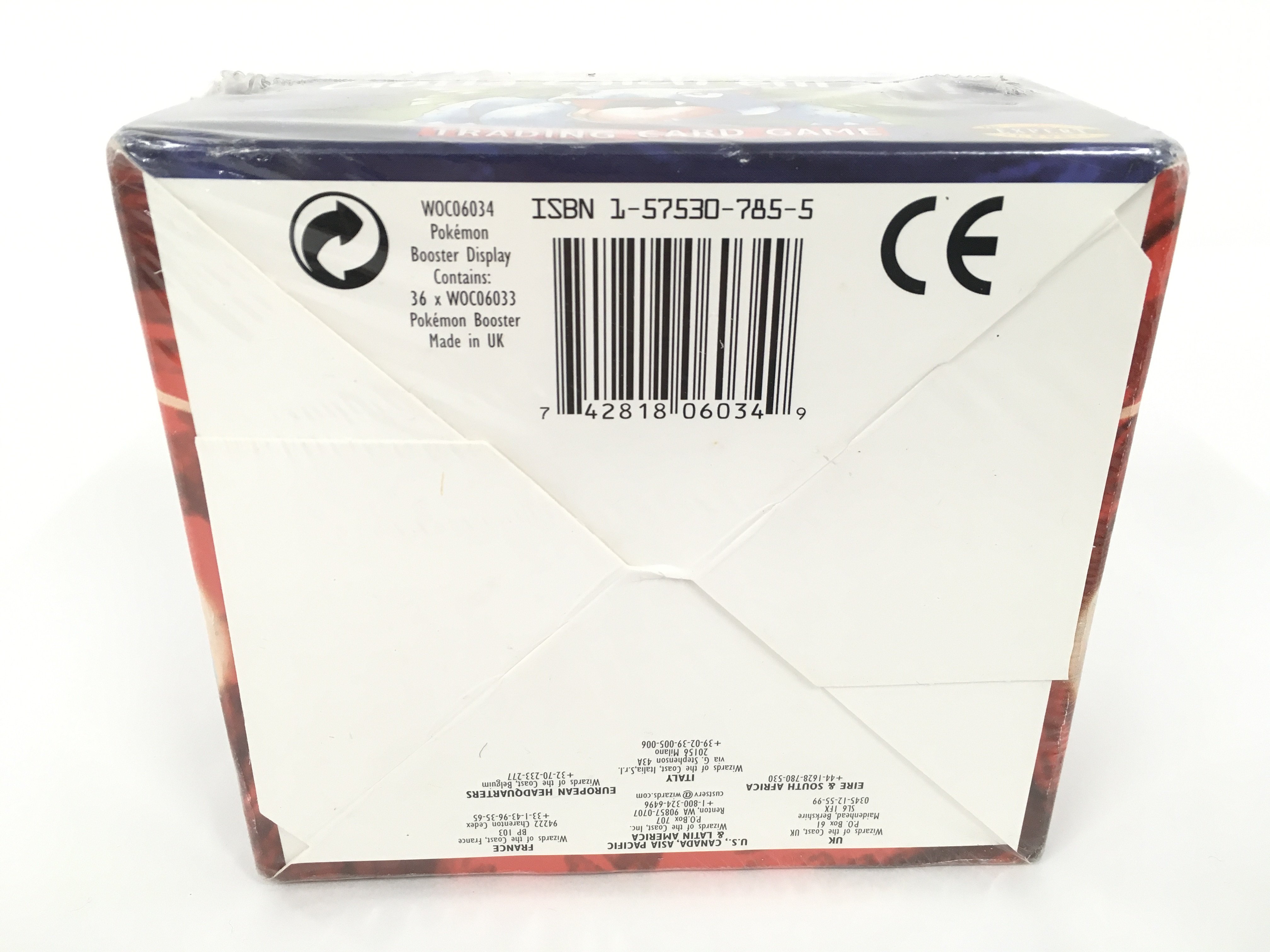 A Rare Boxed Pokemon Forth Print U.K. Base Set Sealed Booster Box (Wizards Of The Coast 1999-2000) on January 9, 1999 the Base Set Was Released, which Was the Launch of one of the most popular trading card Games in the world. The set included a total of 102 cards. Including the highly popular Charizard. This sealed 4th Print (Released in the U.K.) Base Set Booster Box. Includes 36 Booster Packs. Each with 11 Cards. A total of 396 cards. The Cards Have Never Been Touched and They are likely Gem Mint.the Cards inside these Boxes have the Copyright years as 1999-2000 unlike the Limited version which only have the year 1999. This is why many refer to this edition as Base Set 2000