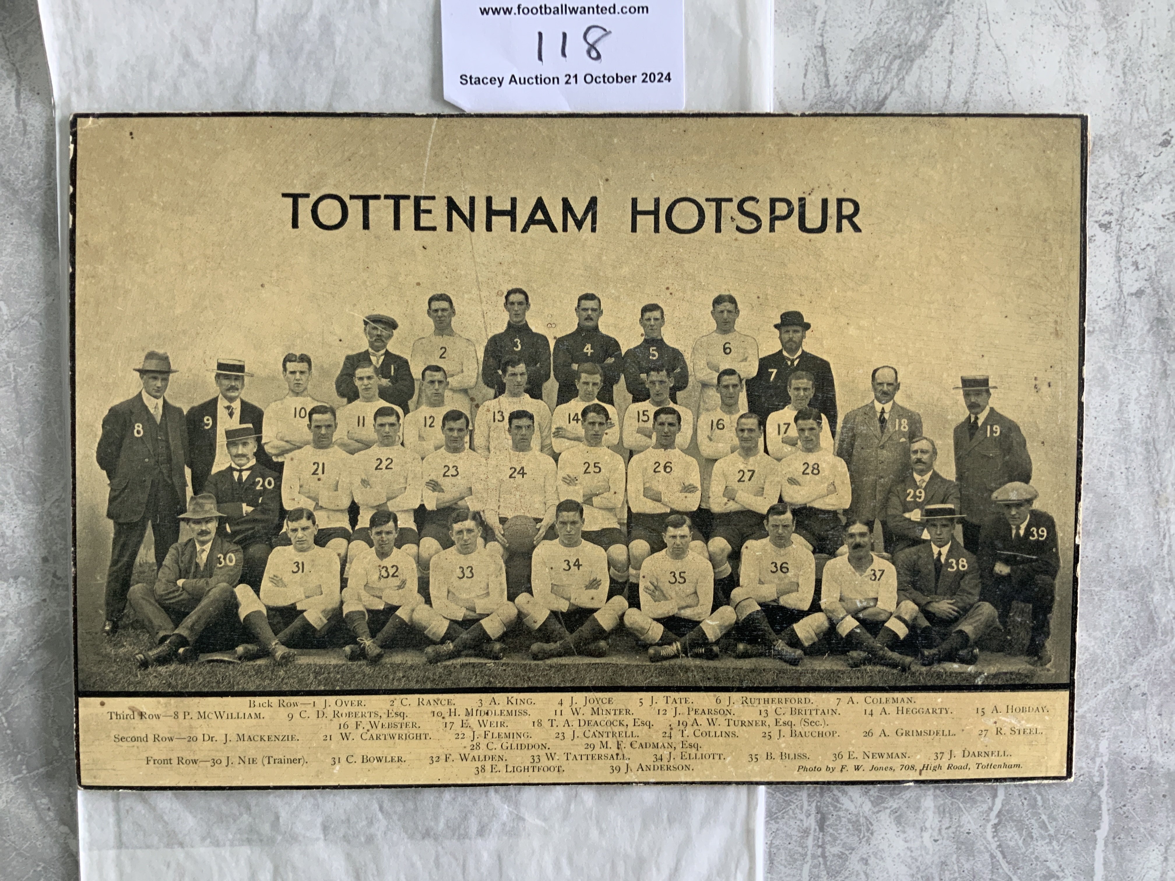 Tottenham 1913 - 1914 Large Squad Group Picture: Last season pre 1st World War is mounted with each member of staff and player numbered 1-39 then named in print underneath. Measures 10.5 x 8 inches.