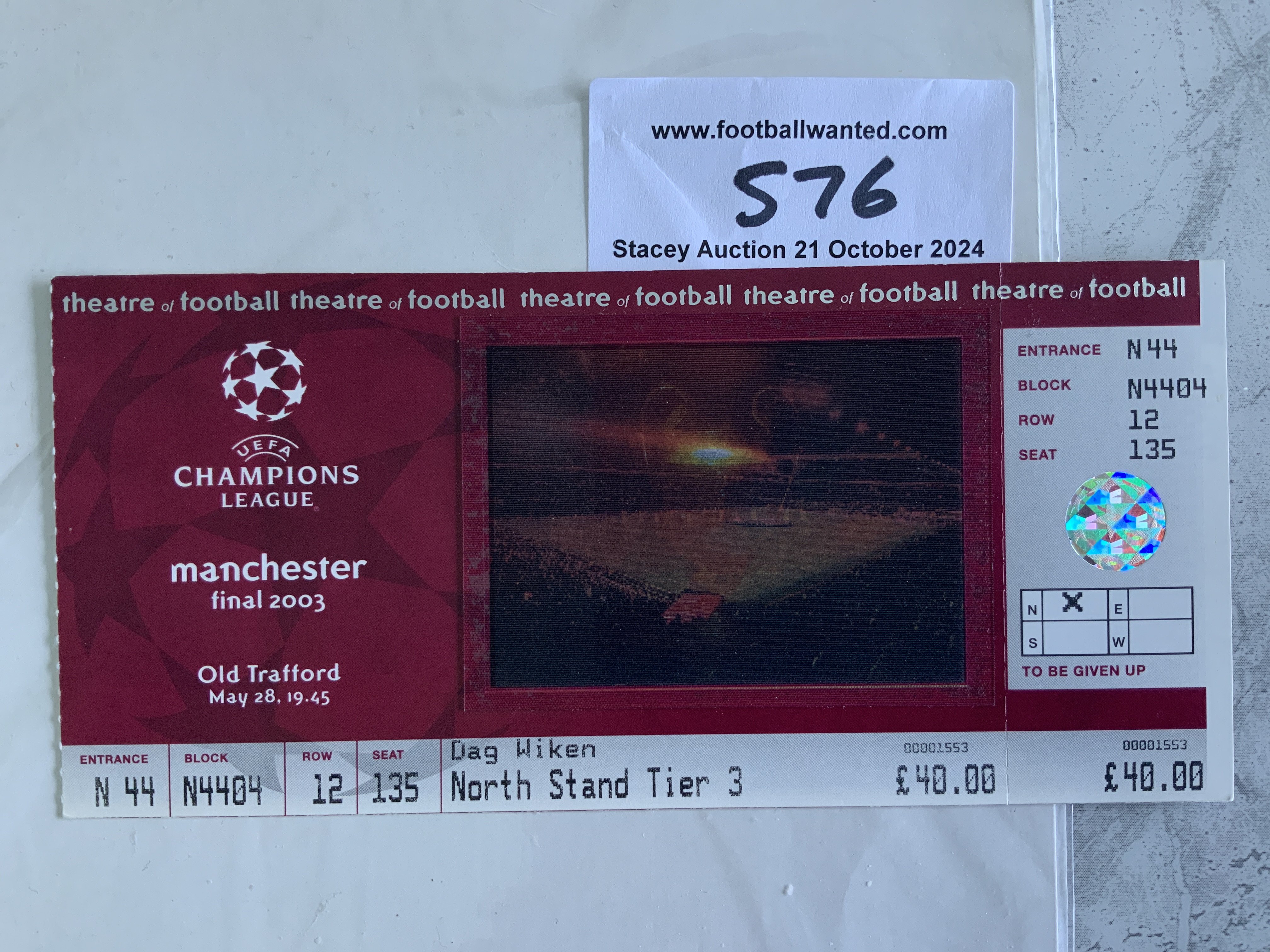 2003 Unused Champions League Final Football Ticket: Juventus v AC Milan played at Manchester United. Mint condition ticket with stub still attached.