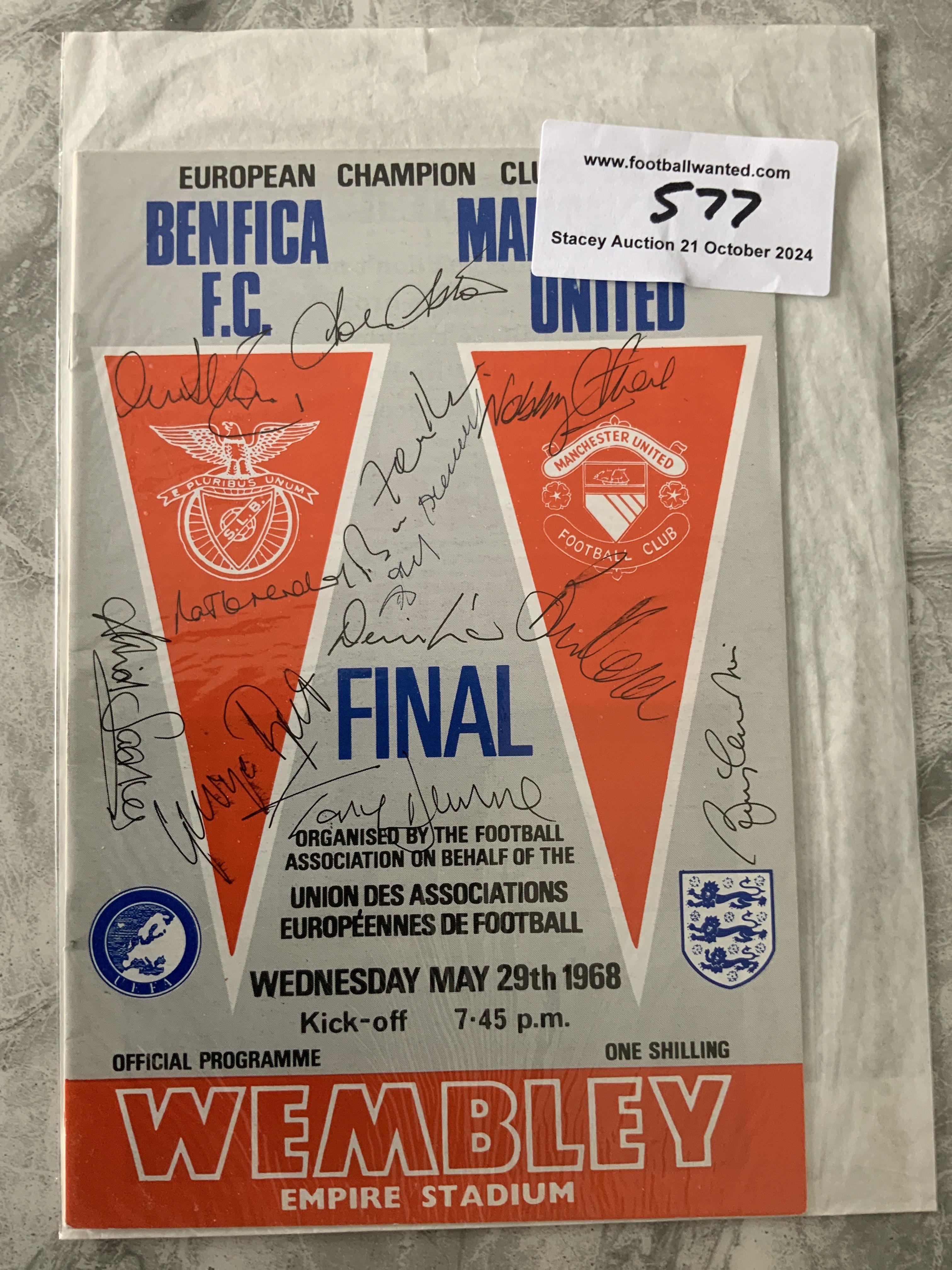 1968 Manchester United Signed ECF Programme: Signed by the European Cup winning team plus Denis Law. Personally obtained by a friend of Football Wanted who used to arrange dinners in their honour. Includes Charlton and Best. Excellent.