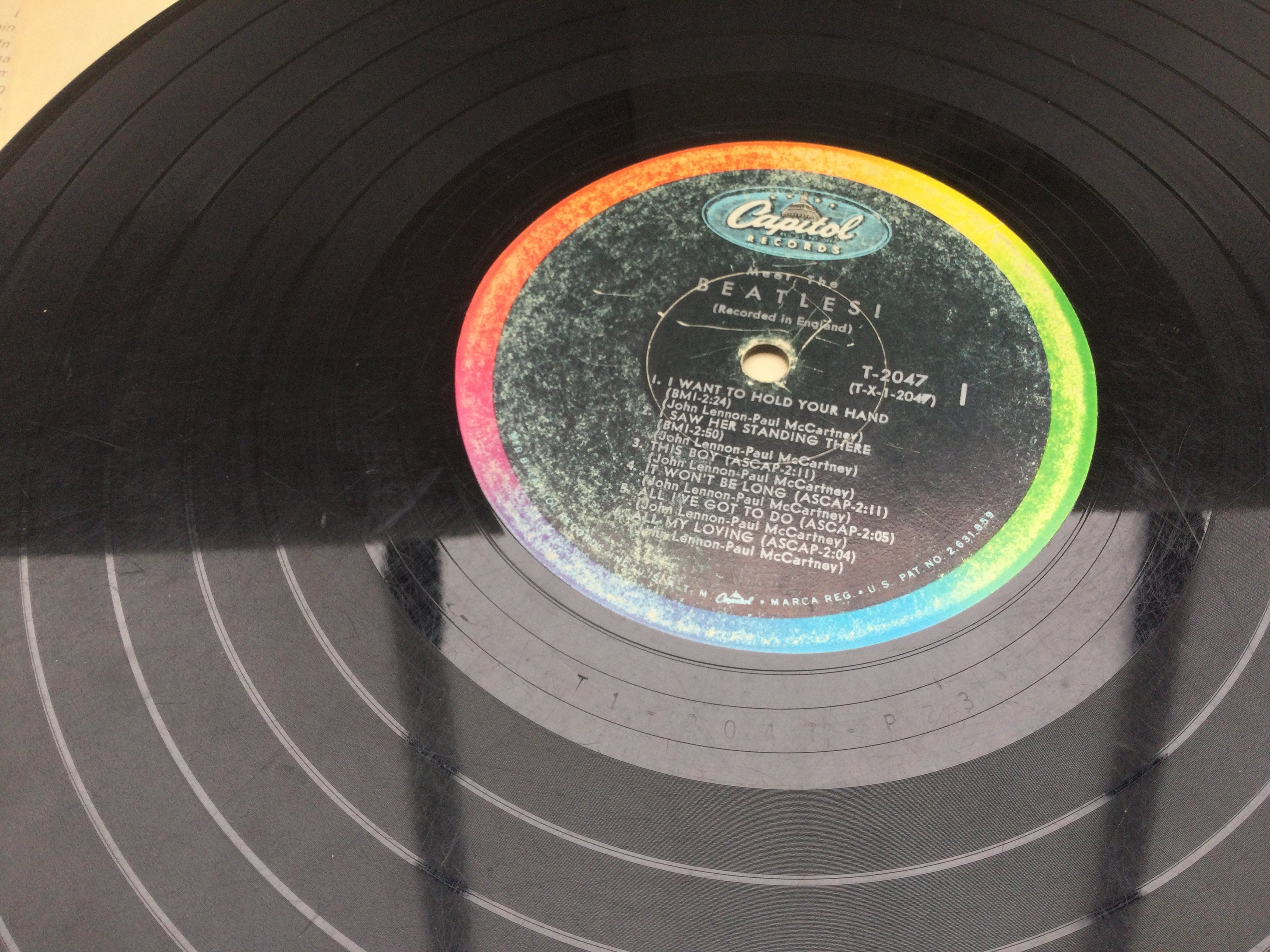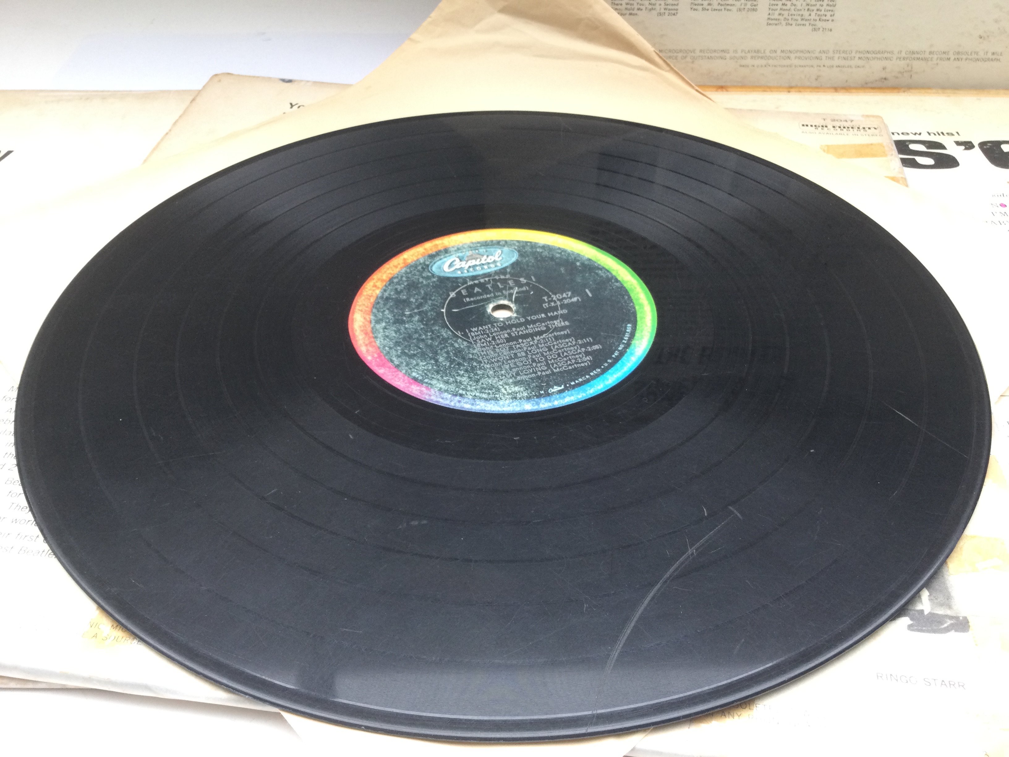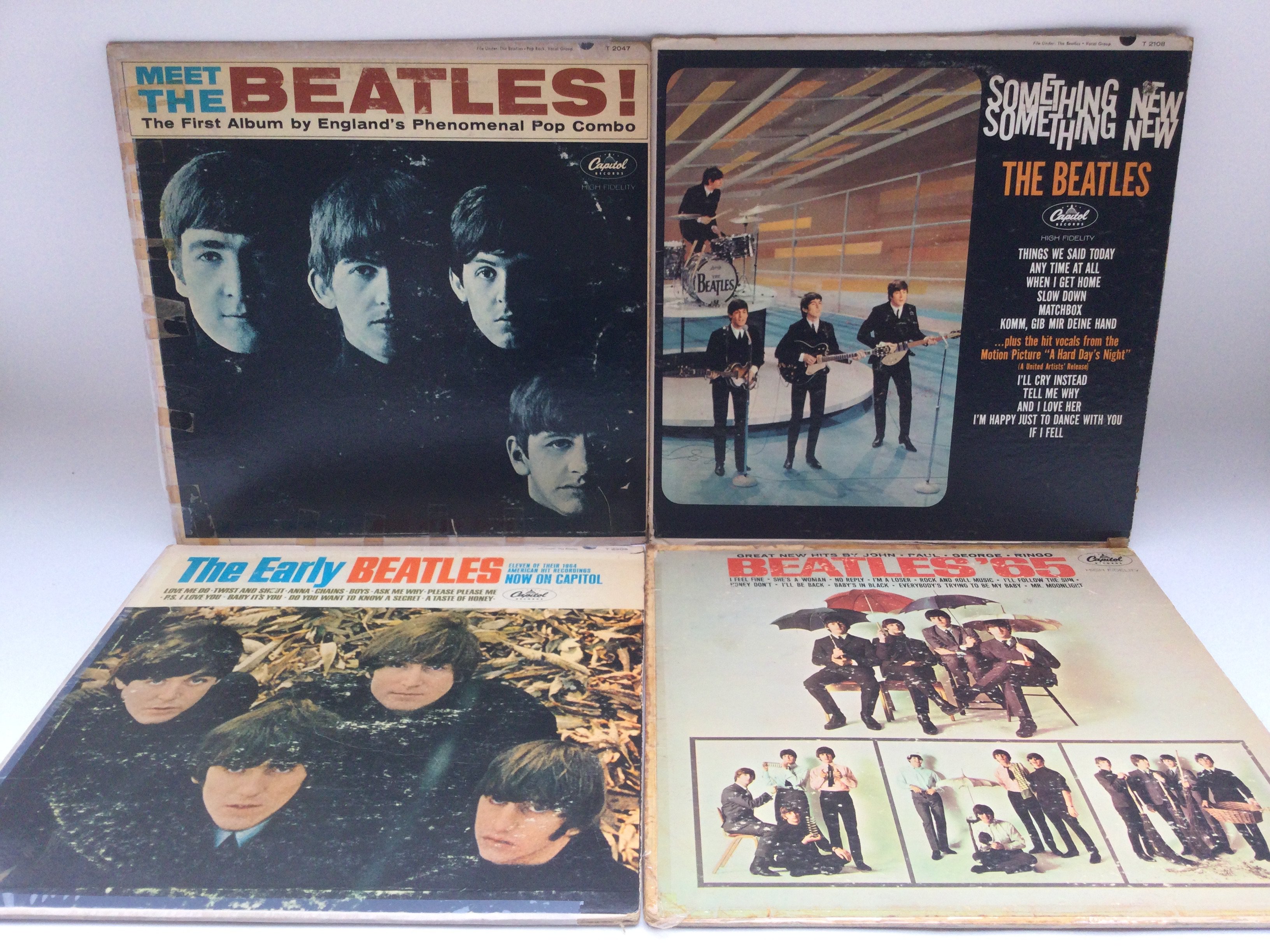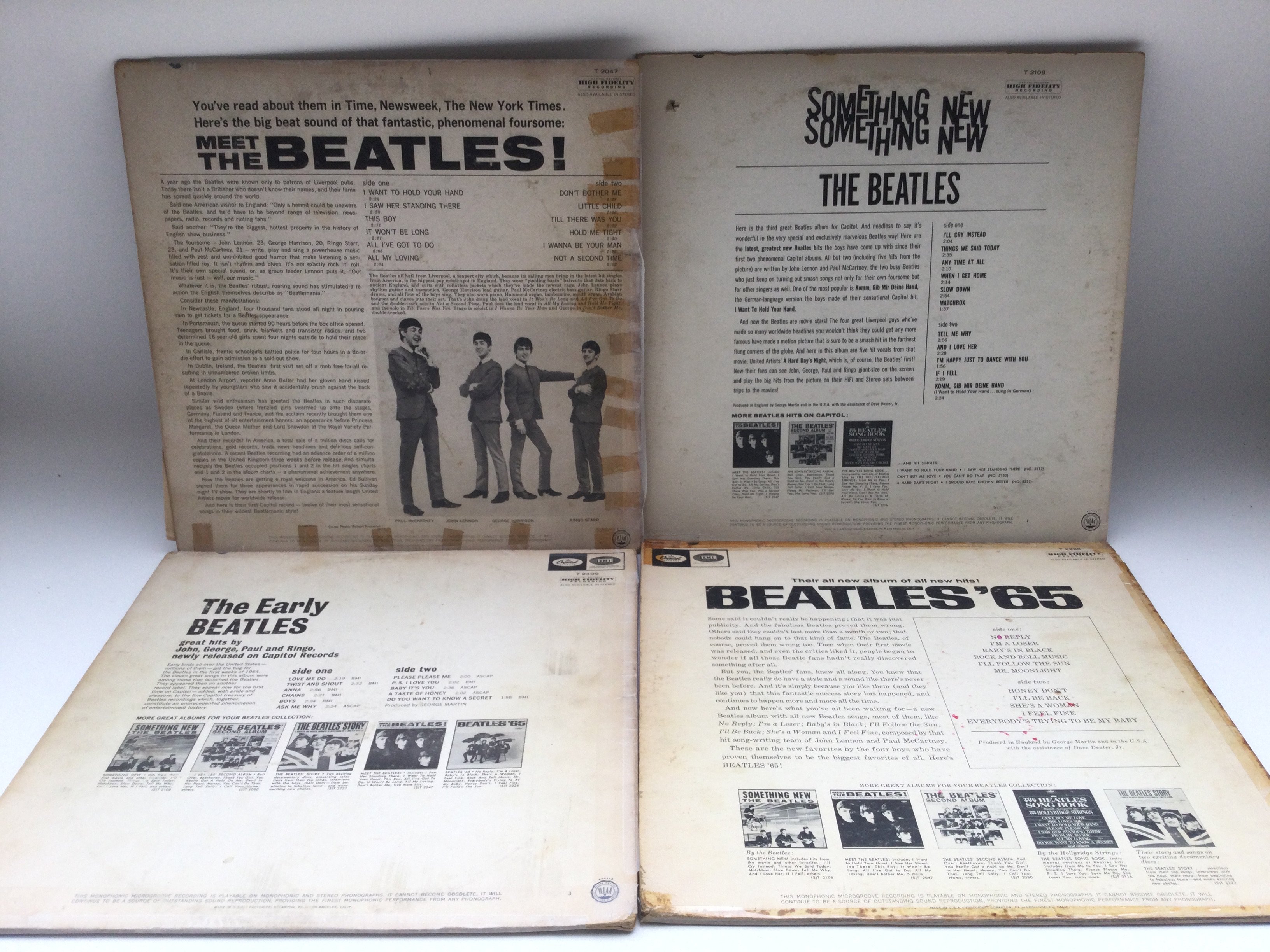 Four early US pressings of Beatles LPs. Some condition issues, feelable scratches, damaged covers.