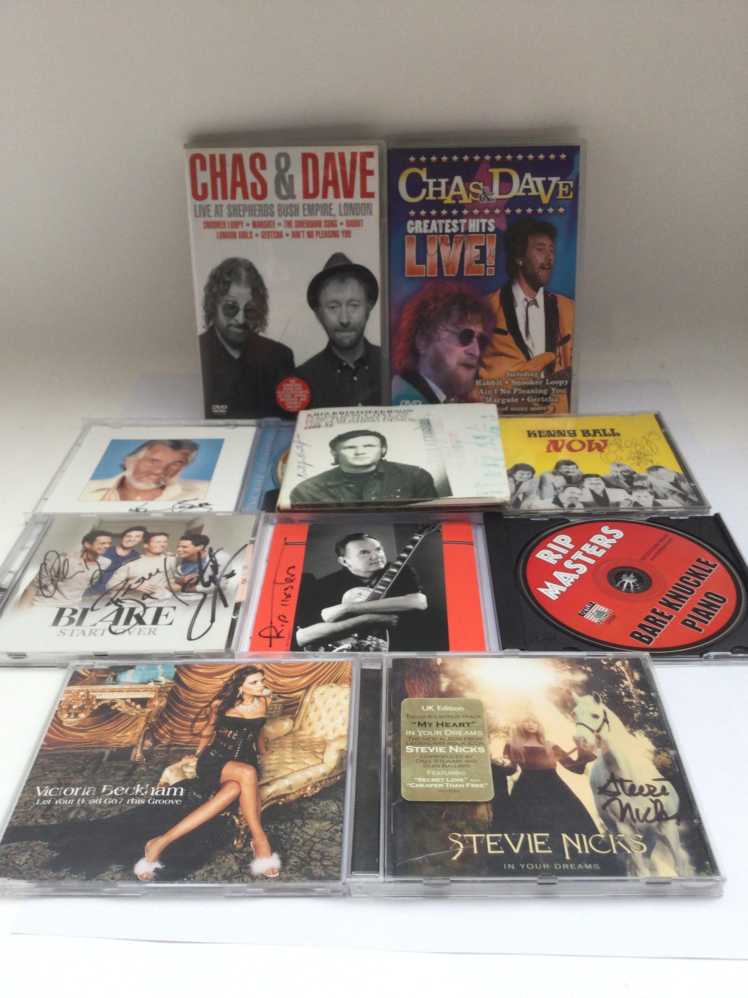 A collection of signed CDs and music DVDs including Stevie Nicks, Kris Kristofferson, Kenny Rogers and others.