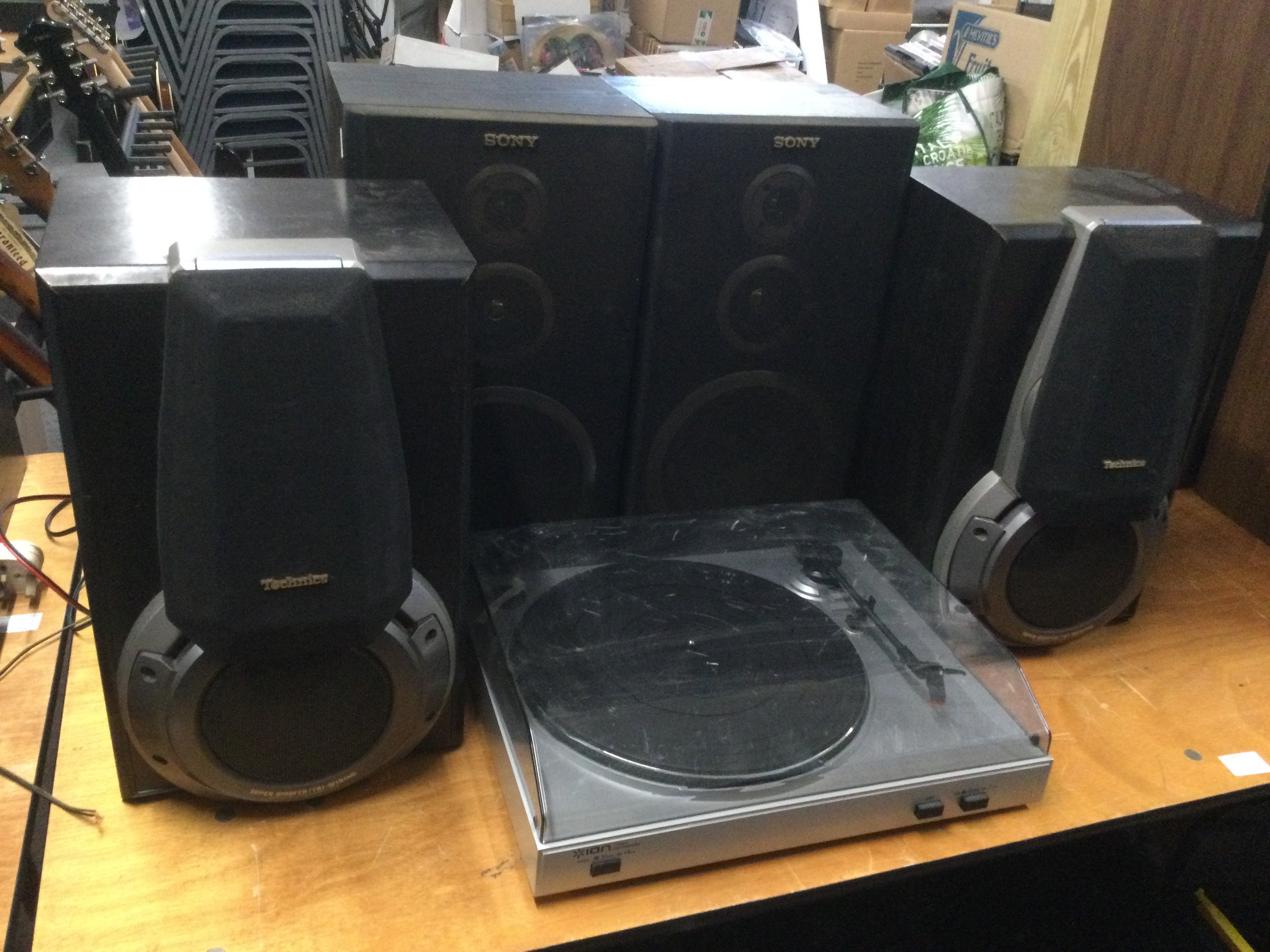 An Ion USB turntable, a pair of Technics speakers and a further pair of Sony speakers (5).