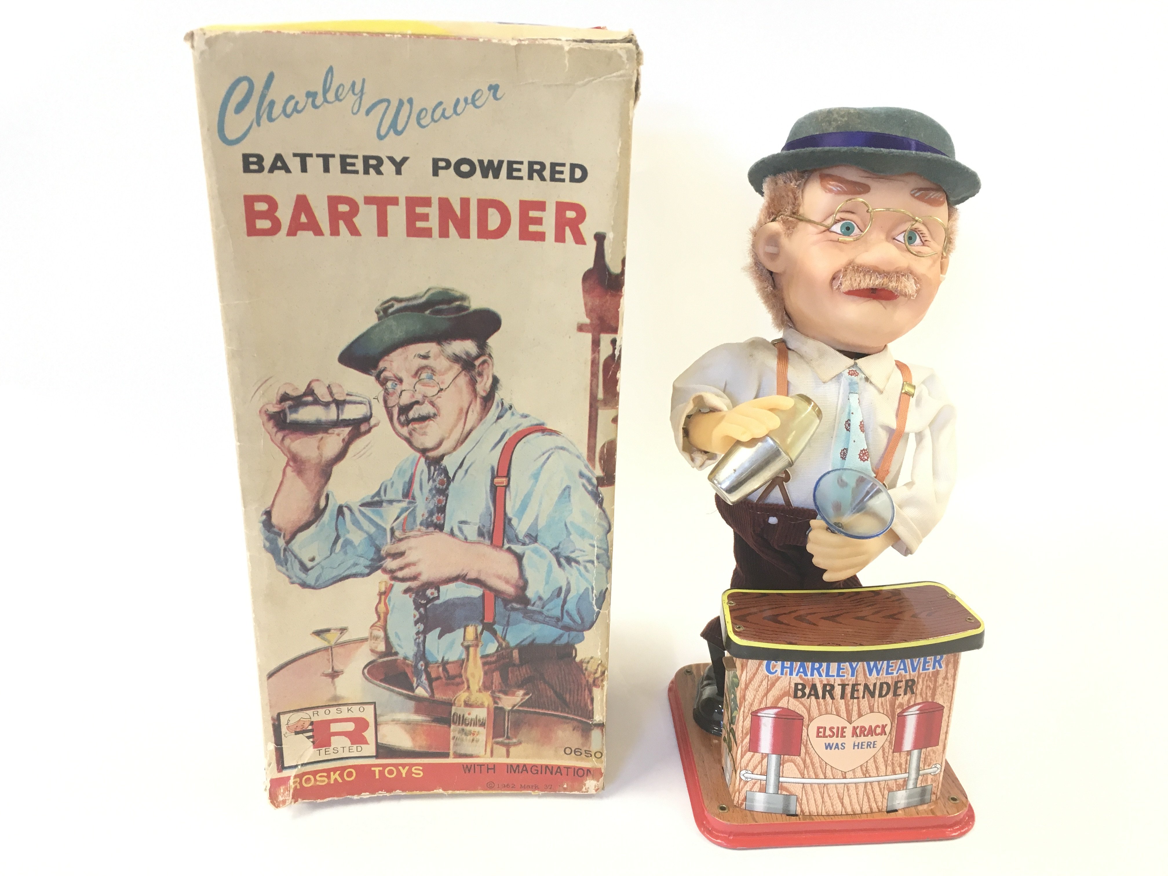 A Boxed Rosko Toys Battery Powered Charley Weaver Bartender.