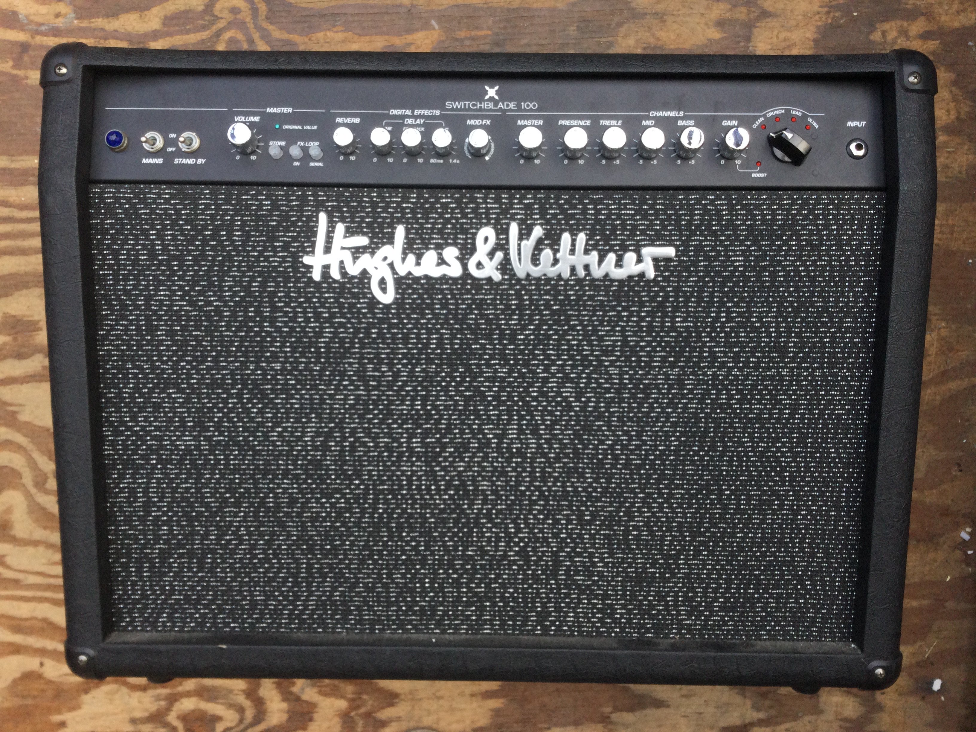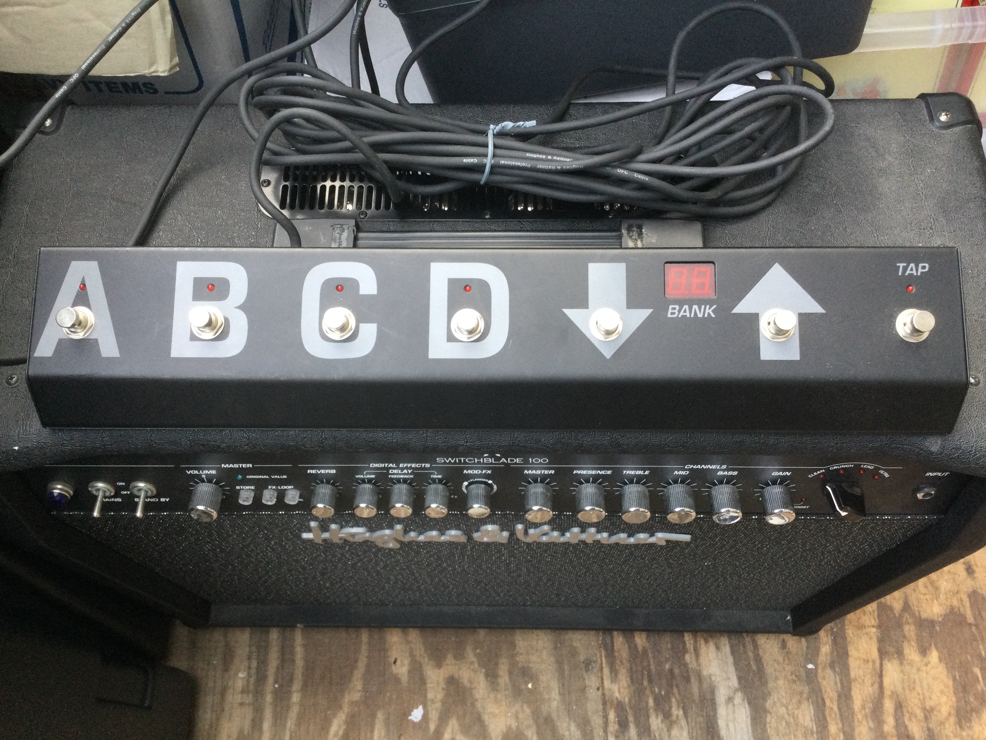 A Hughes & Kettner Switchblade 100 amplifier together with an FSM 432 multi program footswitch.