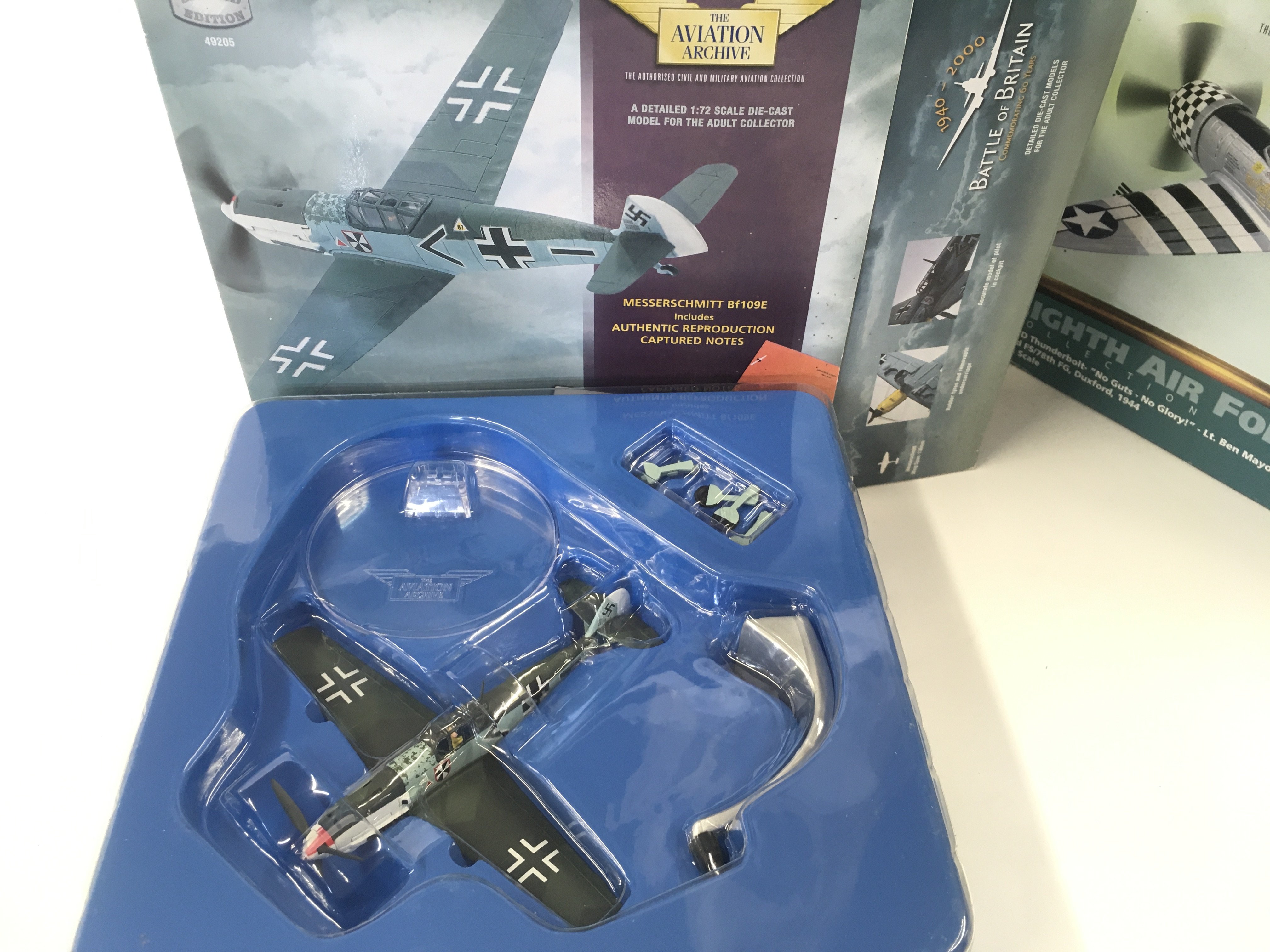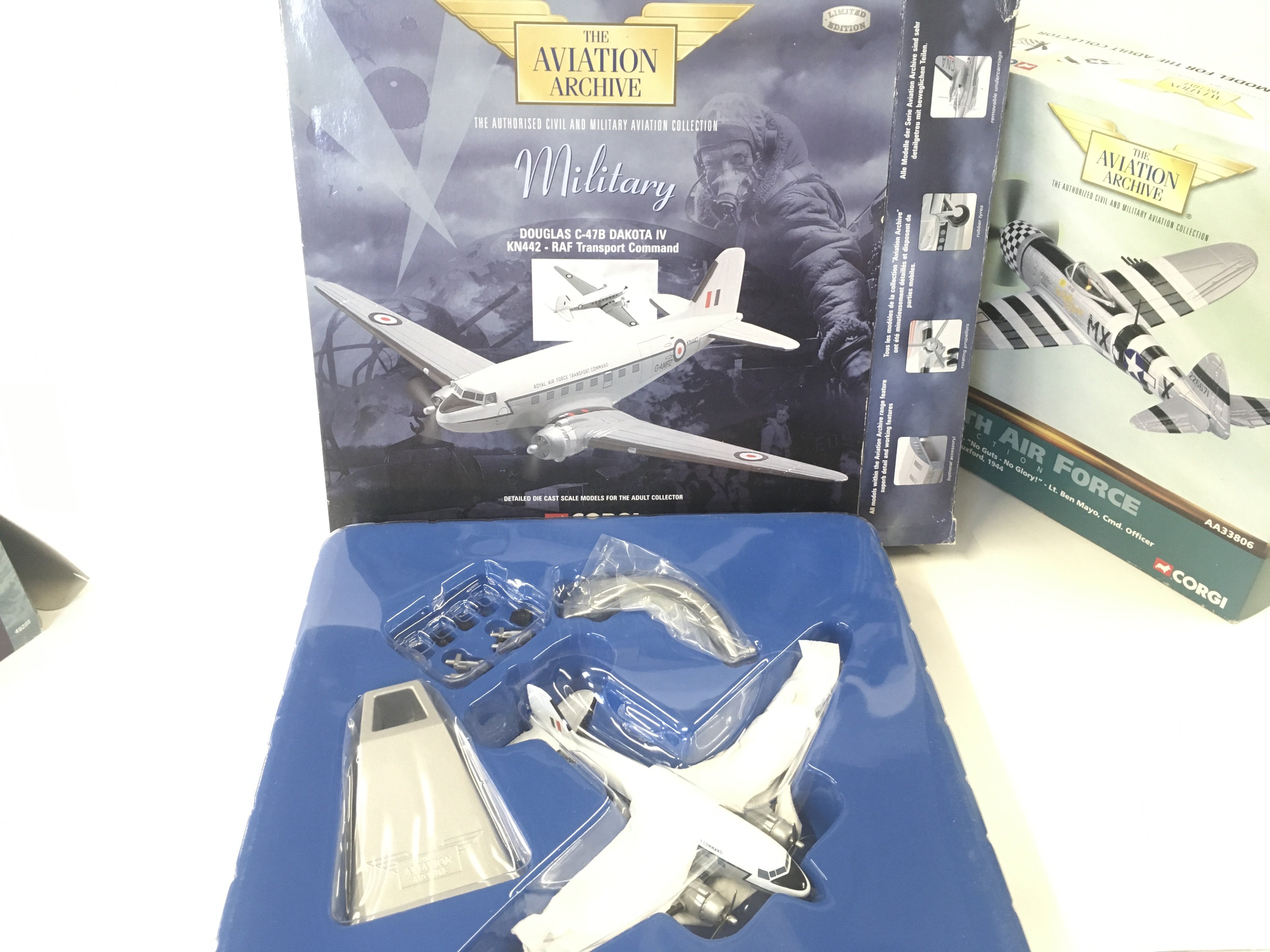 4x corgi Aviation Archive models. Including P-51K Mustang. P-47D Thunderbolt. Messerschmitt. Douglas C-47B.