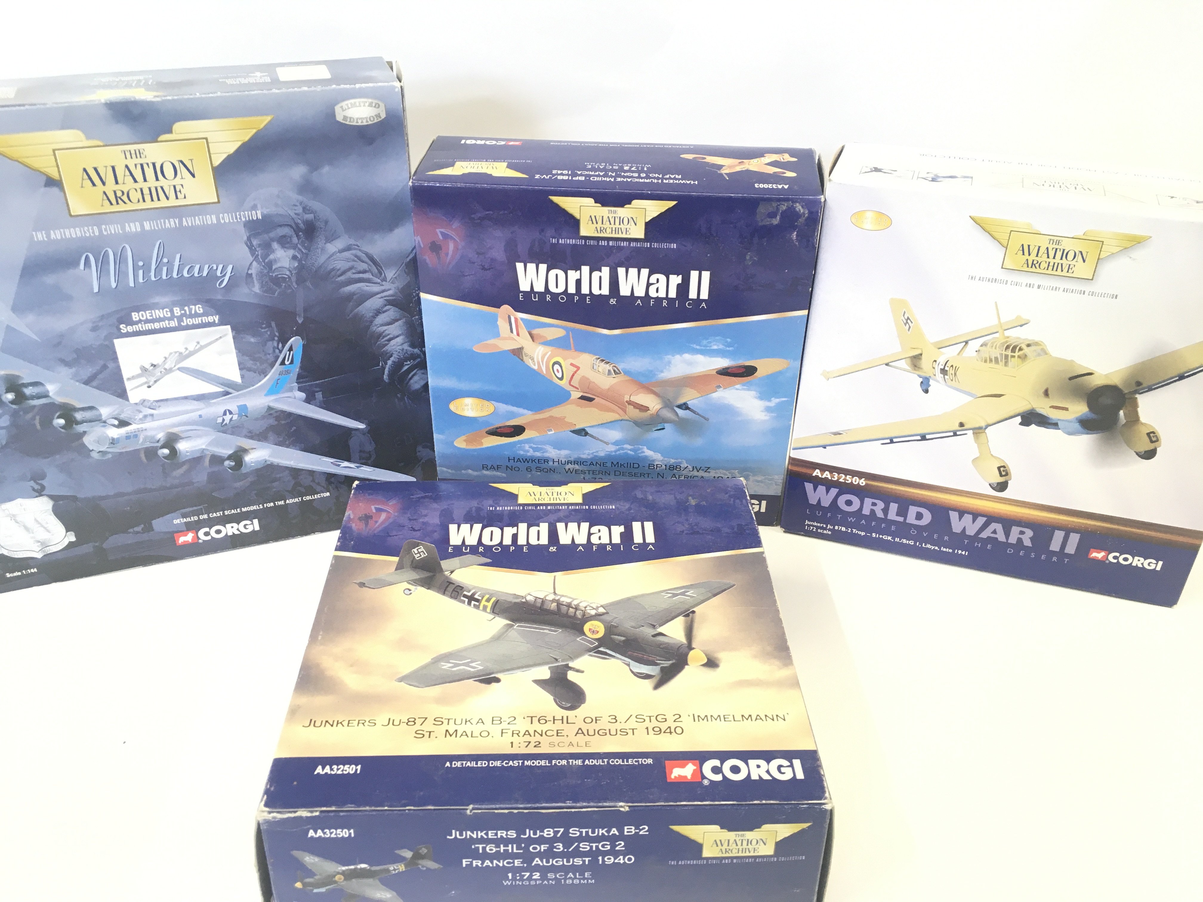 4 X Boxed Corgi Aviation Archive Models including a Boeing B-17G. A Hawker Hurricane. A Junkers Ju 87B and a Junkers Ju-87. (4)