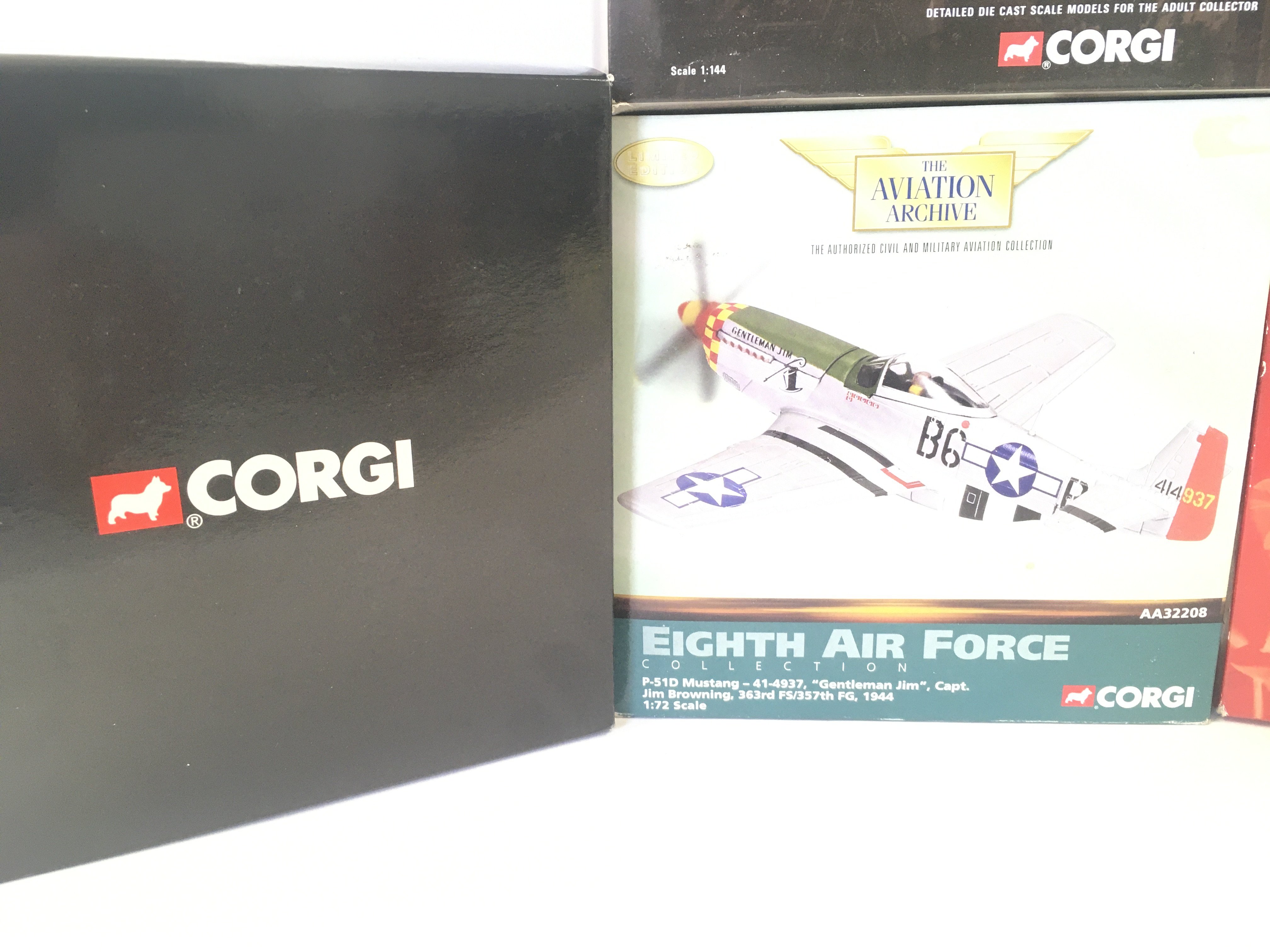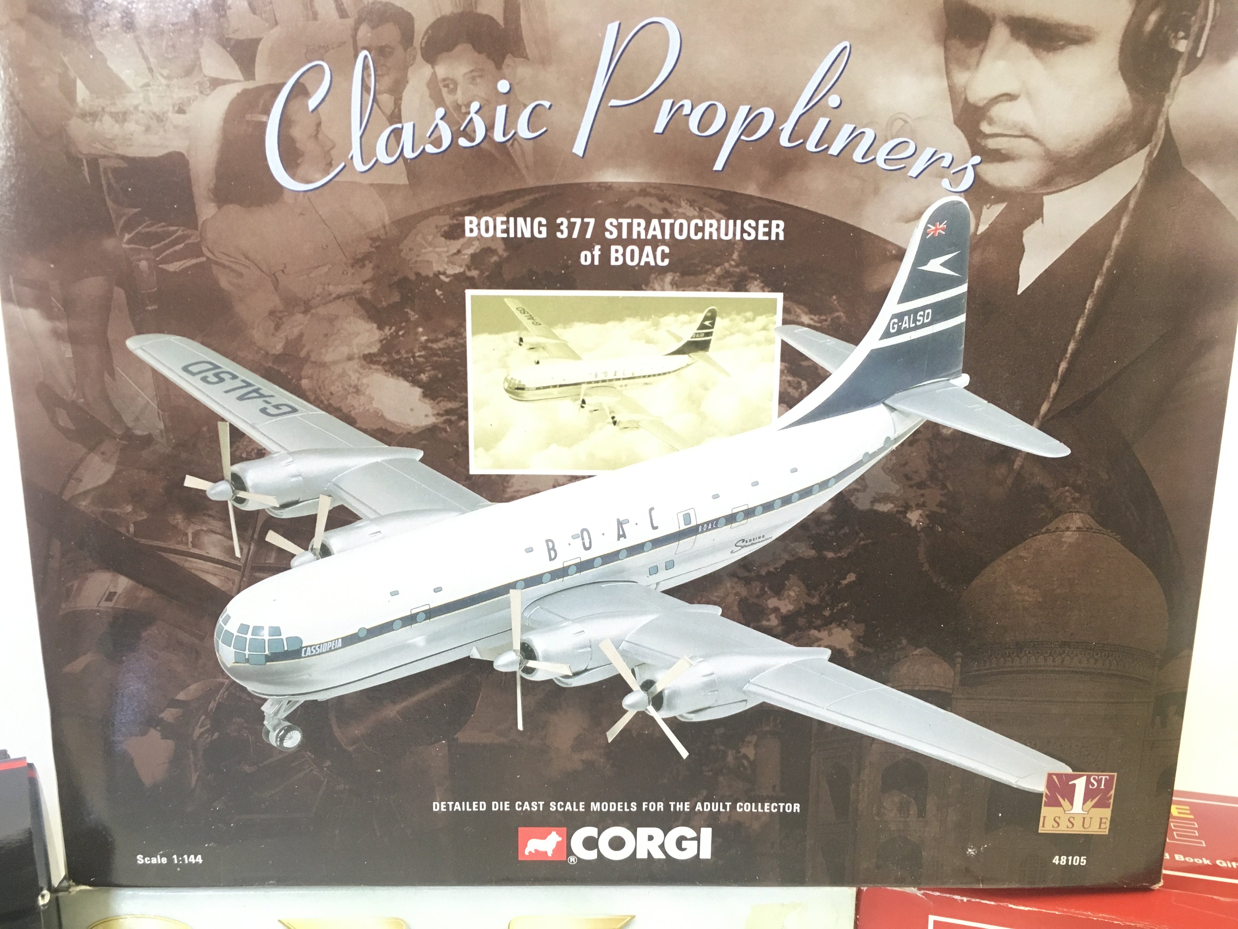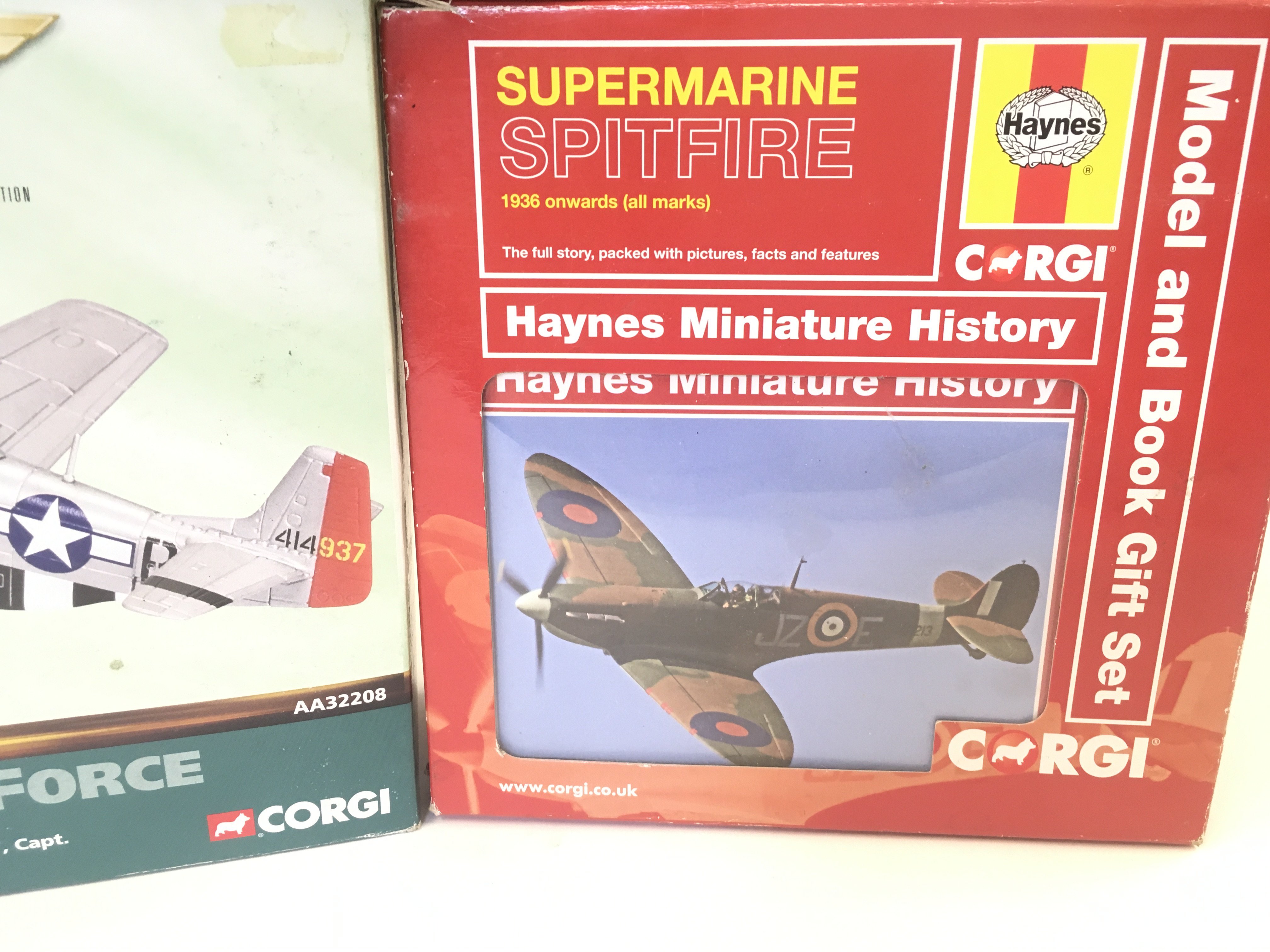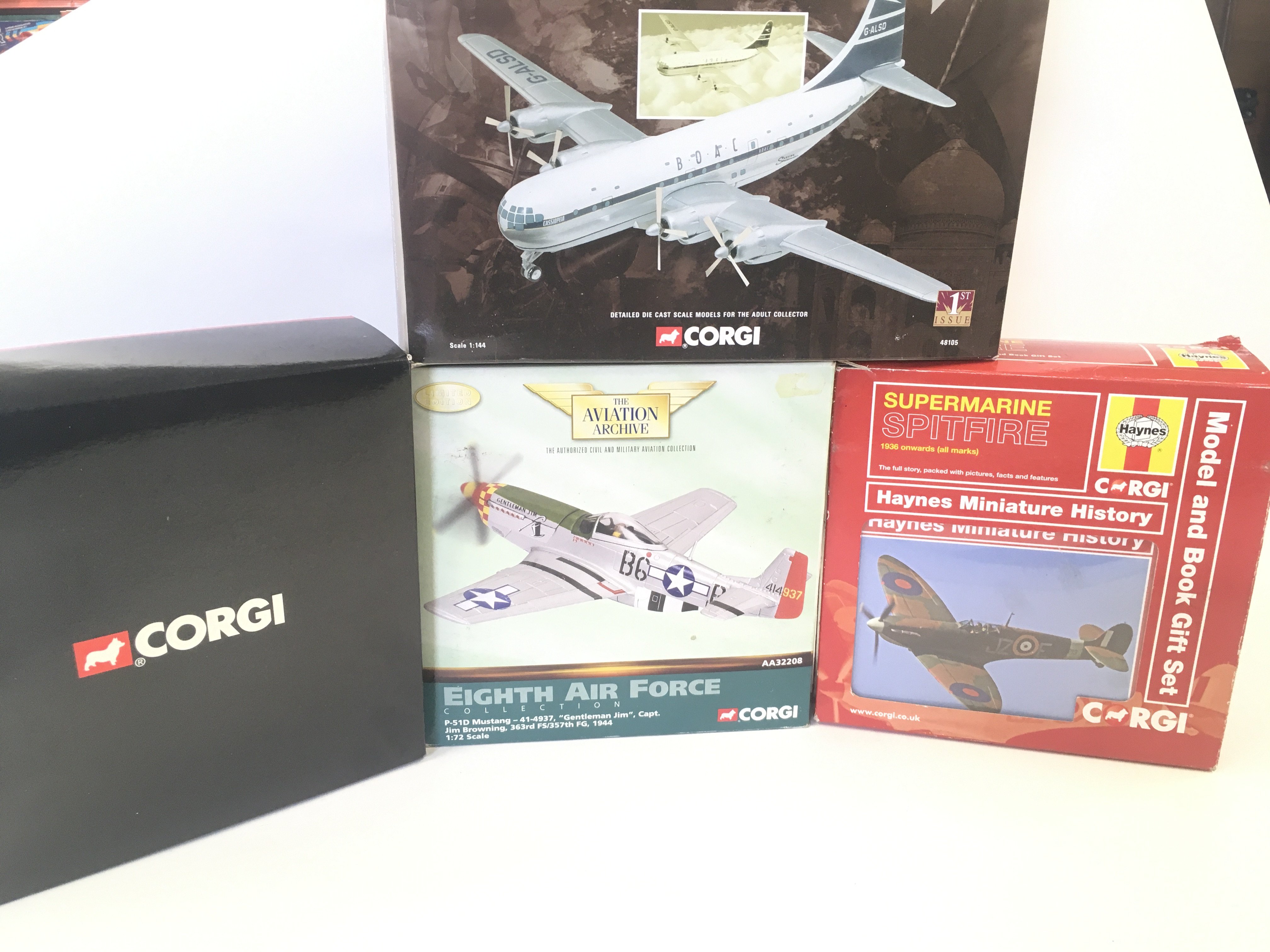 4 Boxed Corgi Aircraft. Including a Spitfire. A Mustang. A Boeing Stratocaster. Etc.