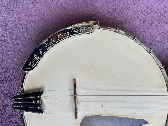 A Gold Tone BG250 Banjo in very good overall condition with playwear to the skin. Comes in an Ozark banjos hard fitted hard case.