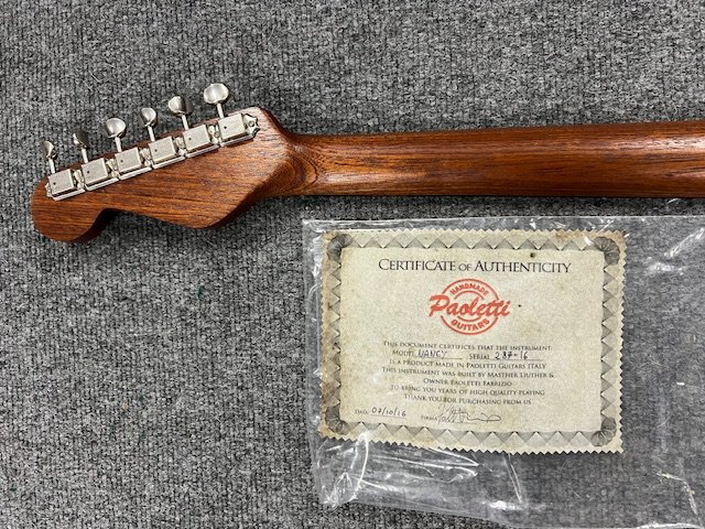 A 2016 Paoletti Wine Nancy Handcrafted T Type Electric Guitar. Comes with certificate of authenticity. All original and comes with fitted Fender Hard Case.