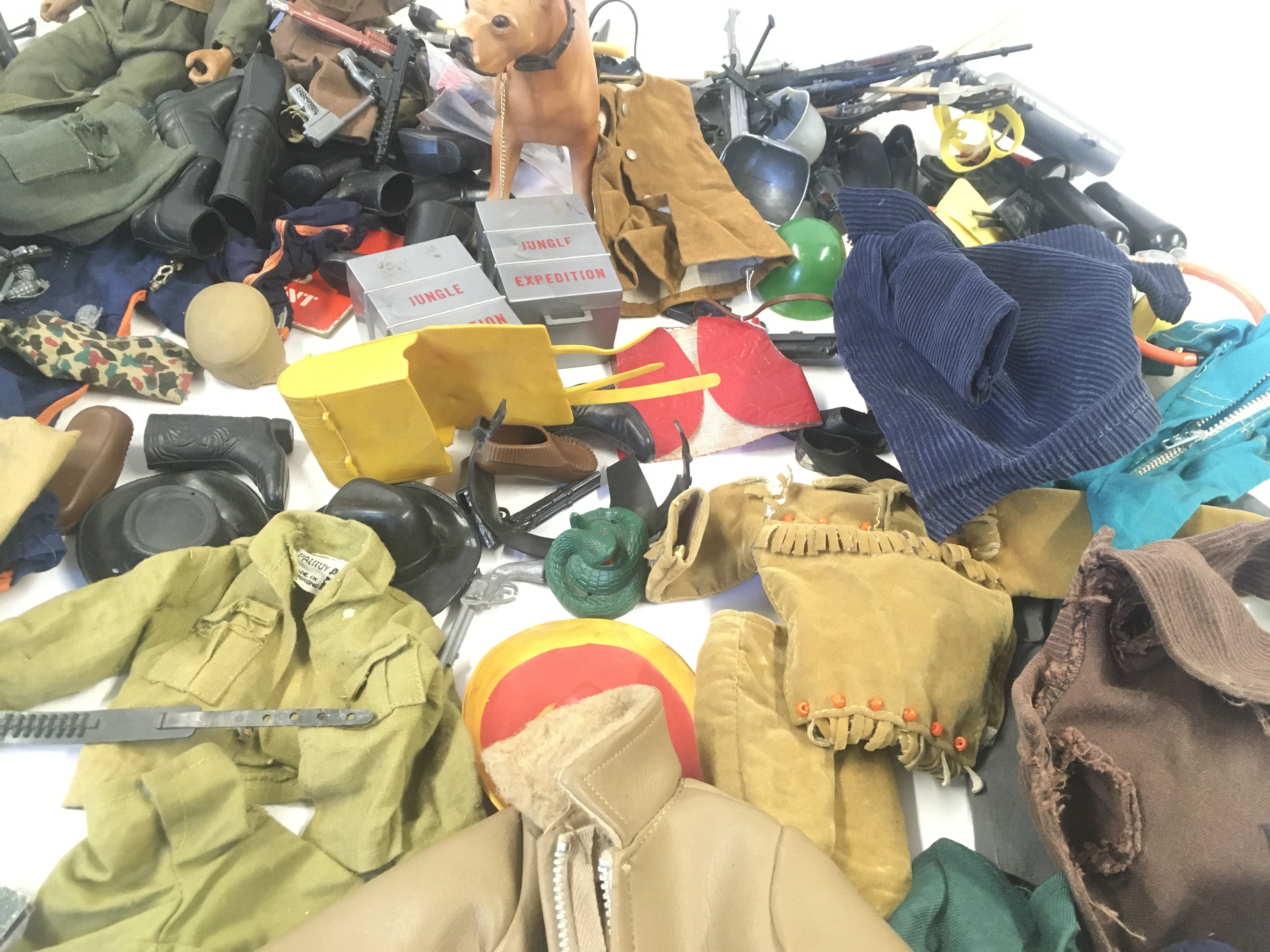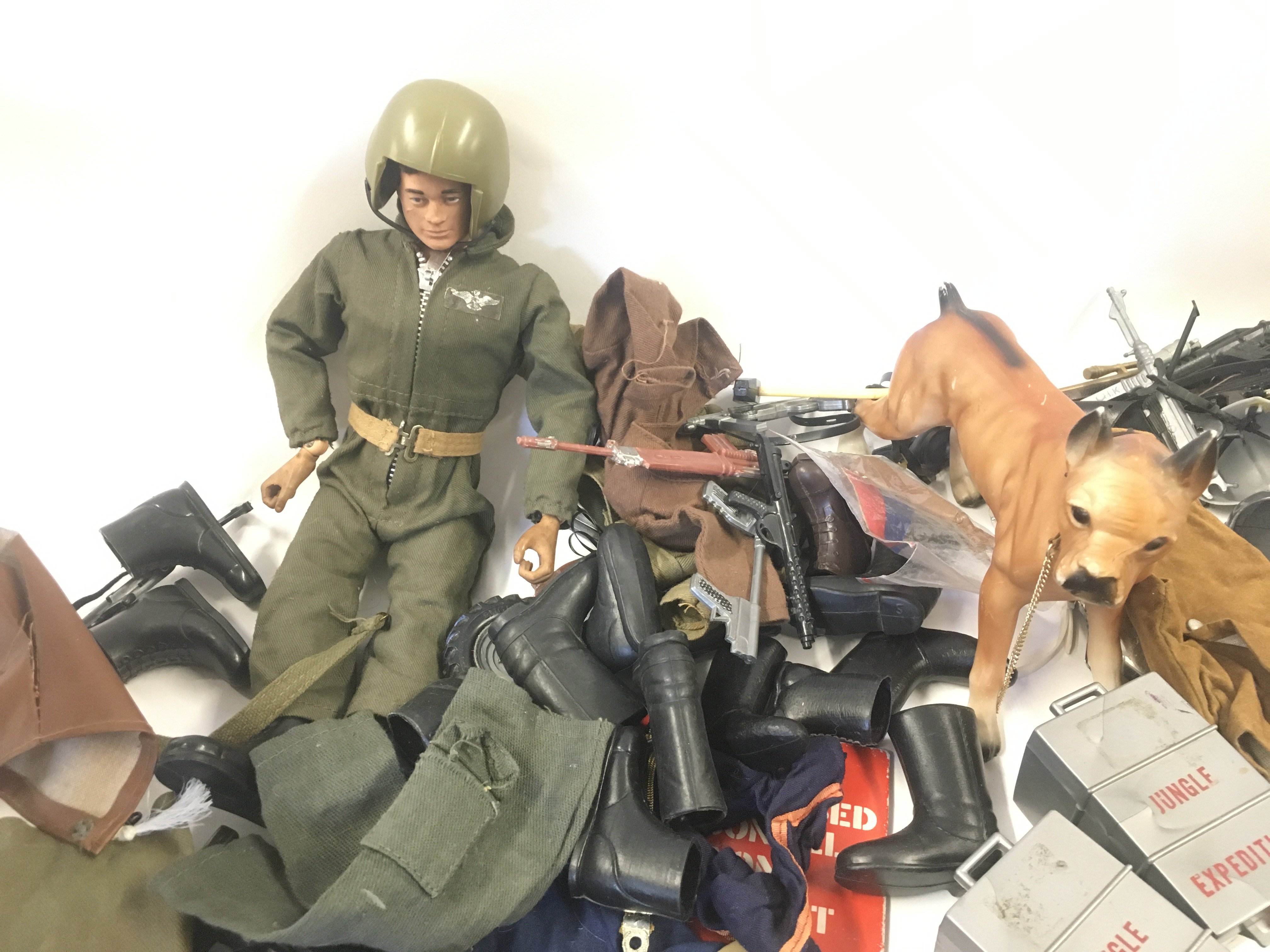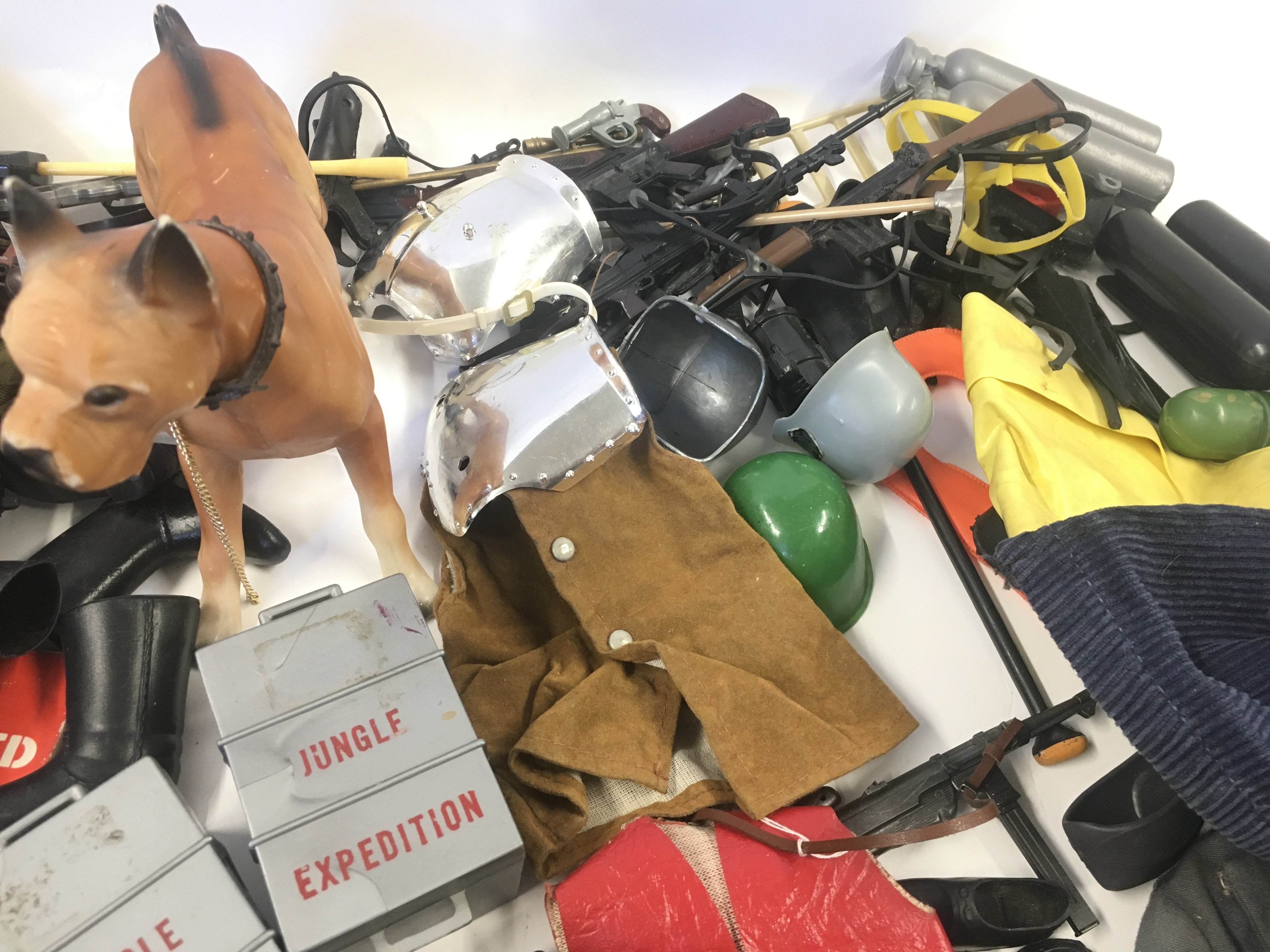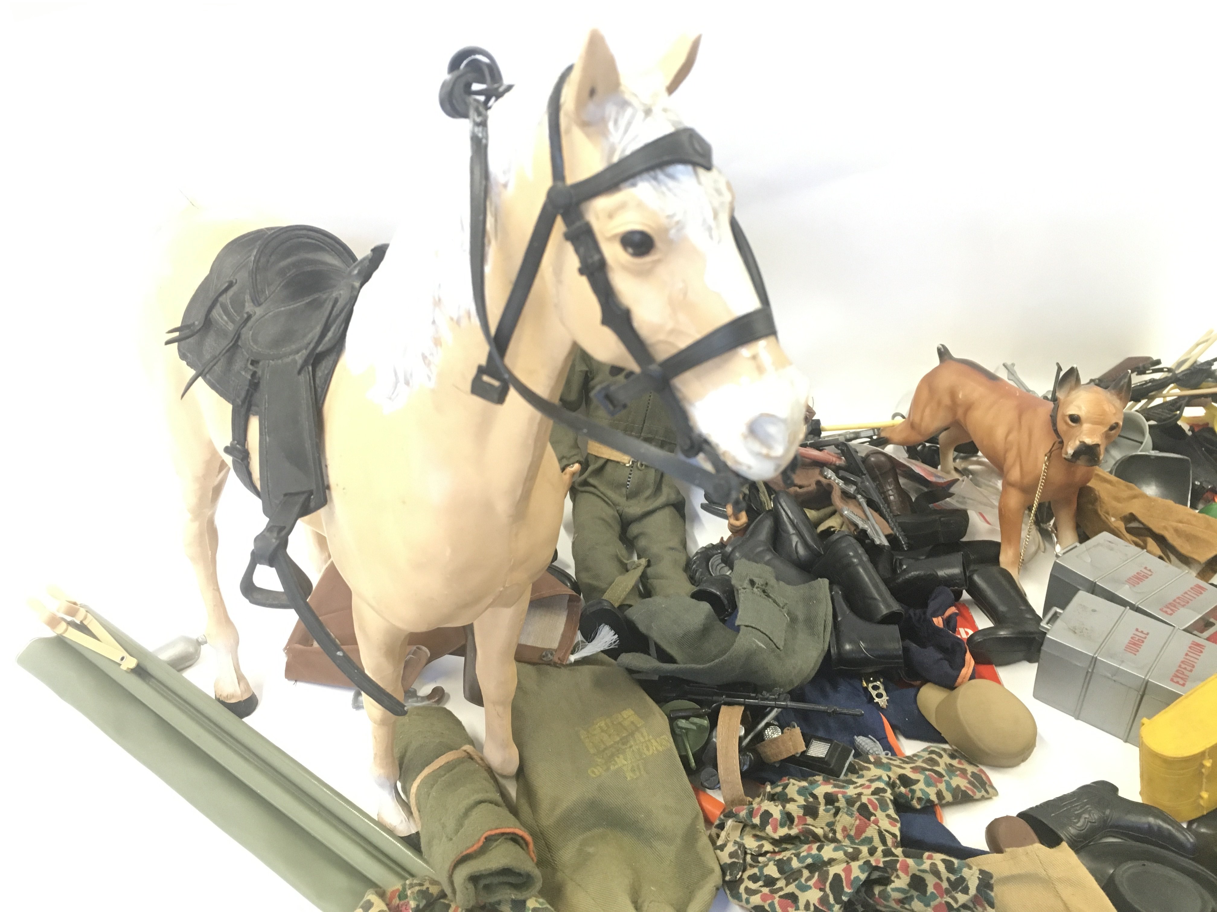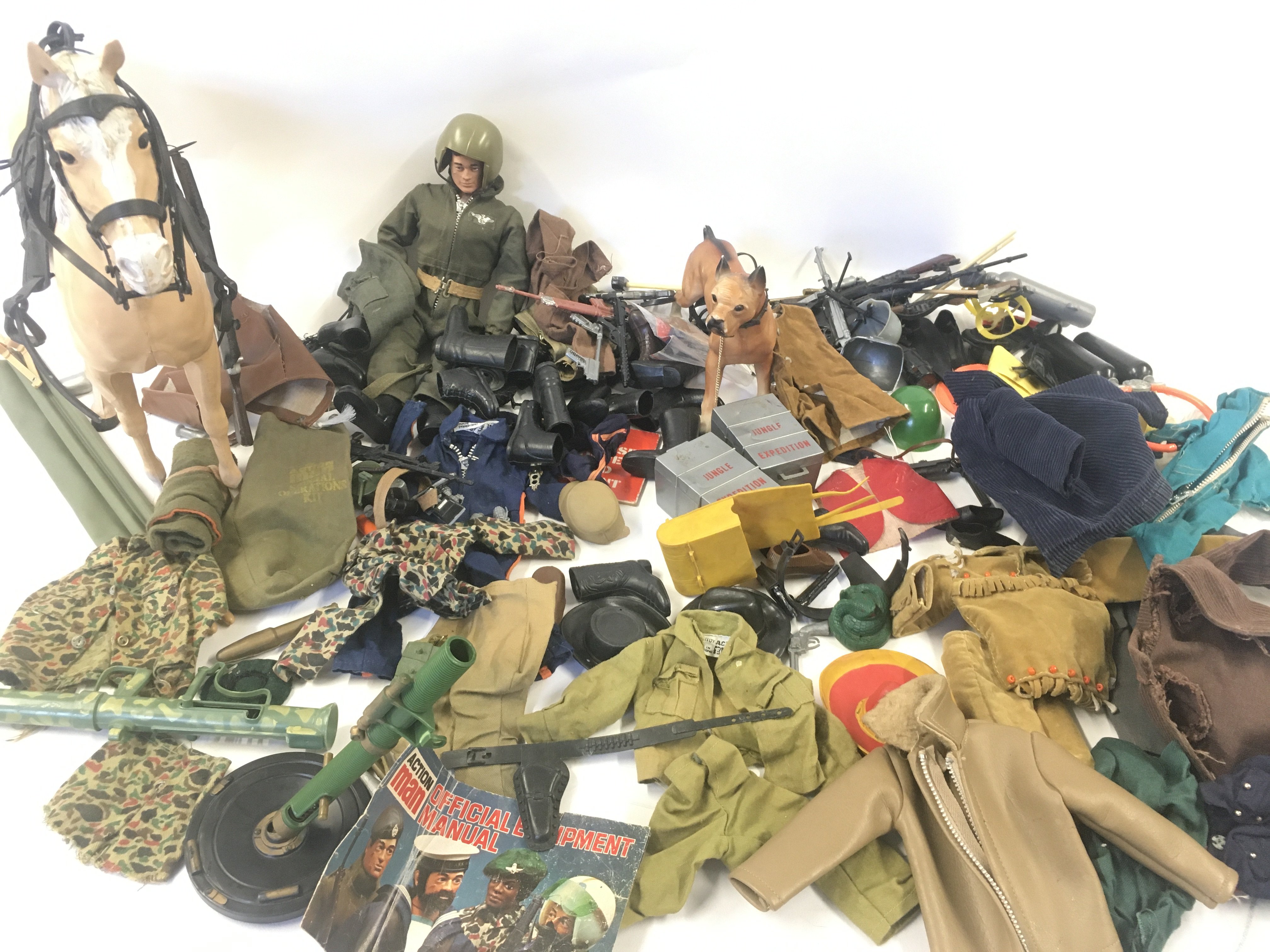 A Vintage Action Man with Accessories and Vehicles. Also A Lone Ranger Horse.