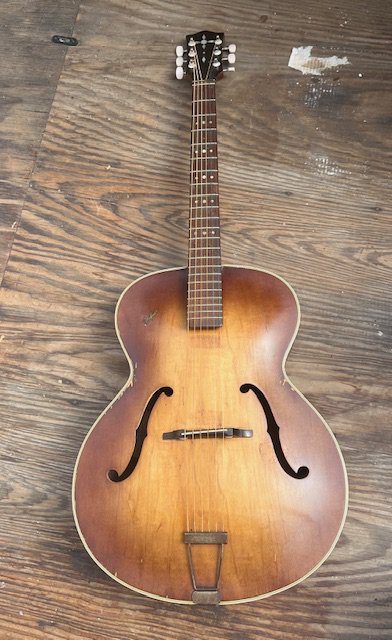 A late 1950's early 1960's Hofner 450 series acoustic guitar with changed tuners and no pickguard - average condition consistent with age and use.