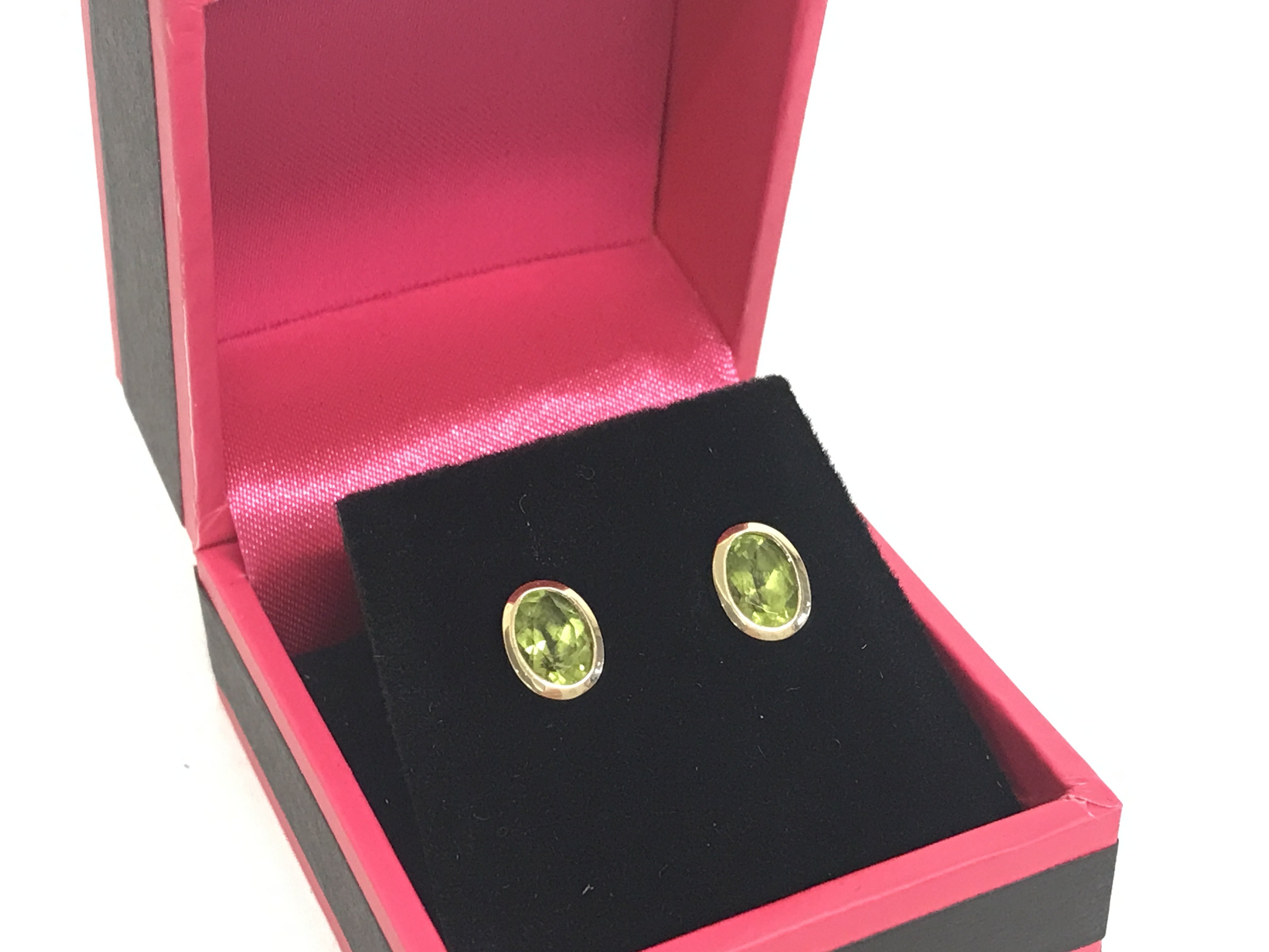 A pair of 9 carat gold and peridot stud earrings. Postage category A