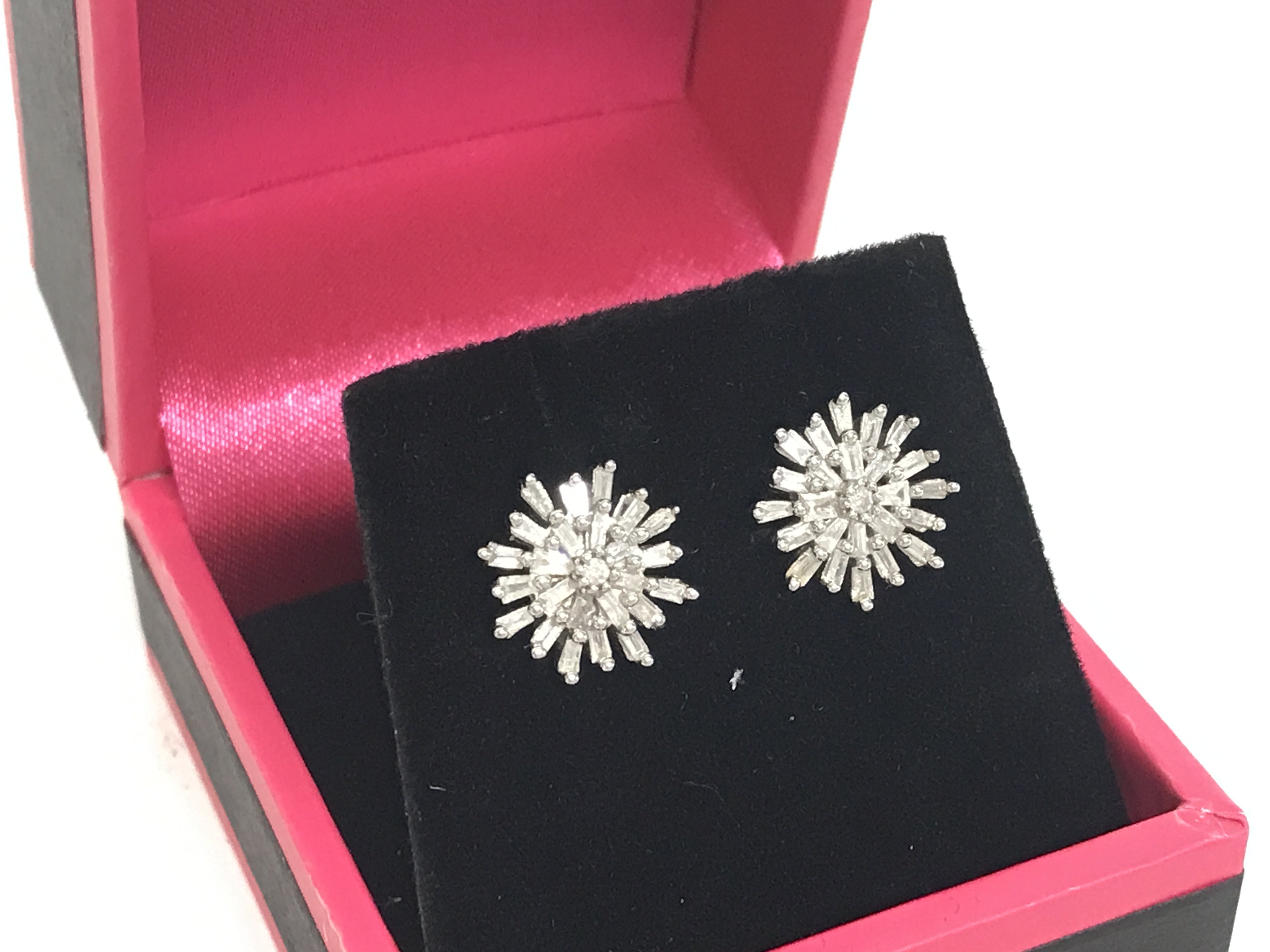 A pair of 9 carat white gold and diamond earrings, 2.8g in total. Postage category A