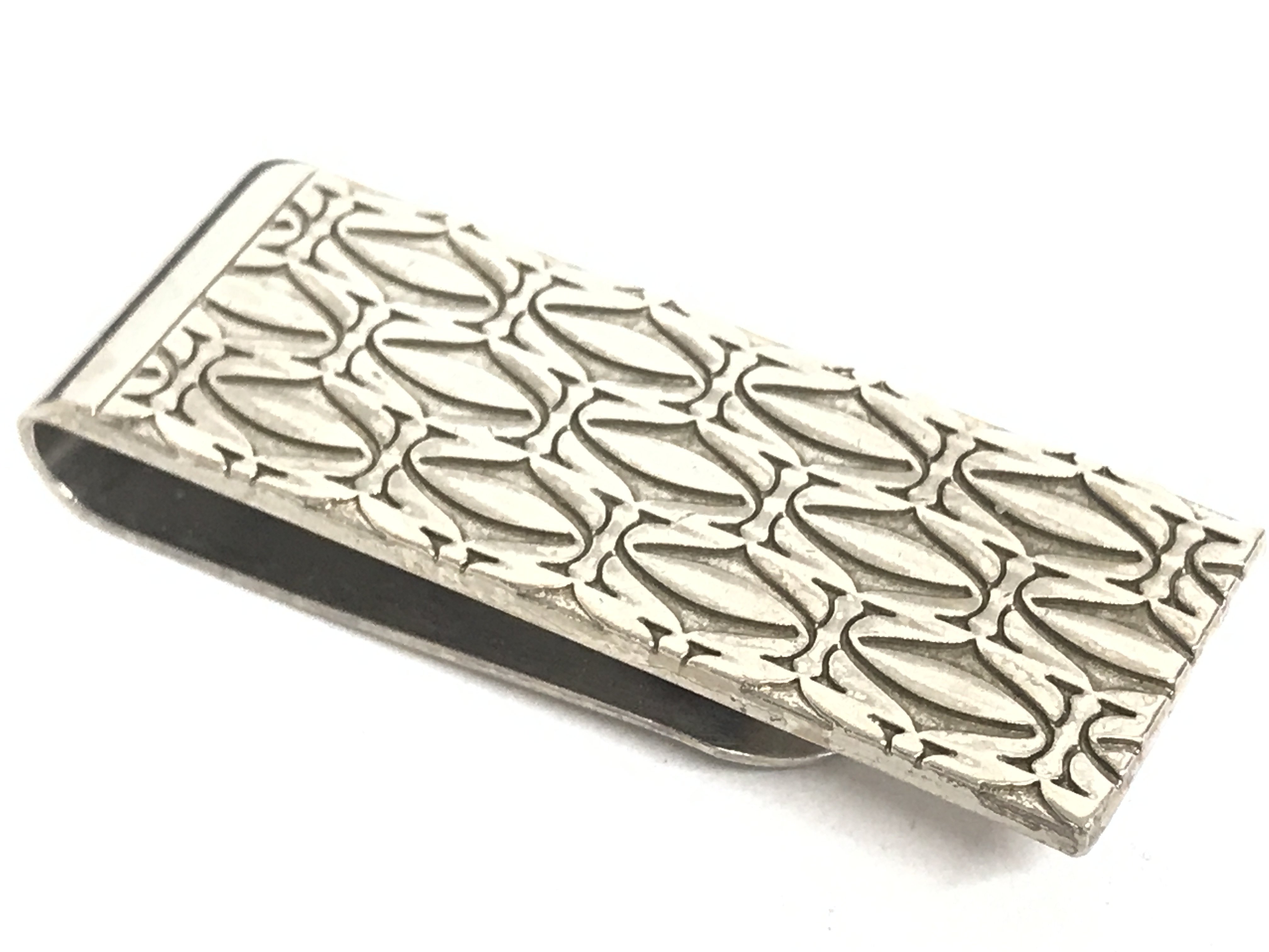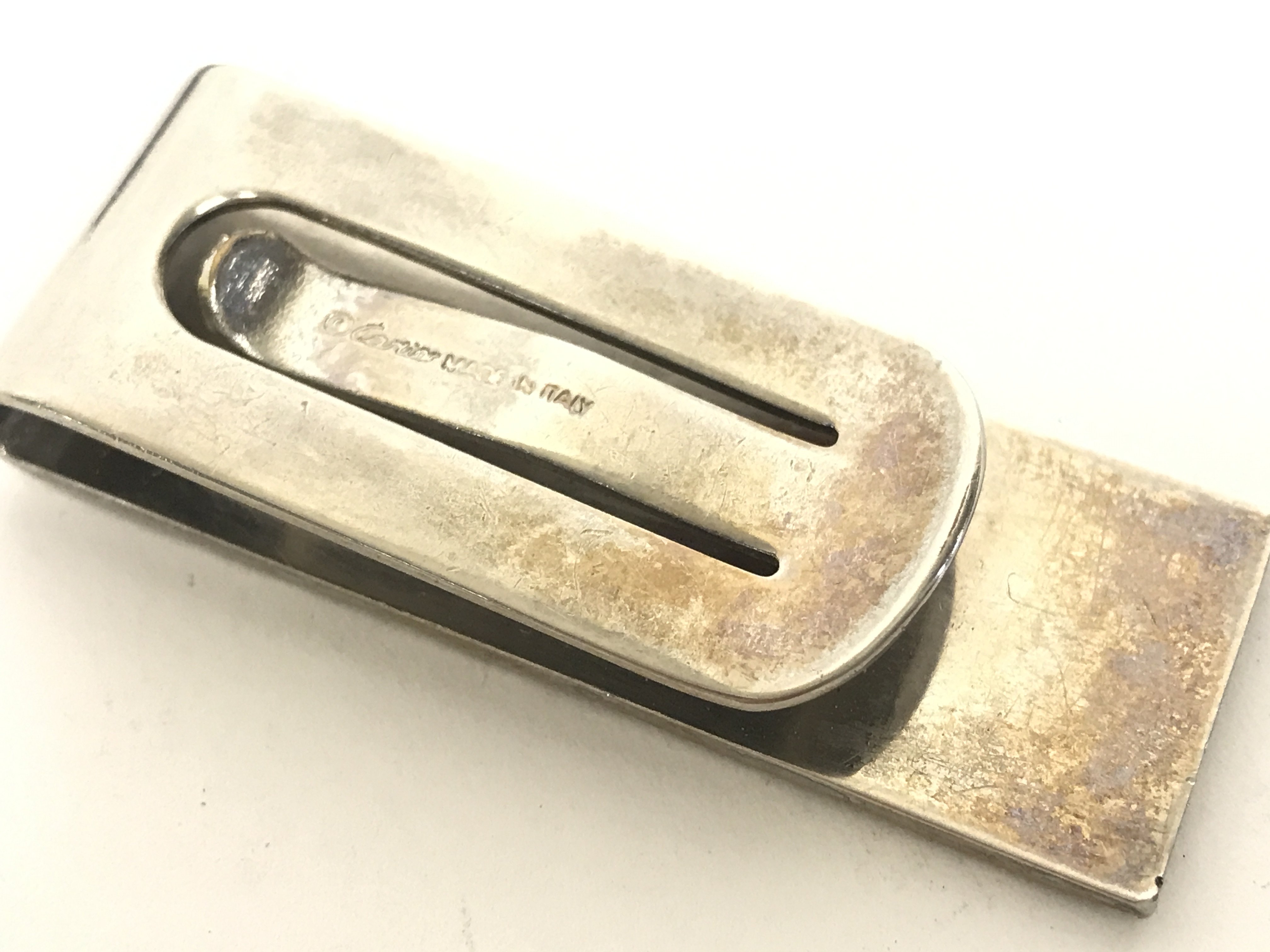 A white metal money clip marked Cartier made in Italy. Postage category A