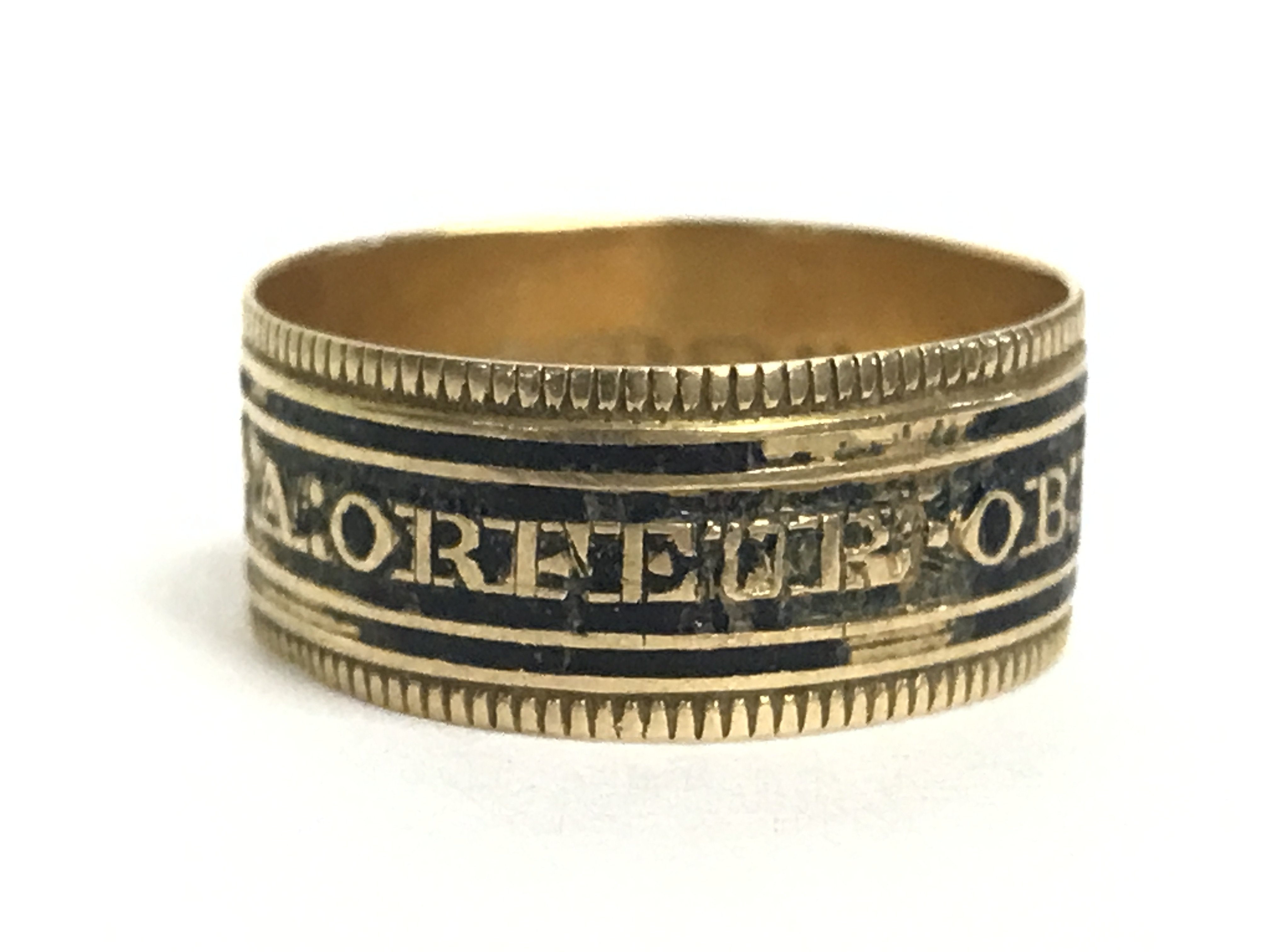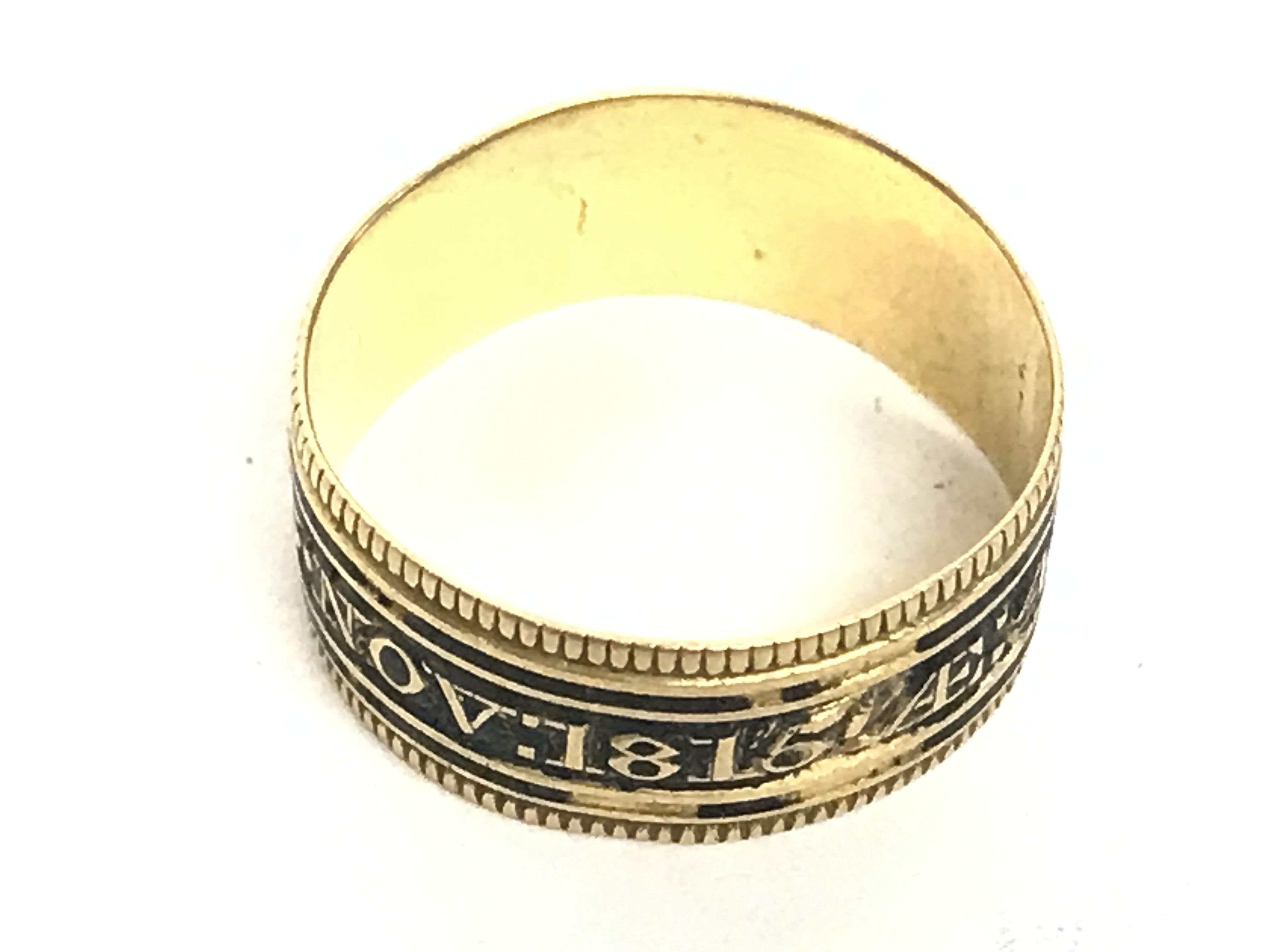 An 18 carat gold mourning ring, size O. 2.9g Postage category A