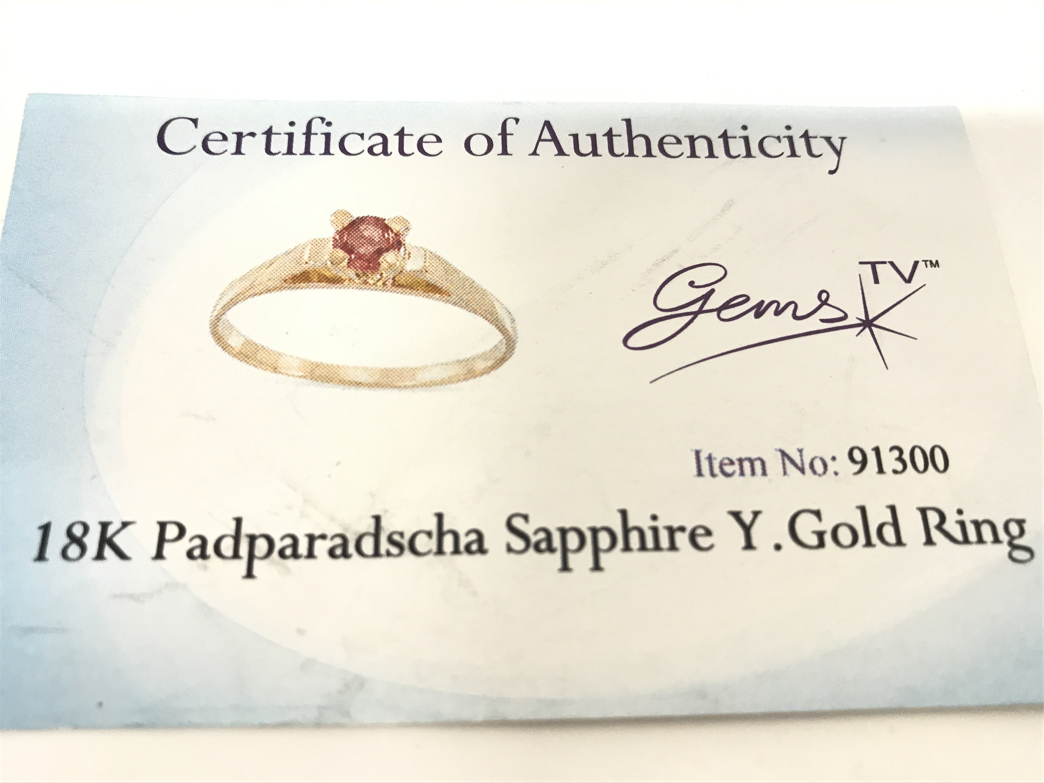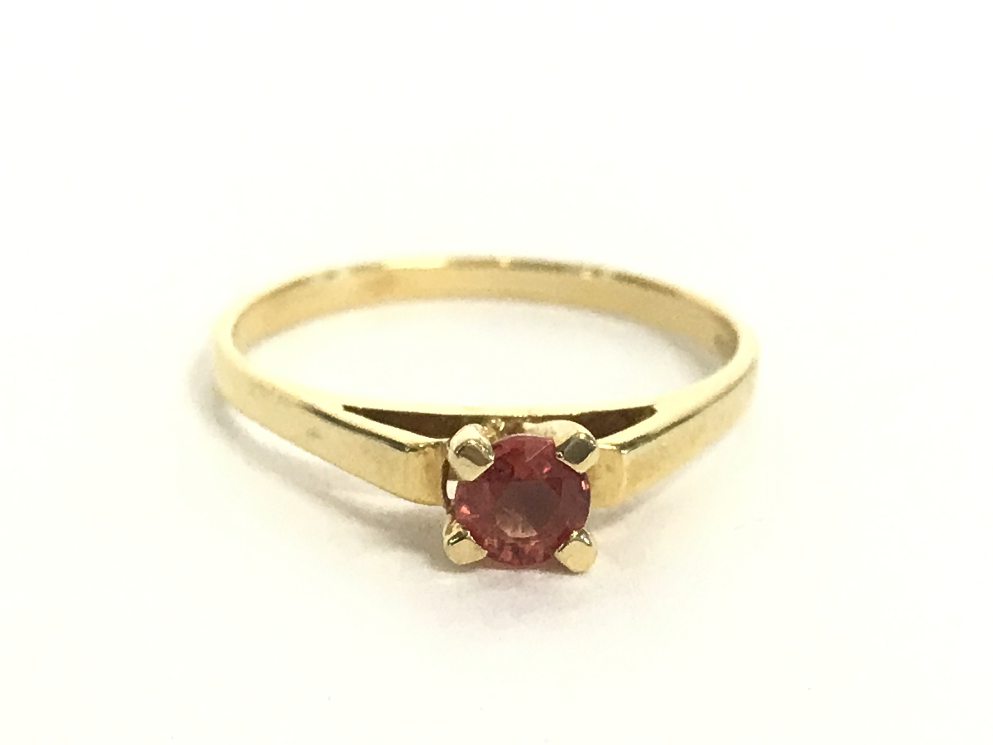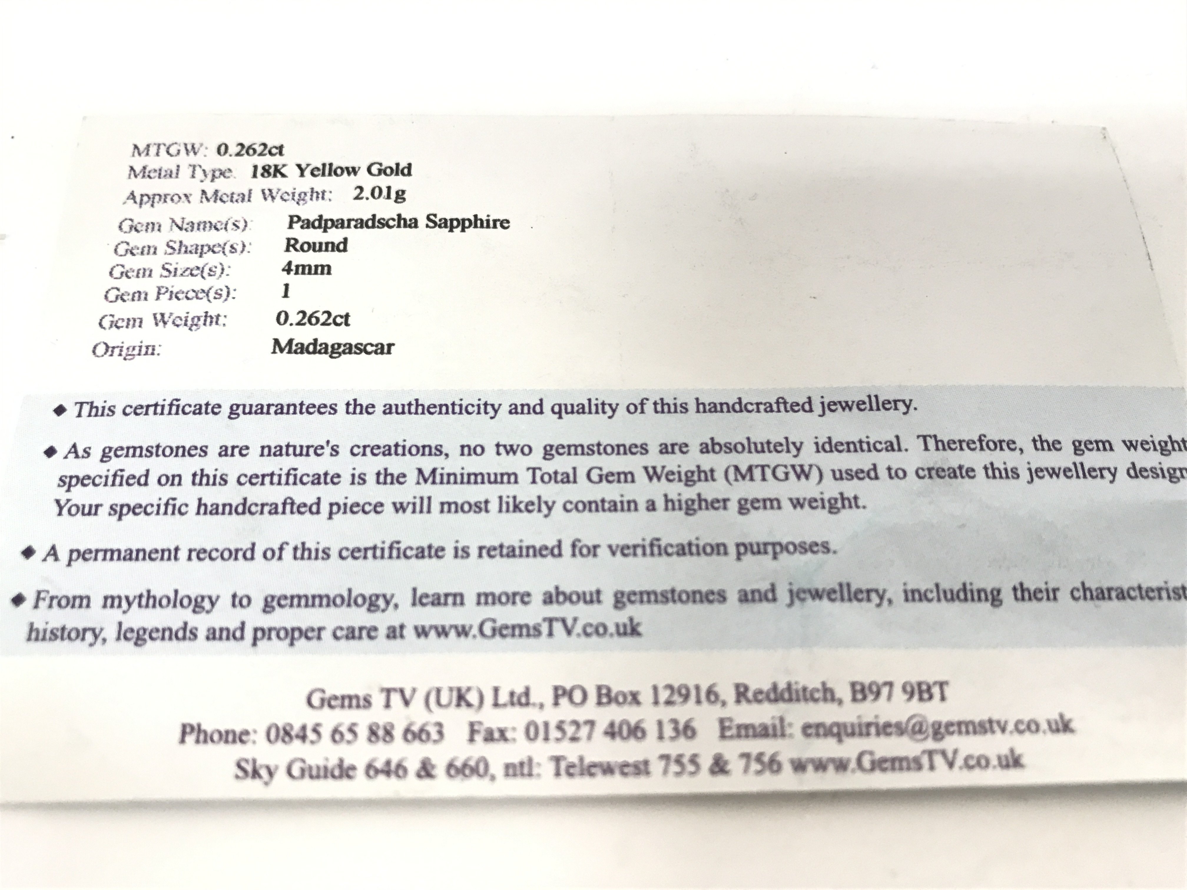 An 18 carat yellow gold Padparadscha Yellow Gold ring, size O. With Certificate. Overall weight 2.1g. Postage category A