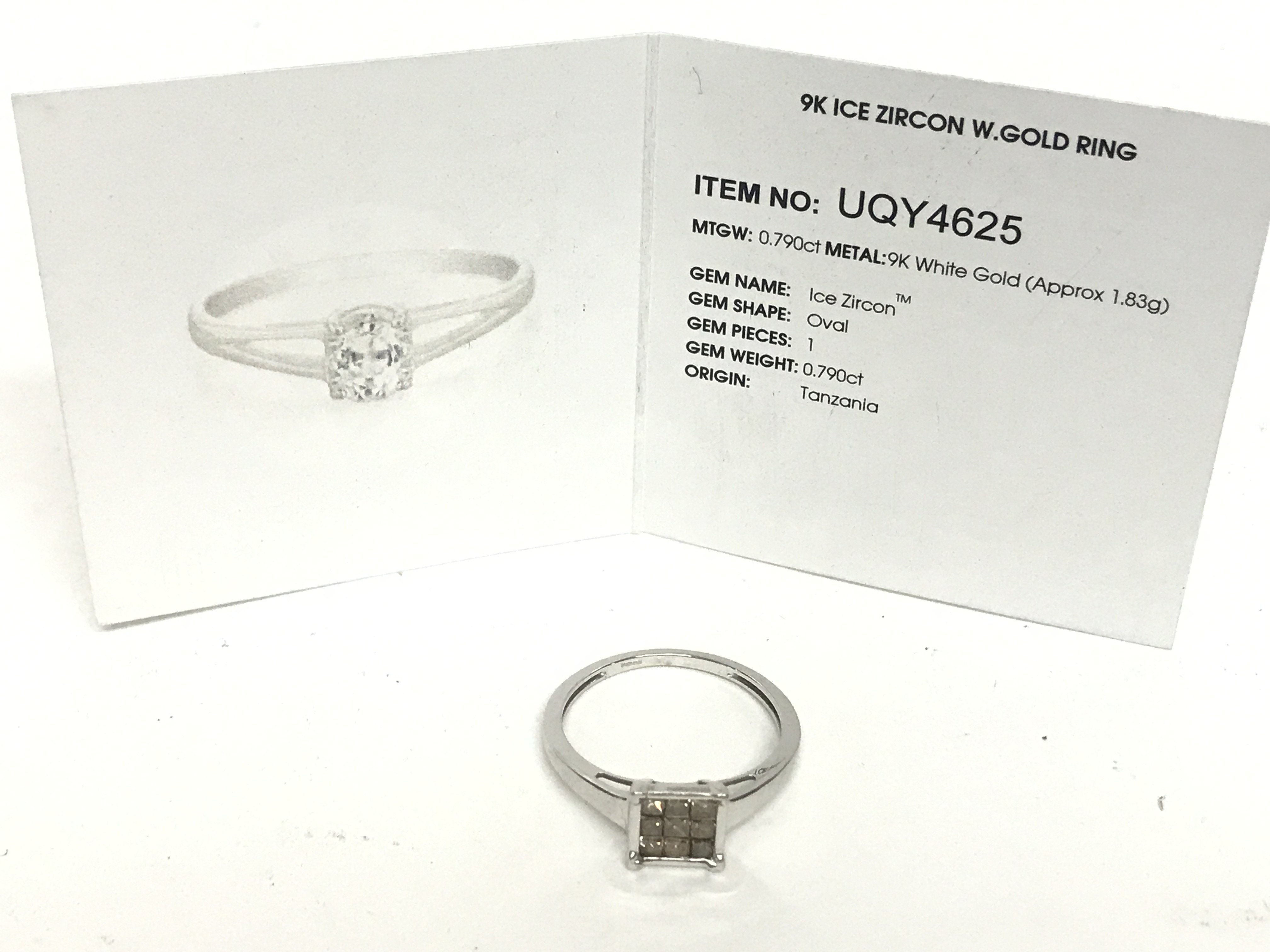 A 9 carat white gold Ice Zircon ring, size Q. Total weight 2.1g, postage category A