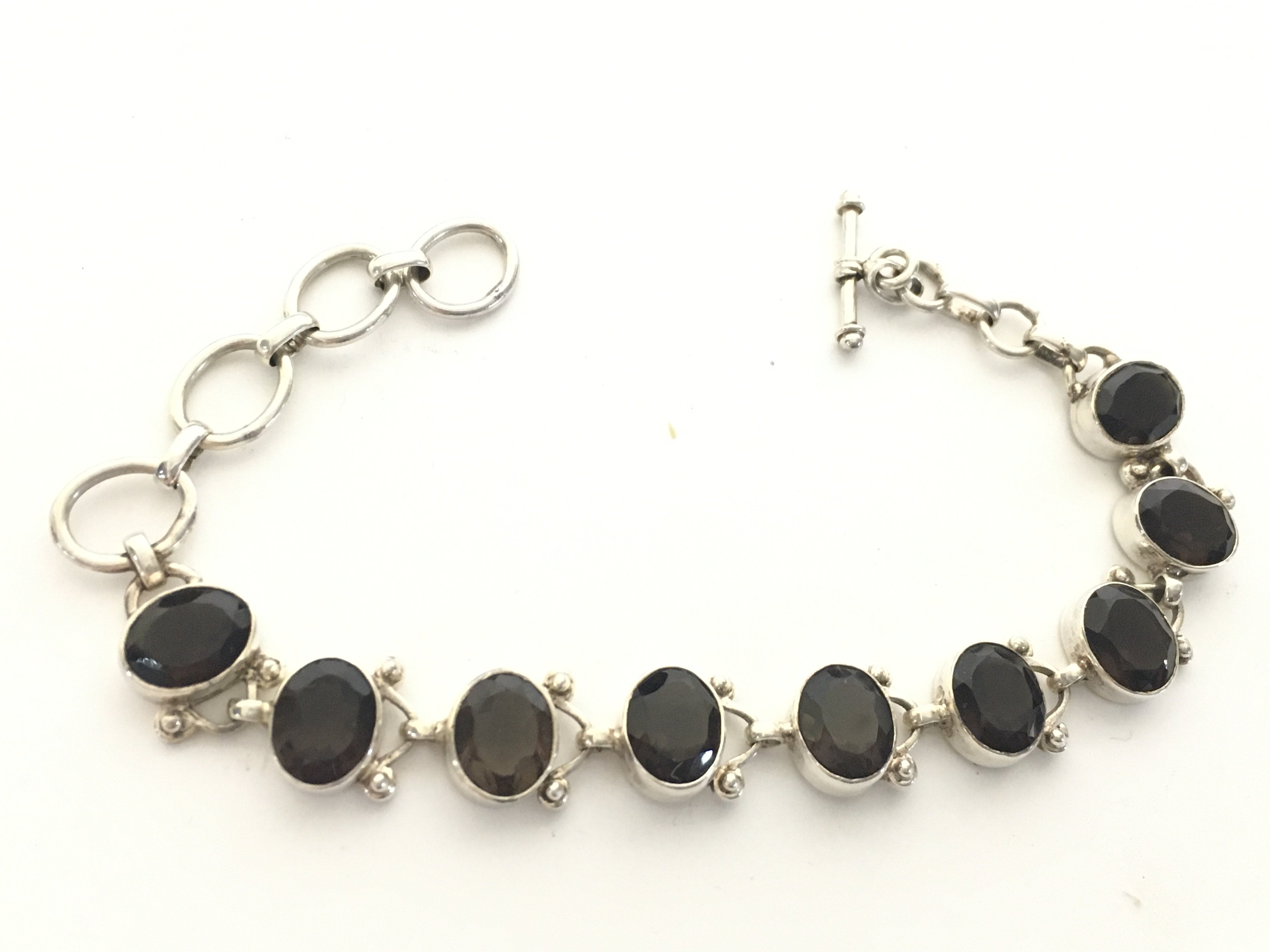 A silver oval smokey quartz bracelet, postage category A