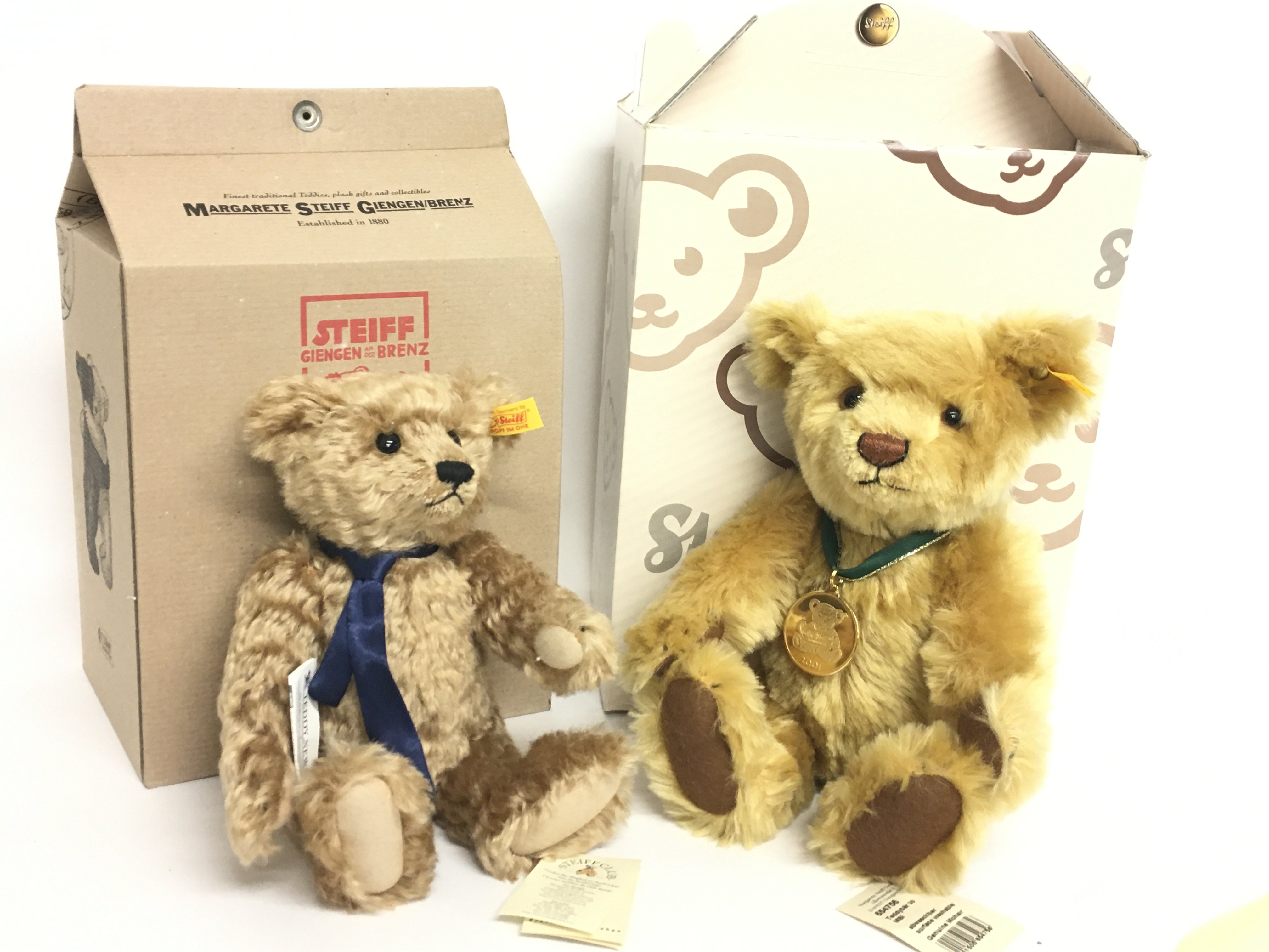 Boxed Steiff bears- 2001 Golden fully jointed bear 654756 & Father 654541. With tags. Postage category C