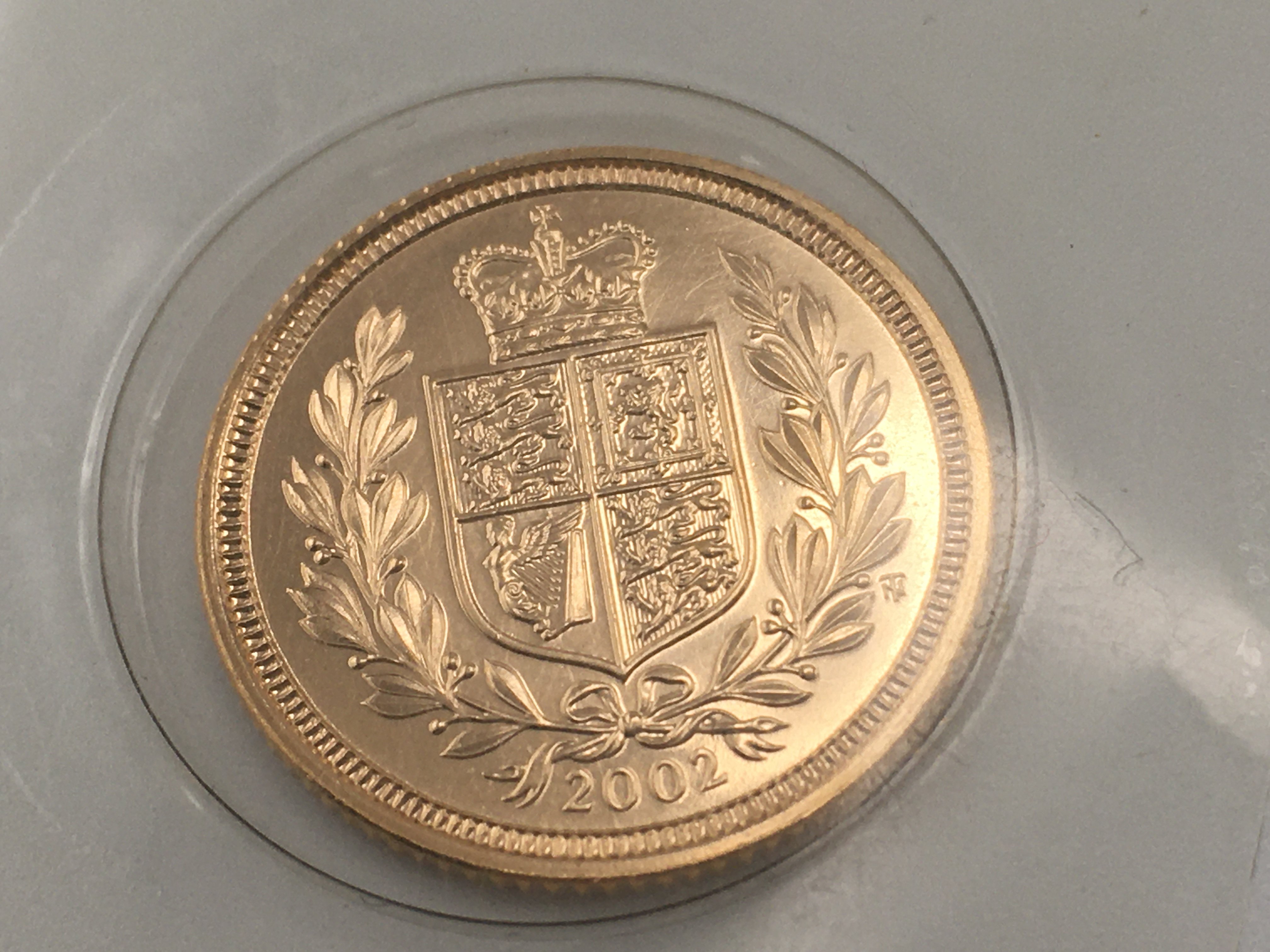 A shield back 2002 half sovereign still in blister pack. Postage cat A.