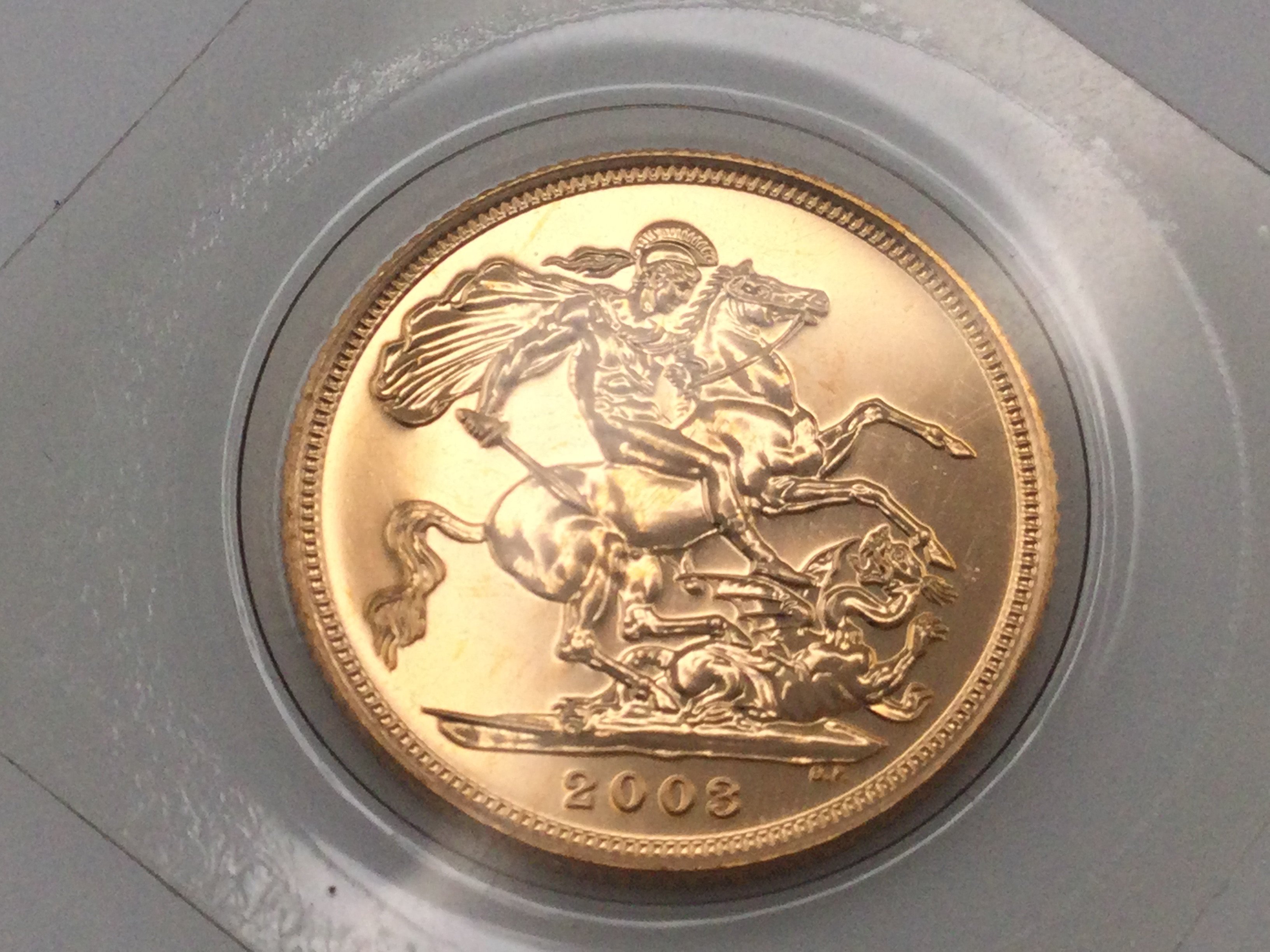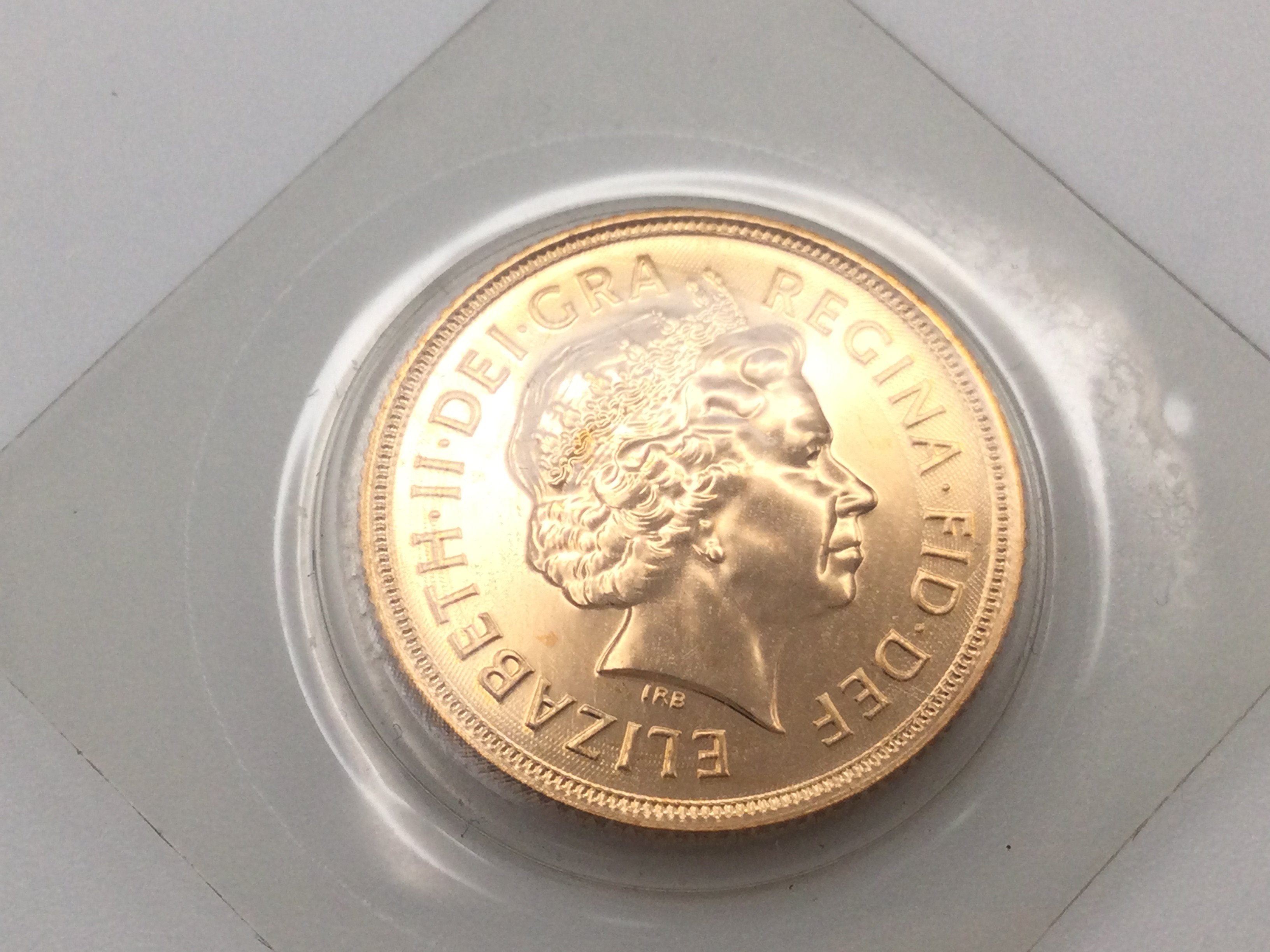 A 2003 full sovereign still in blister pack. Postage cat A.
