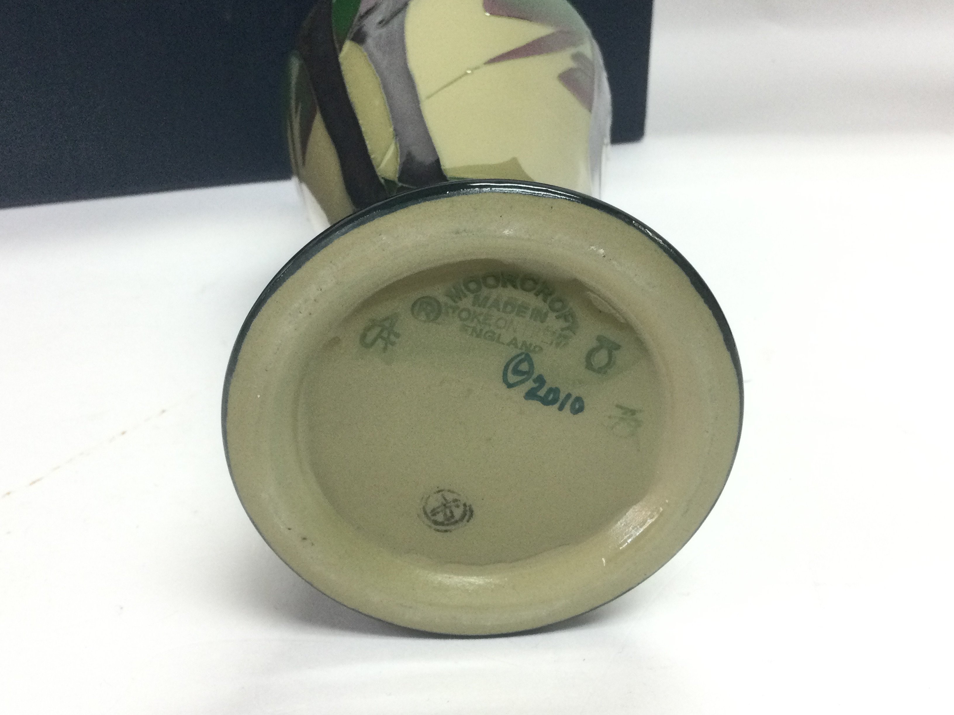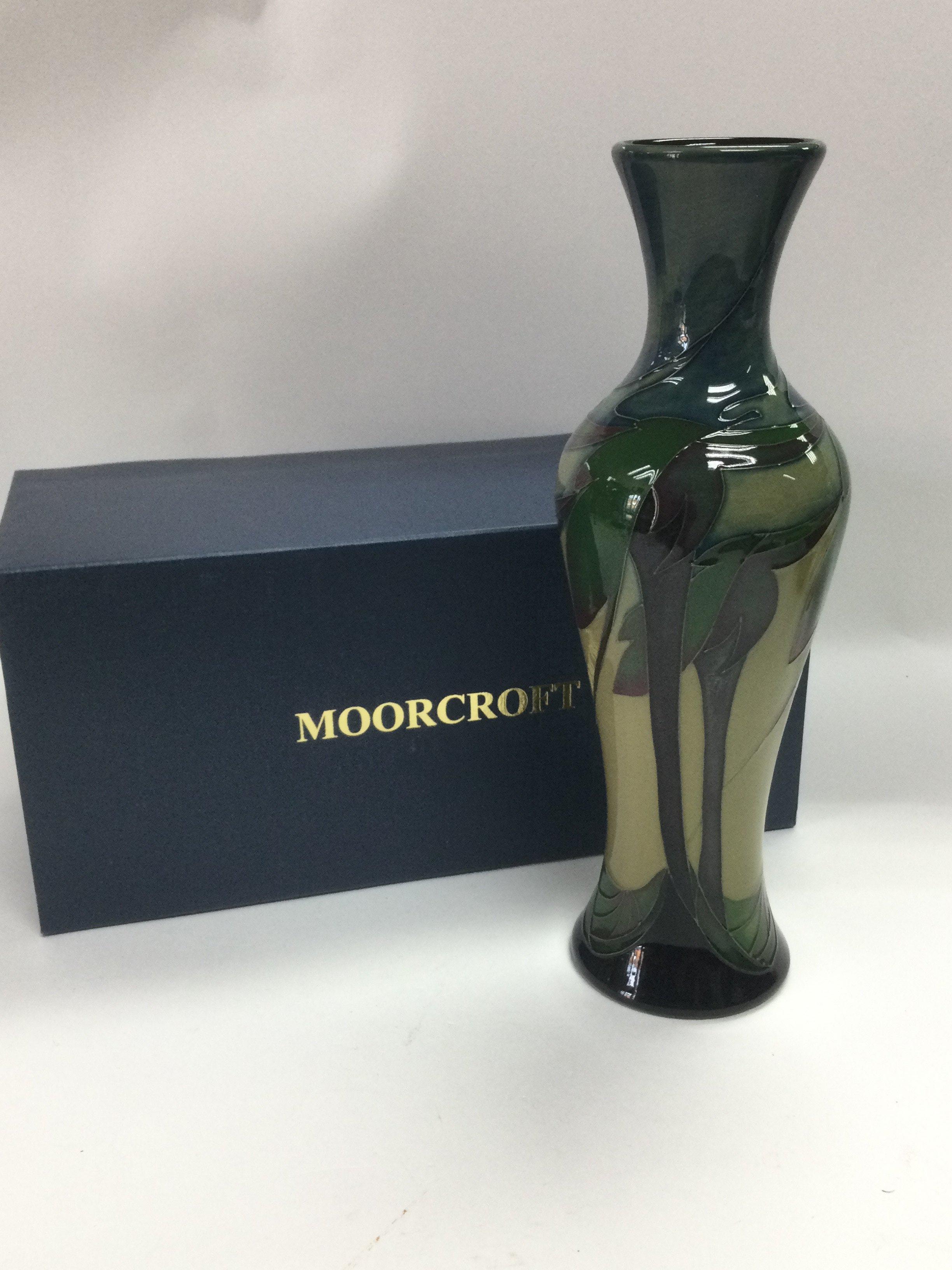 A boxed Moorcroft Moon Valley vase of elongated form designed by Nicola Slaney, approx height 26cm. Shipping category D.