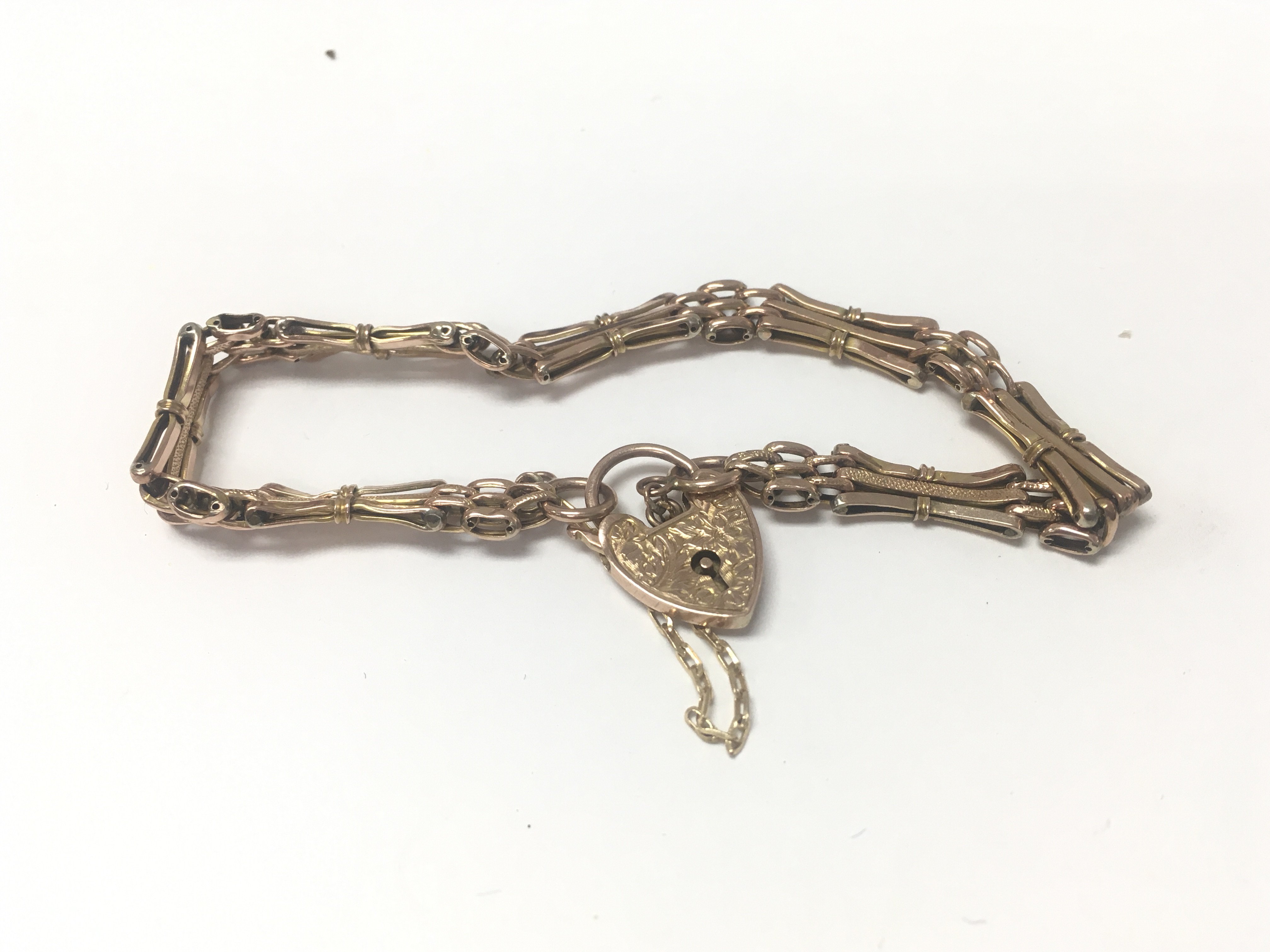 A 9ct gold gate bracelet with a heart clasp. Approx weight 5.84 grams.