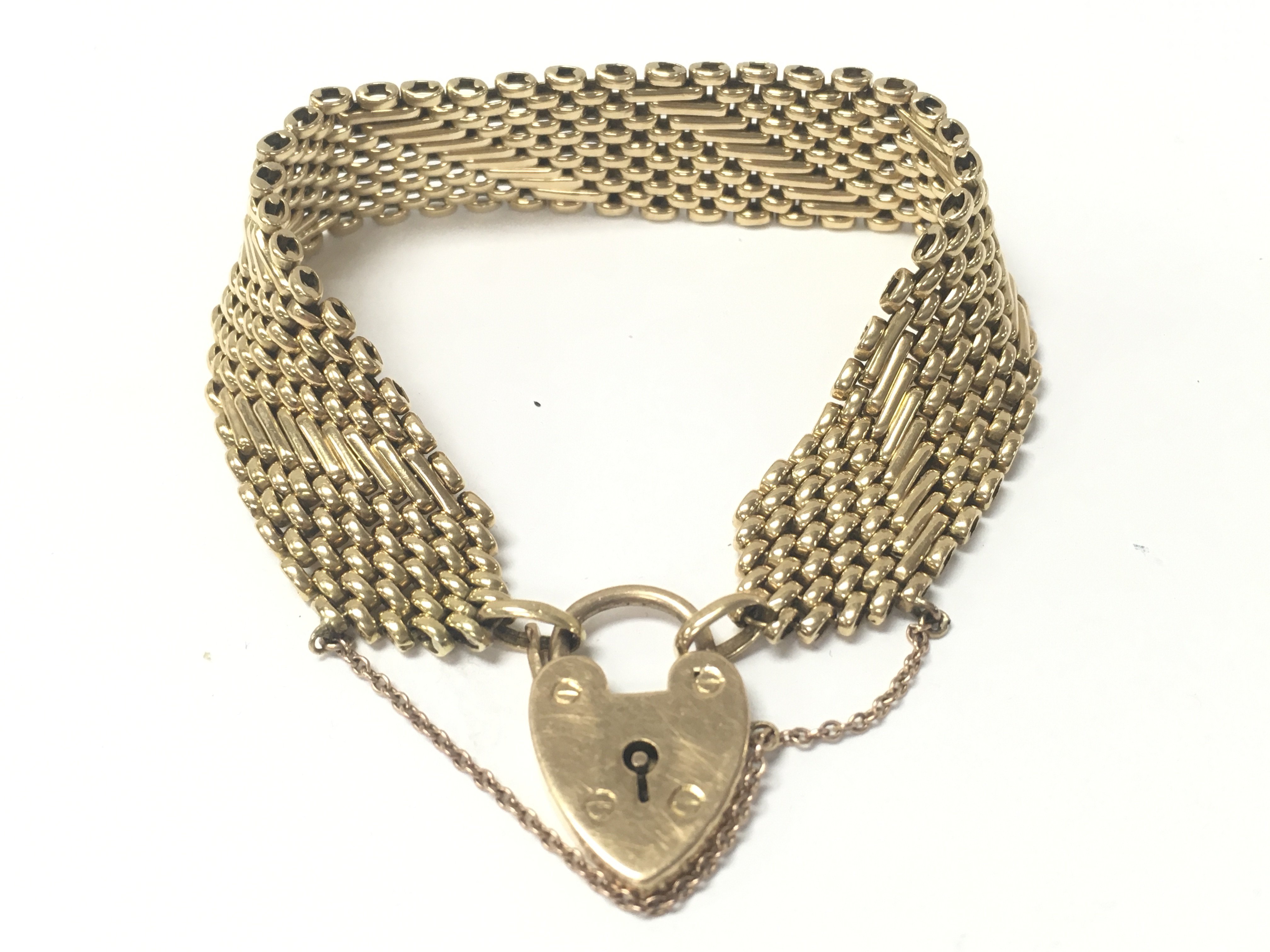 An 18ct gold mesh bracelet with heart padlock. 35.64g