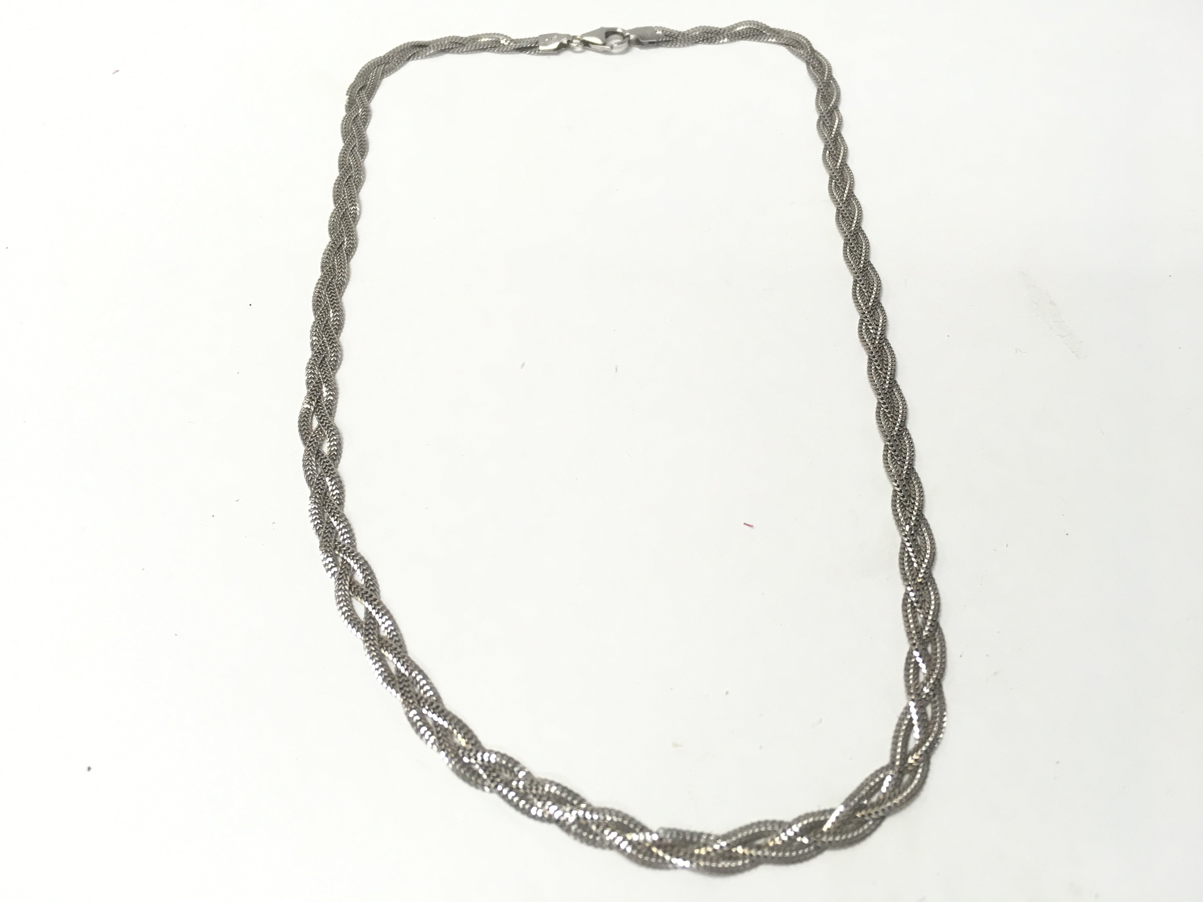 9ct white gold mesh necklace. 7.27g and 44cm long.