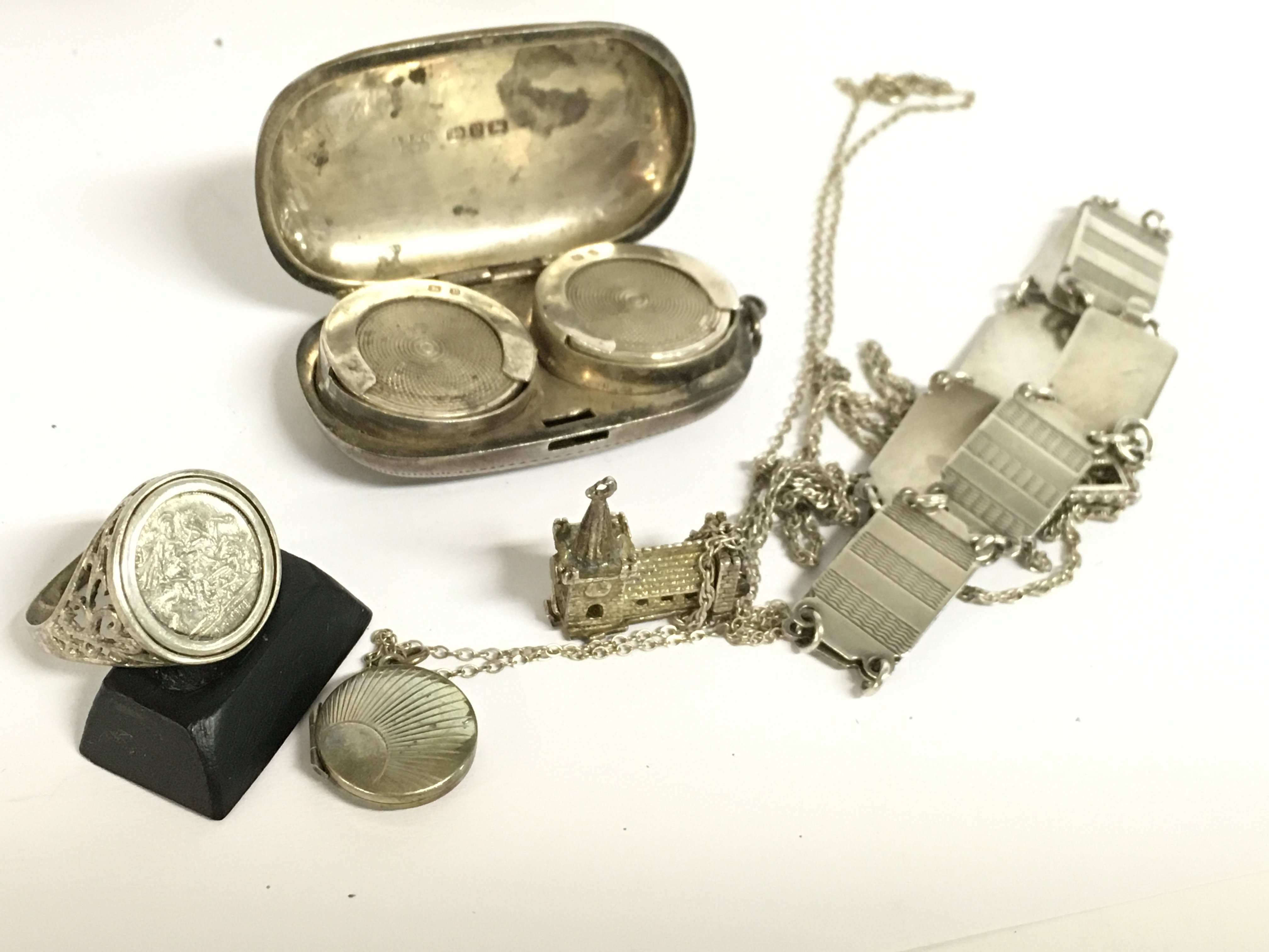 A collection of assorted items including a hallmarked silver sovereign case and silver bracelet etc.