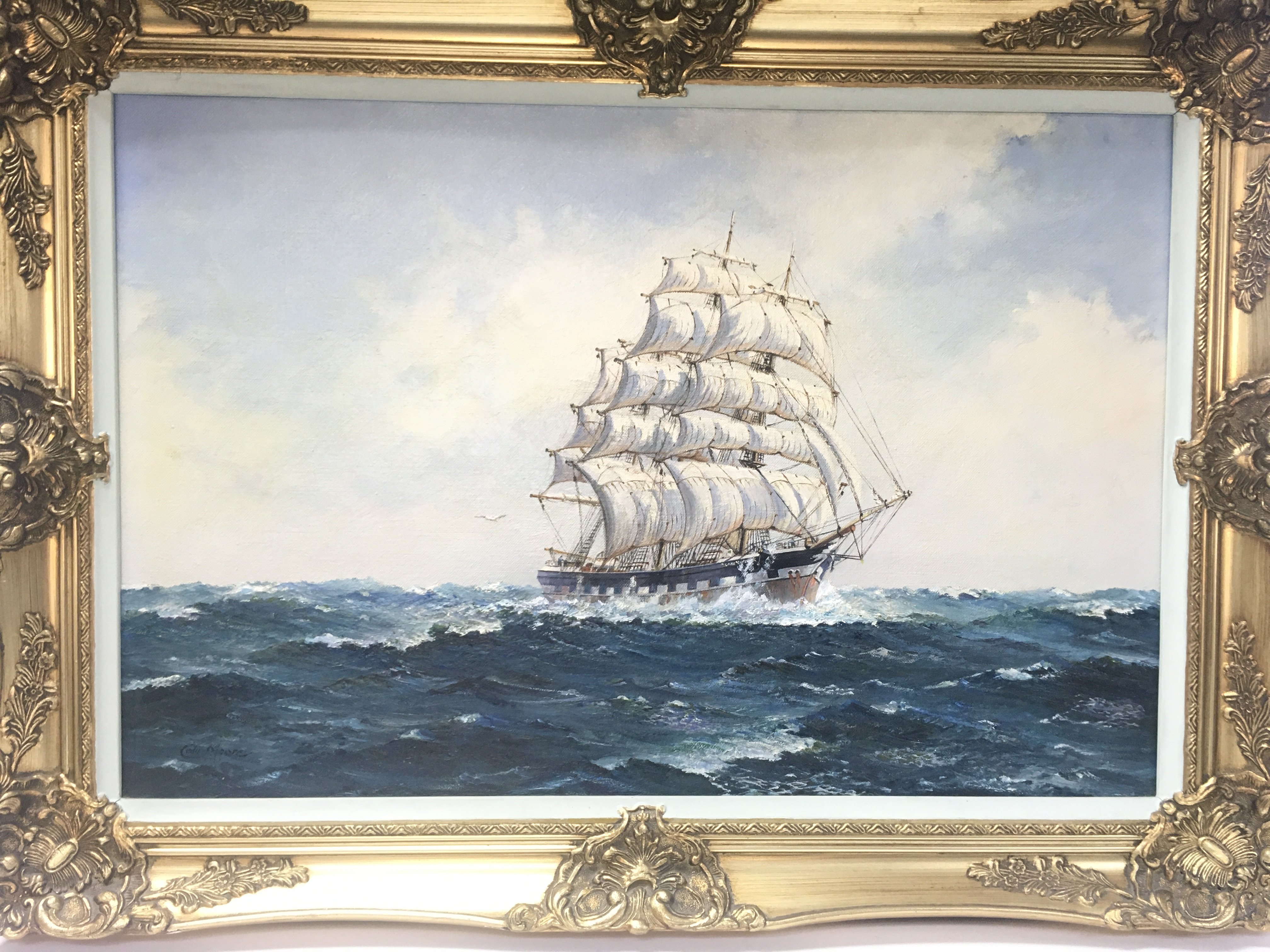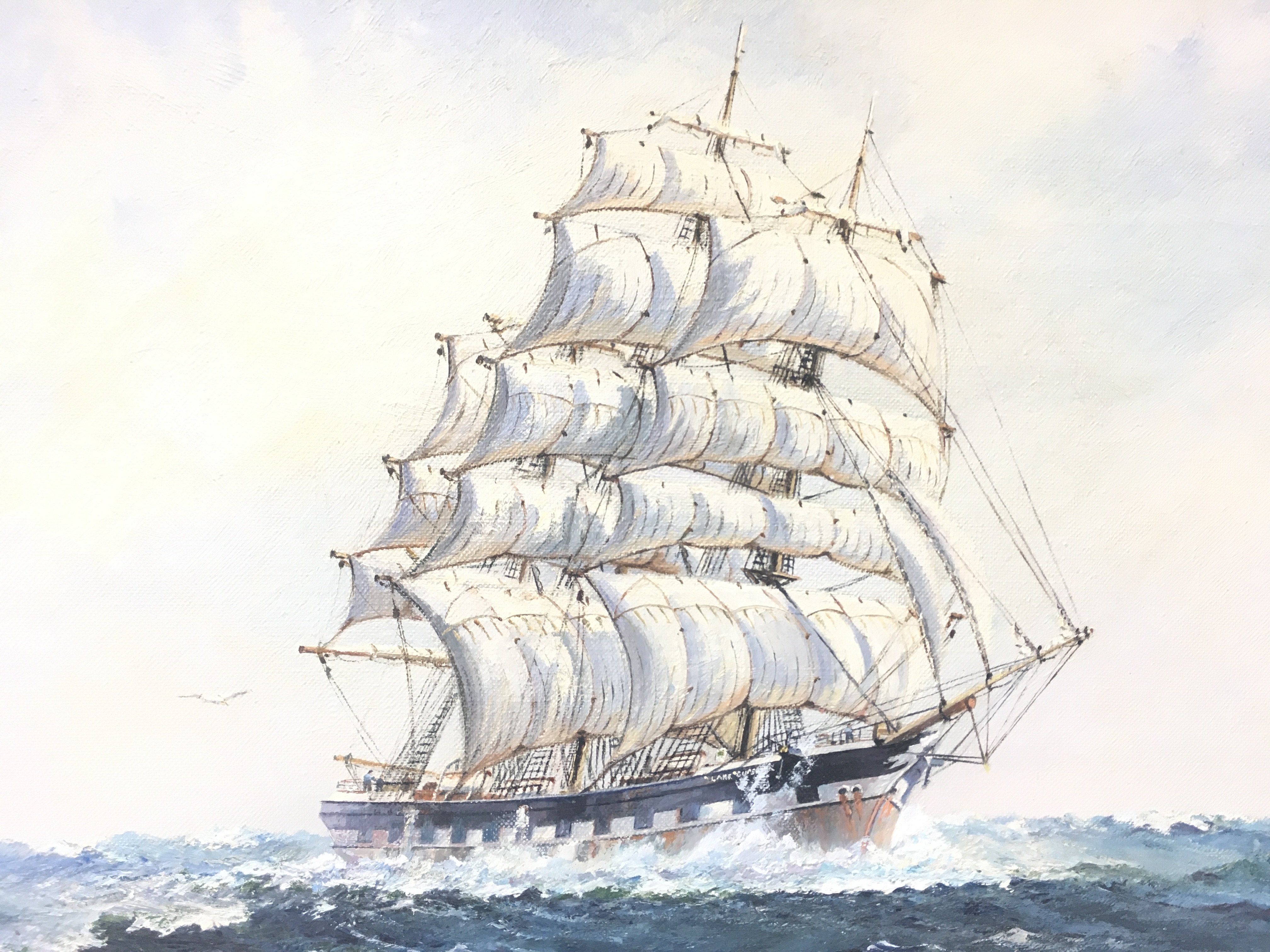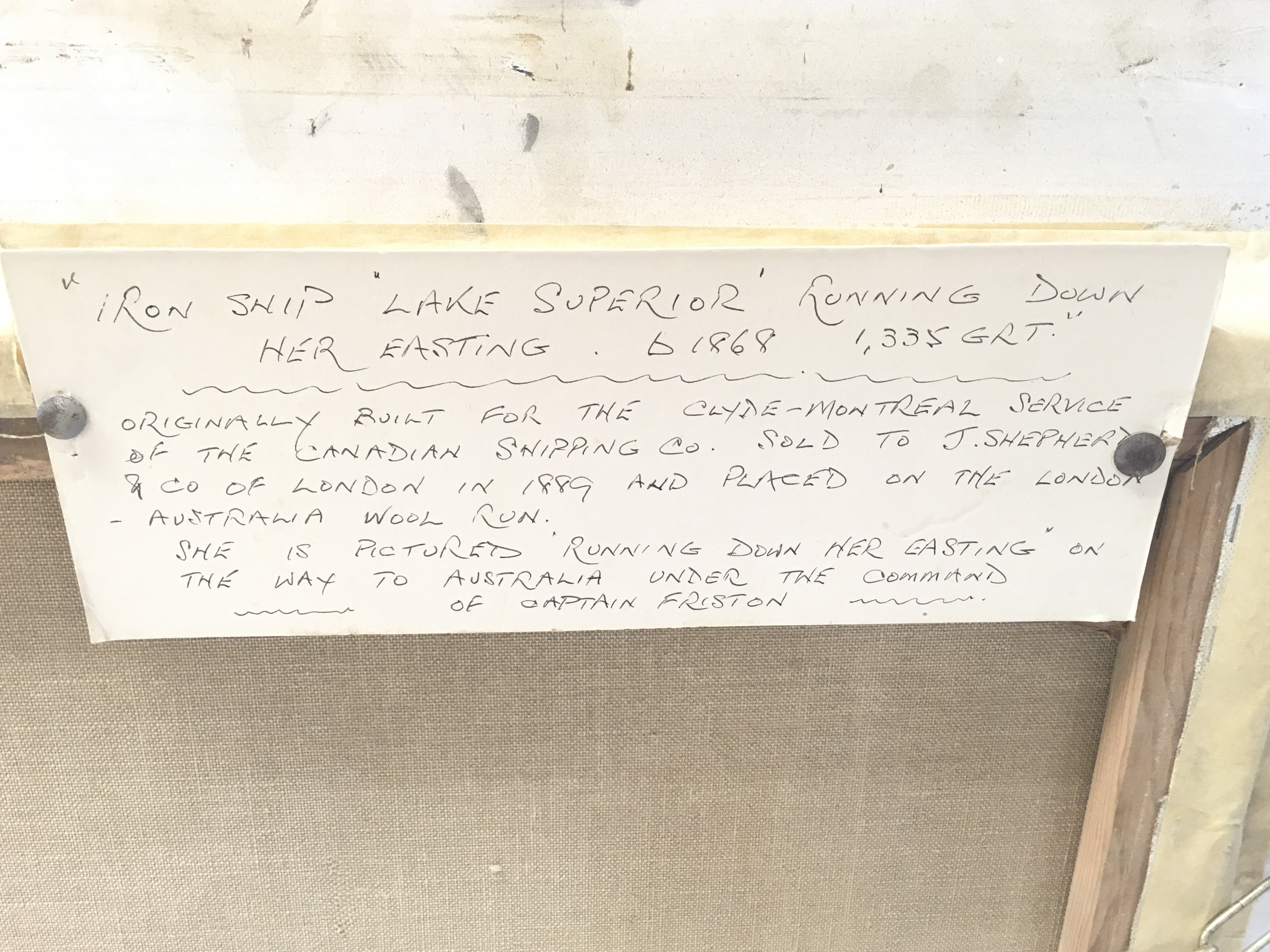 A Colin Moore galleon painting of iron ship Lake Superior. 90cm by 66cm.