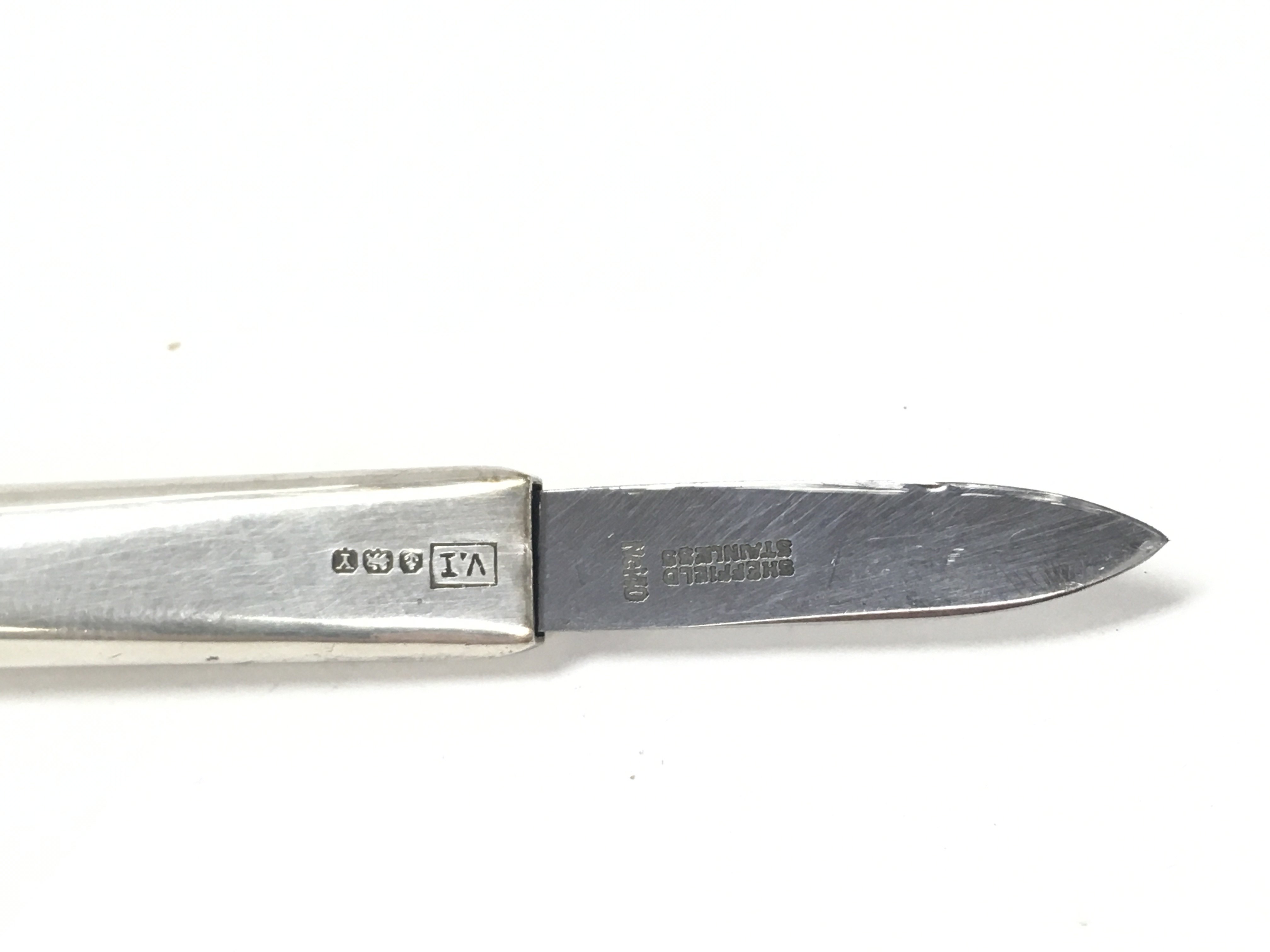 A silver and stainless steel K knife pocket pen knife. Birmingham hallmarks 1948