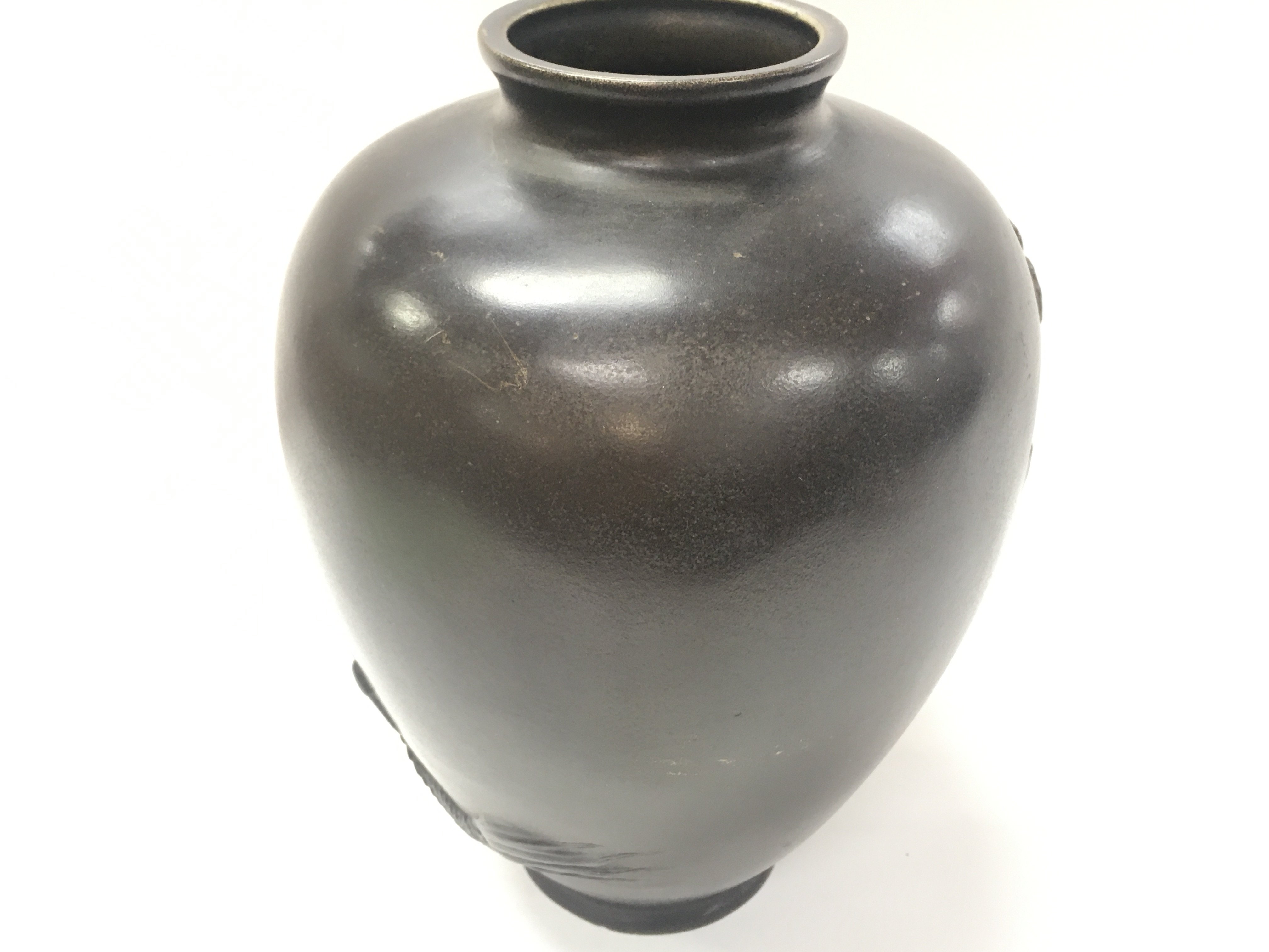 A Japanese early 20th century bronze vase featuring a raised dragon. Approximately 23cm high and 19cm wide.