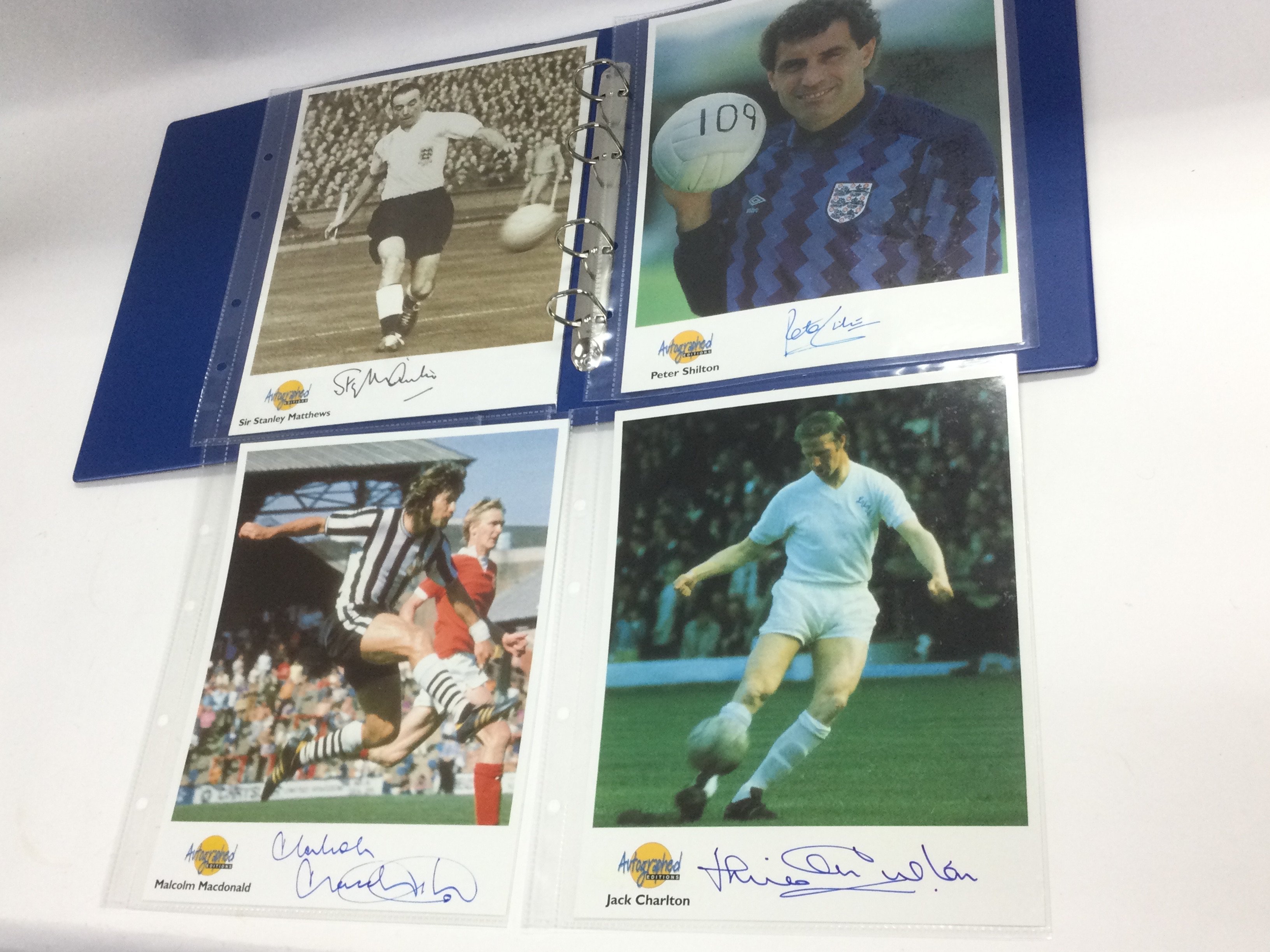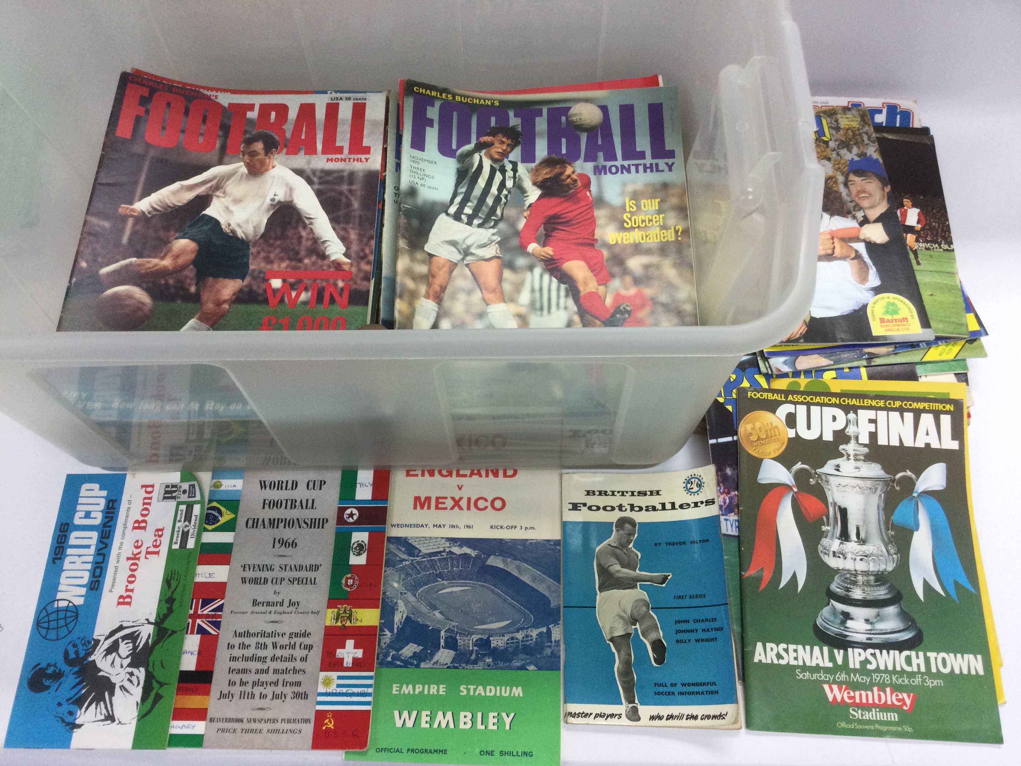 A box of football magazines and programs plus some autographs including Jack Charlton, Stanley Matthews, Malcolm Macdonald and Peter Shilton. Shipping category D.