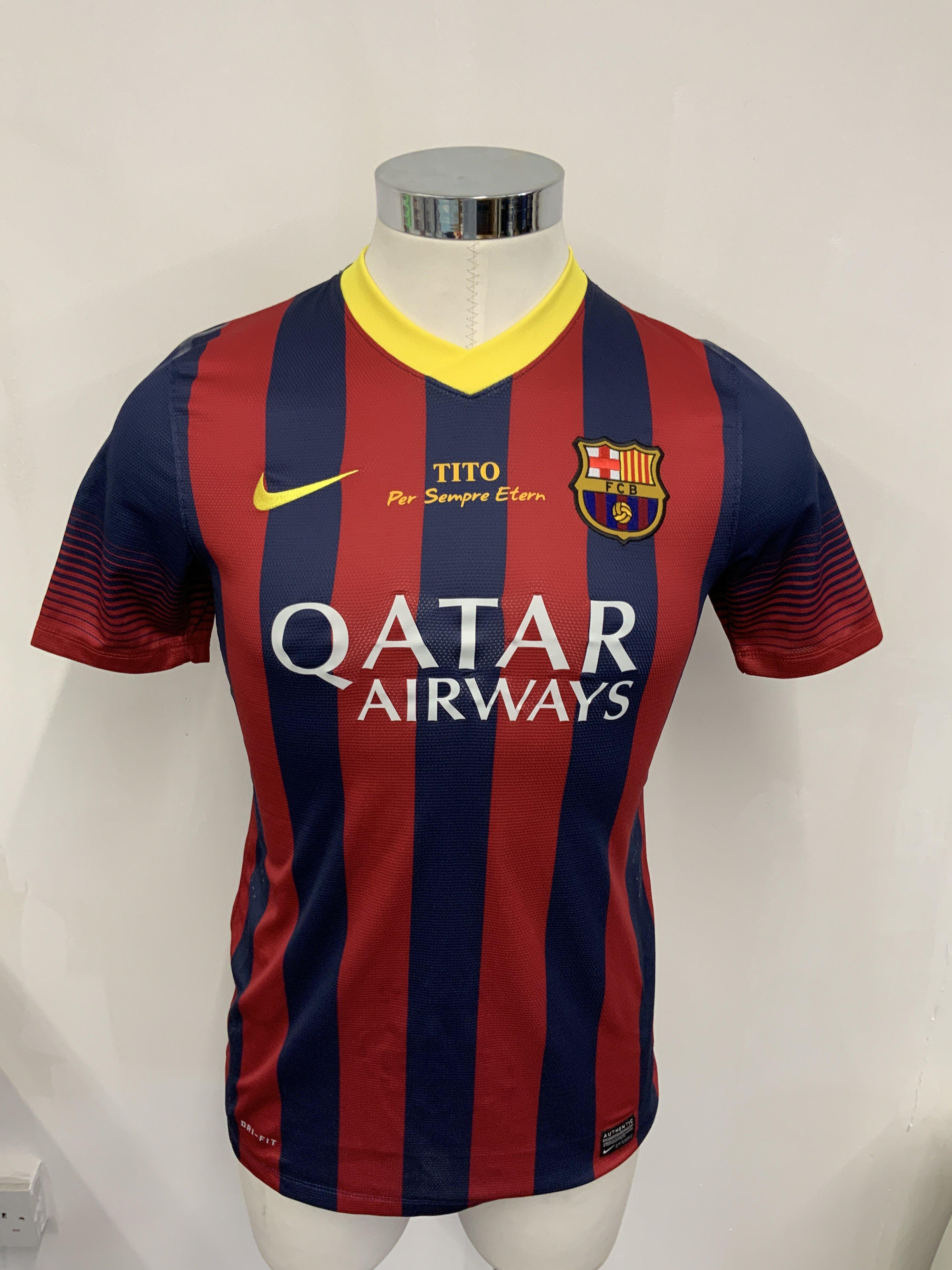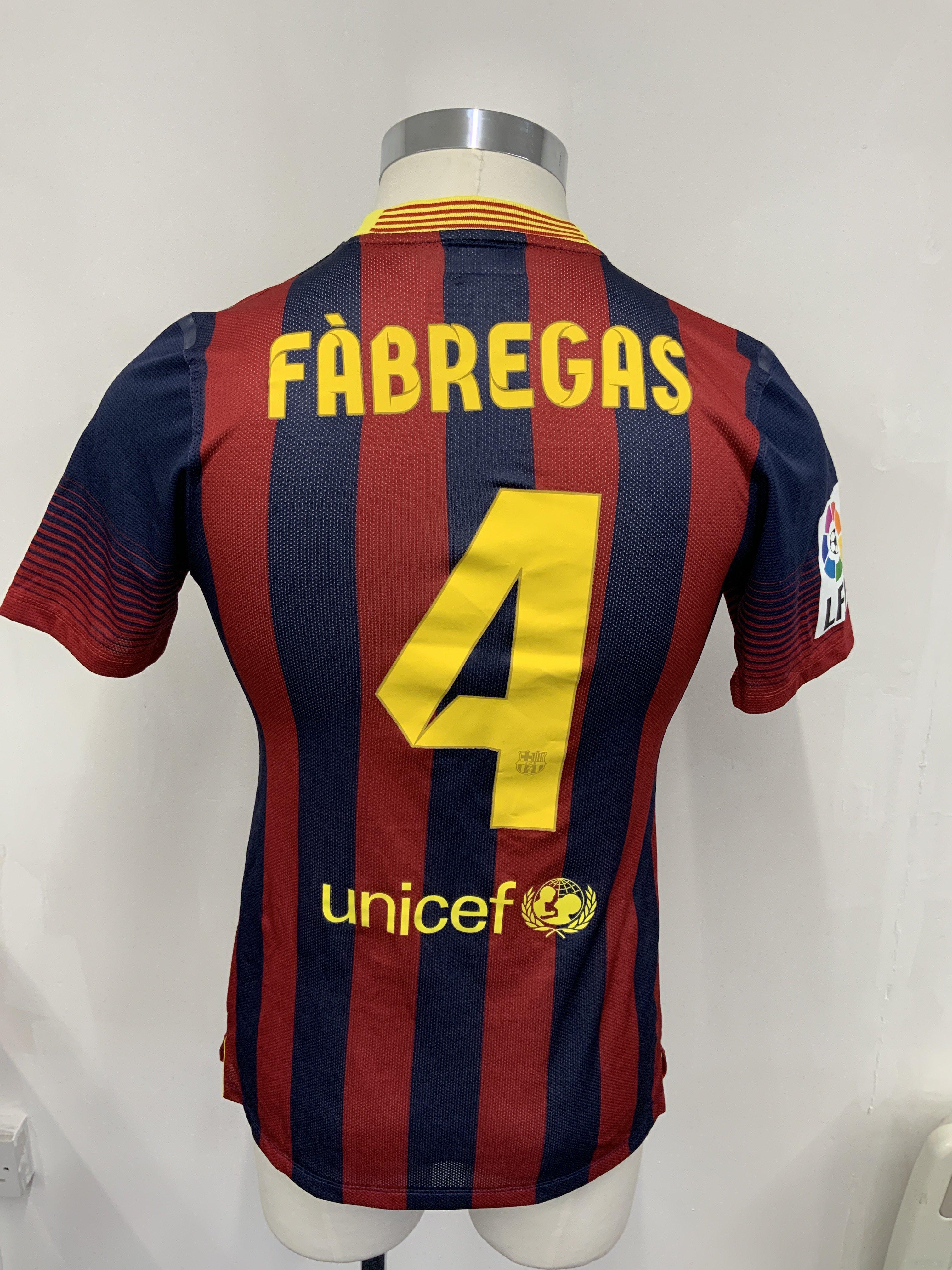 Fabregas Barcelona Match Worn Football Shirt: Home short sleeve shirt with LFP arm patch. Number 4 Fabregas to rear. Obtained by his old team mate Kolo Toure.