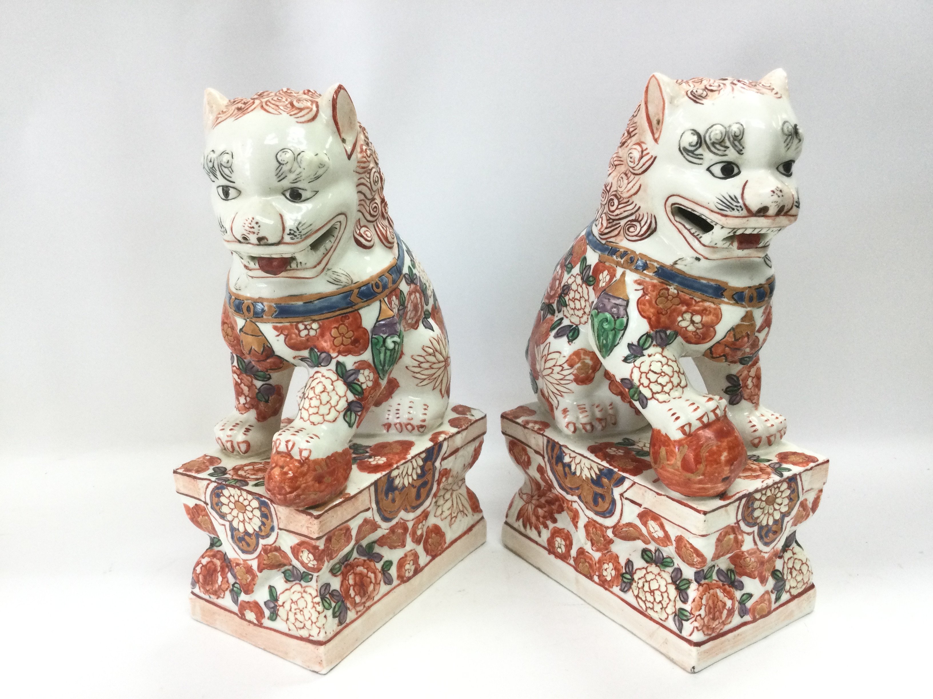 A pair of modern Imari dogs of Fo figures, approx height 25cm. Shipping category D.