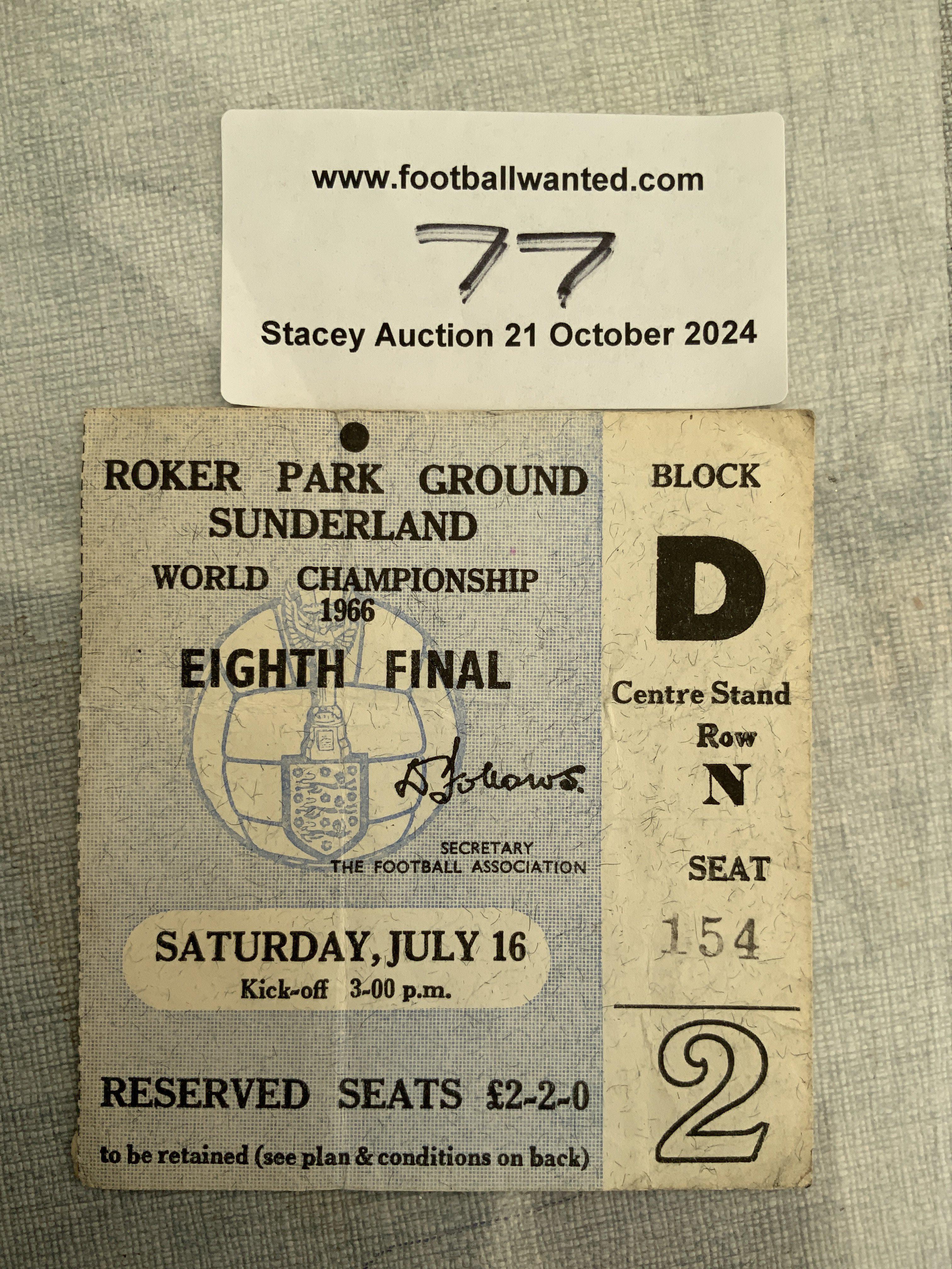 1966 World Cup Football Ticket Italy v Russia: Played at Sunderland on 16 7 1966 in good condition with folding.