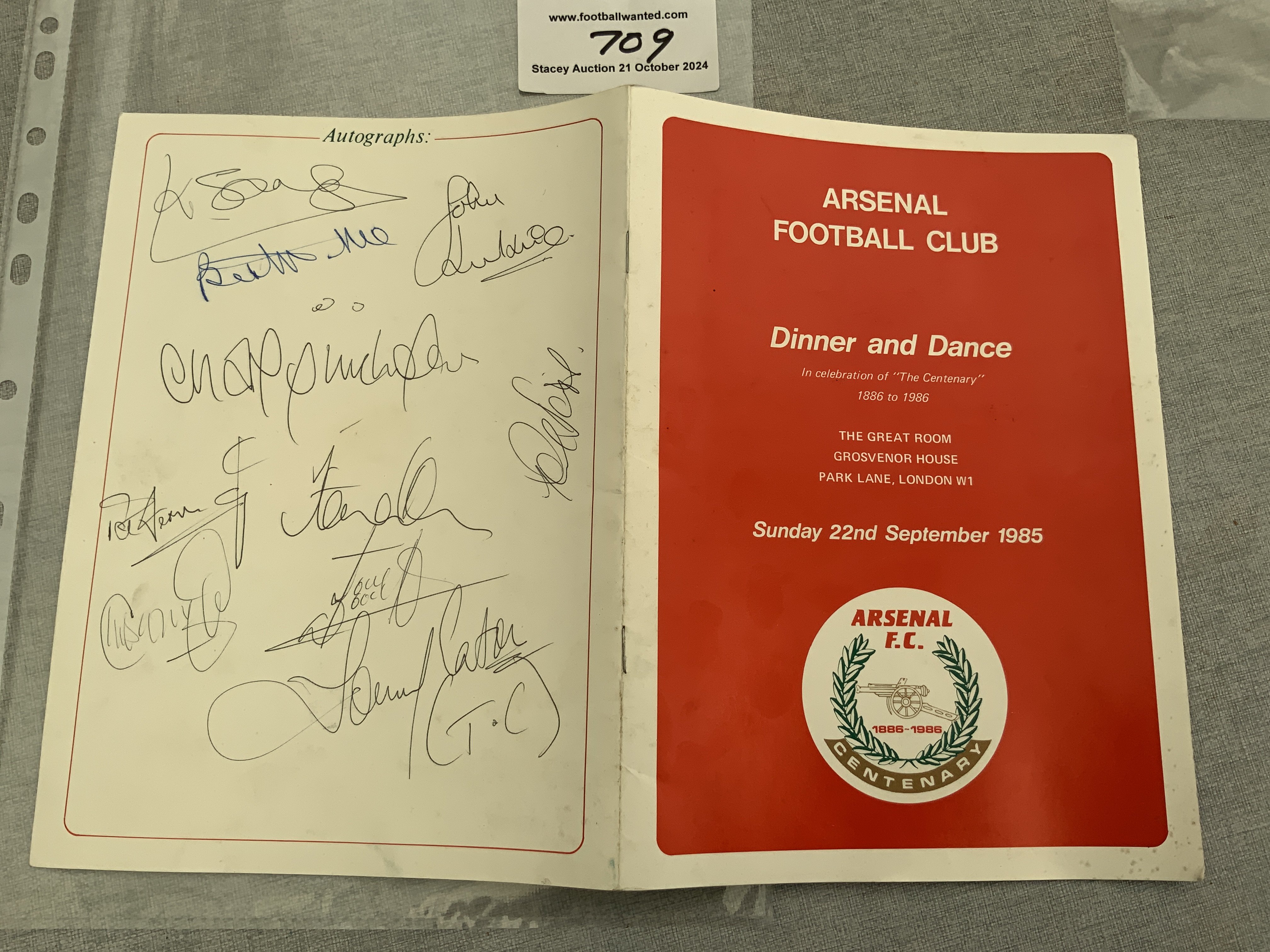 1985/86 Arsenal Signed Centenary Football Menu: Signed to rear by 10 including Jennings Mee Sansom and others.