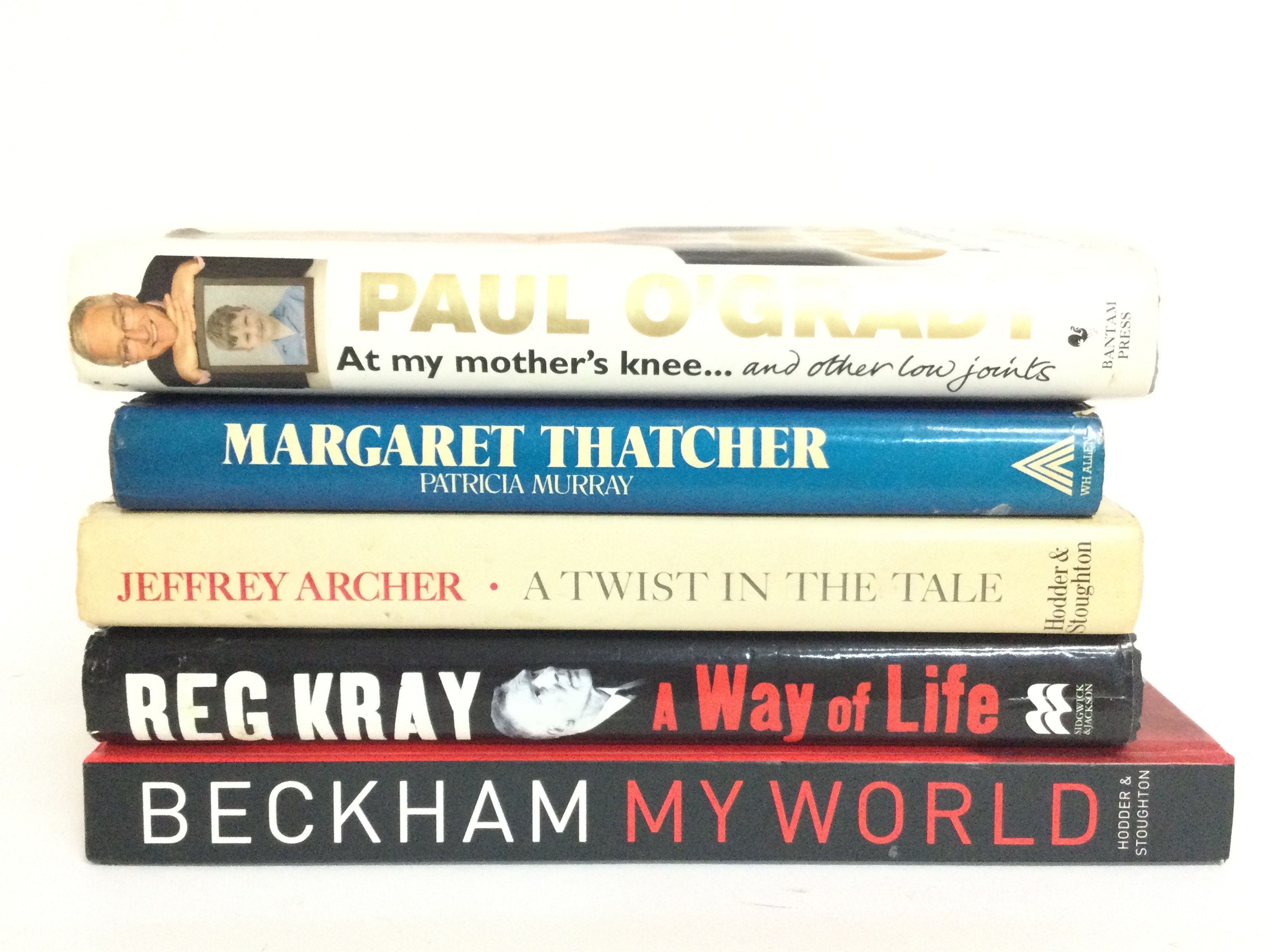 A collection of signed autobiographies including Reggie Kray, David Beckham etc. postage category B