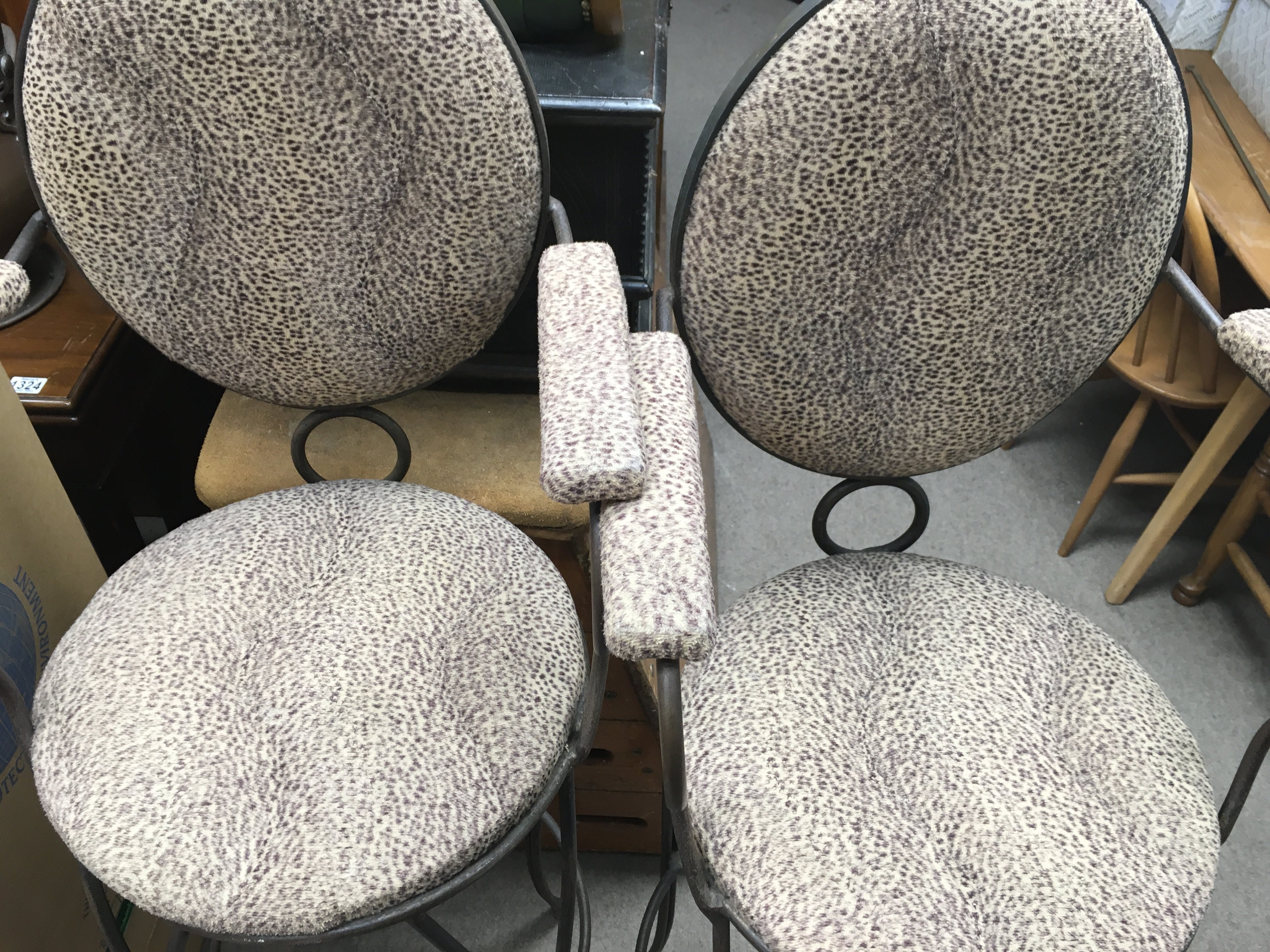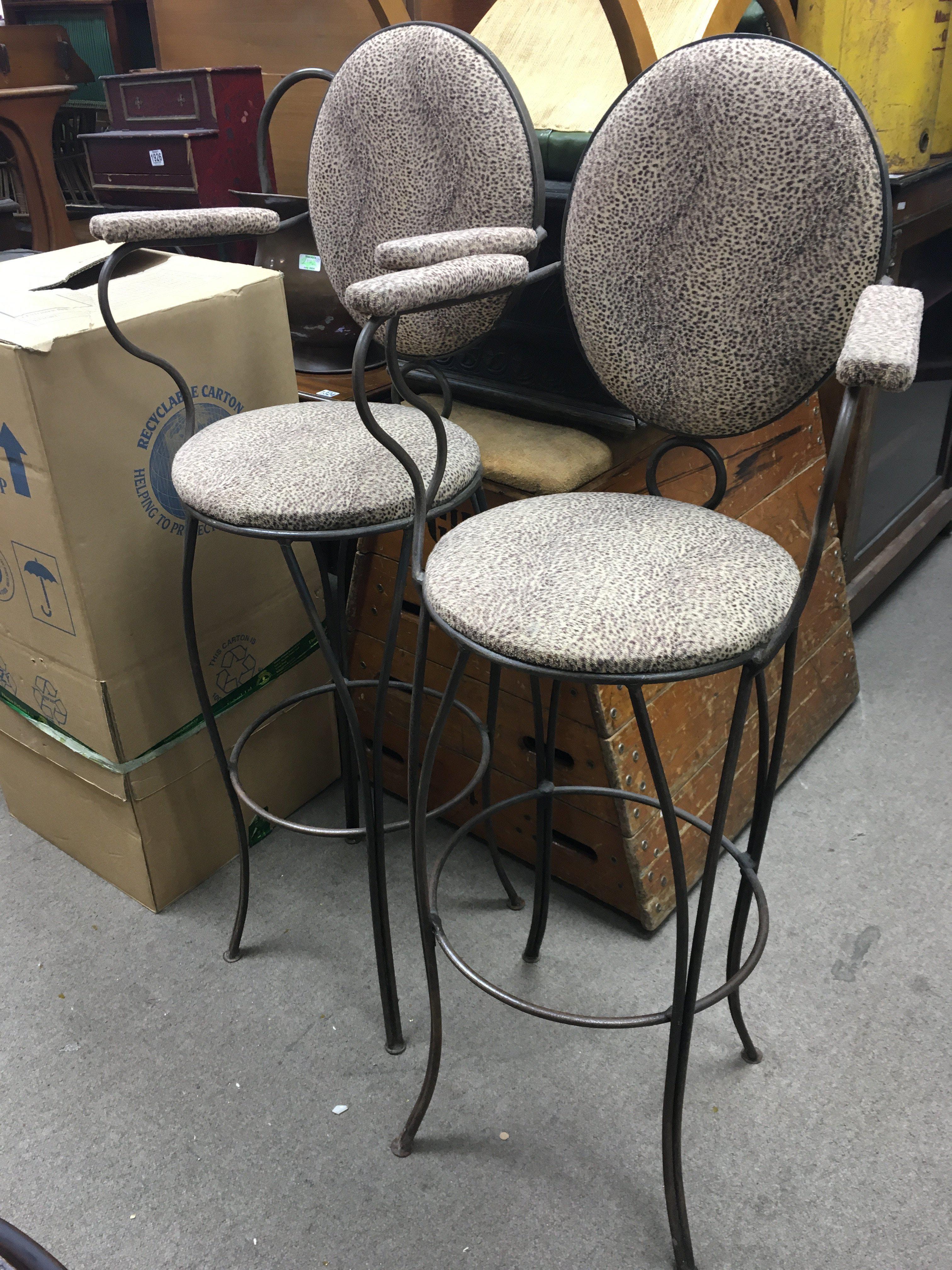 A pair of cast Iron bar chairs with mid 20th century influence 134cm tall, 34cm wide.