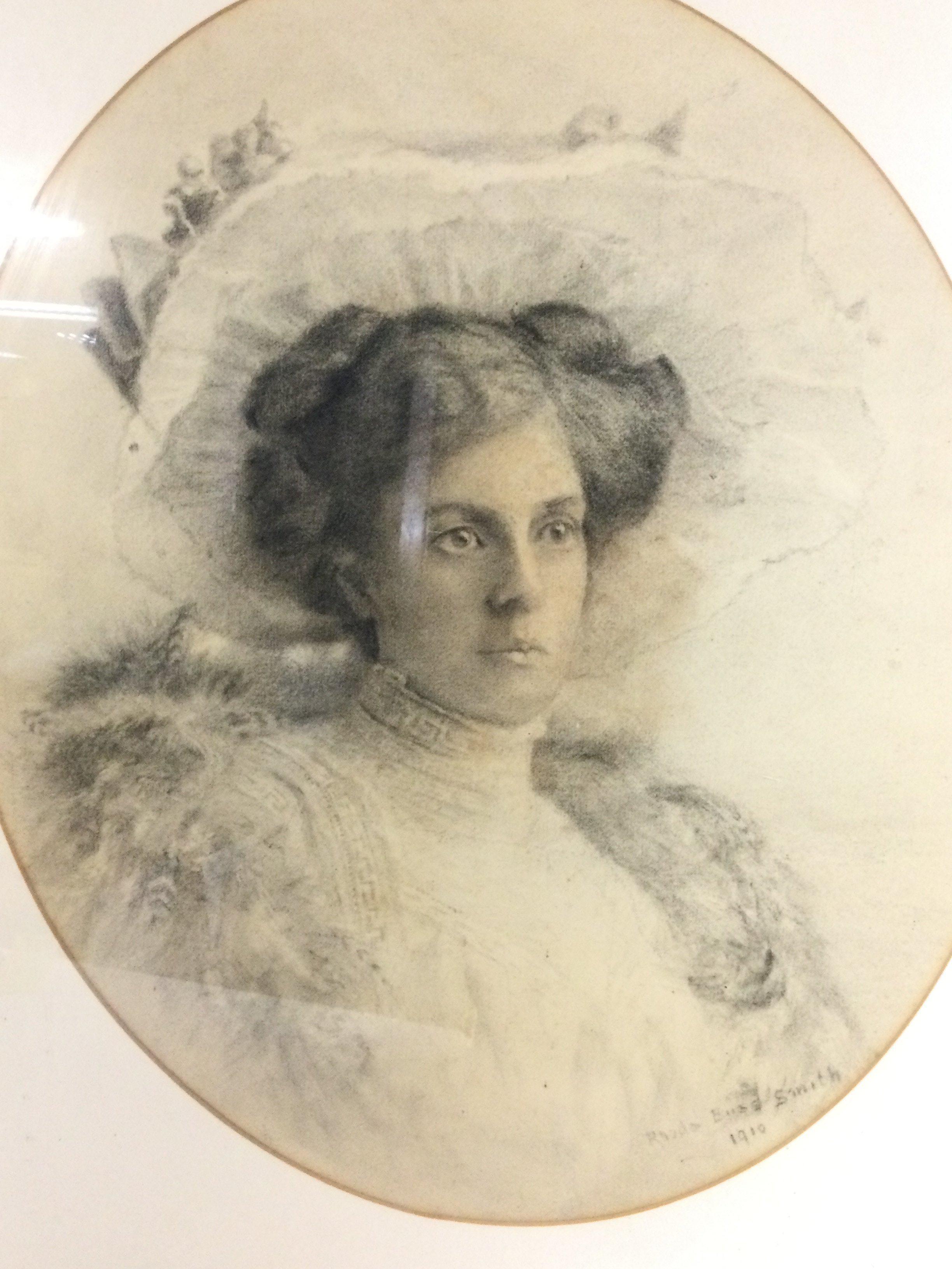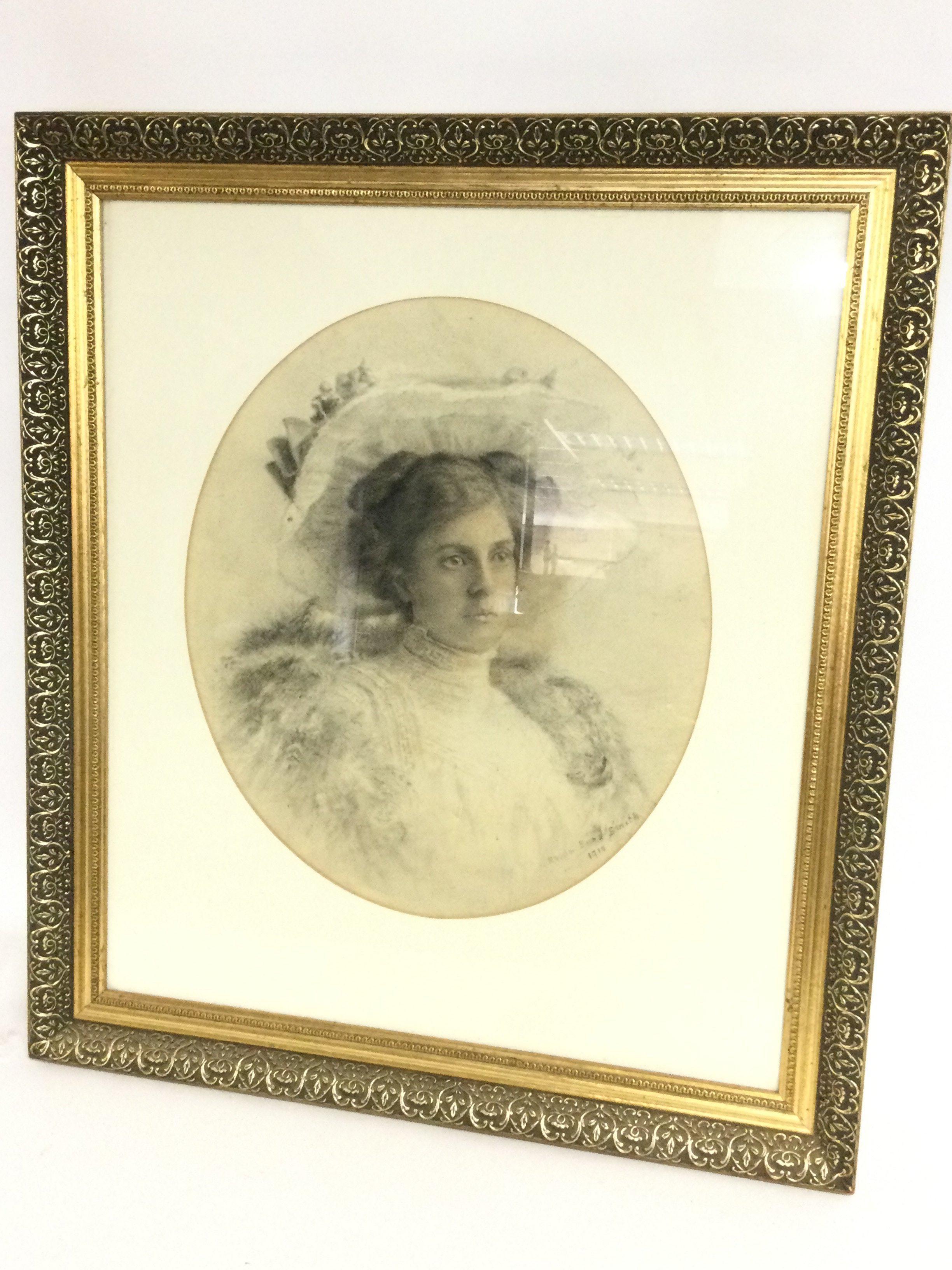 An early 20th century large gilt framed pencil sketch signed Rhoda Buss Smith. Dimensions 67x75cm This lot cannot be posted