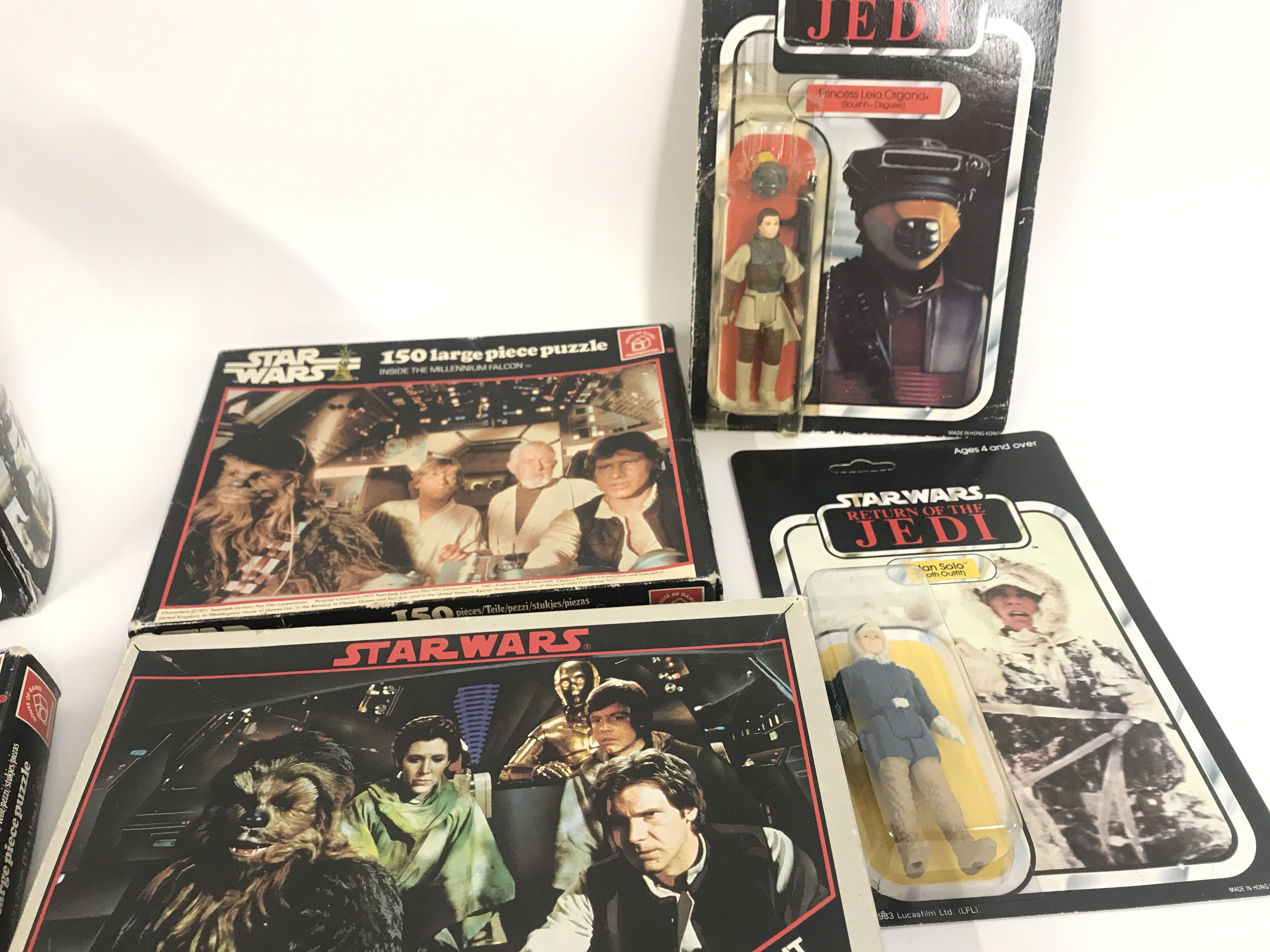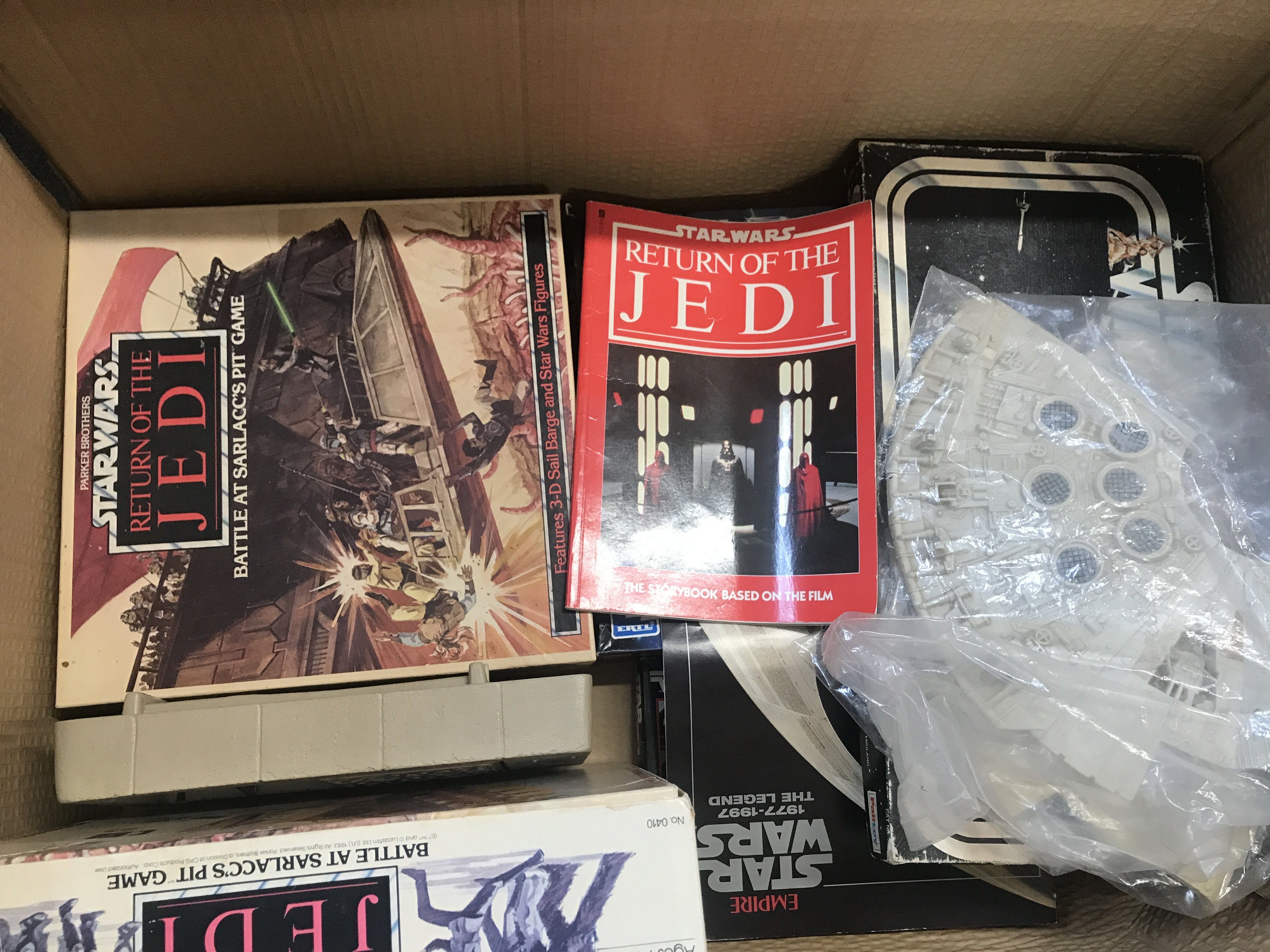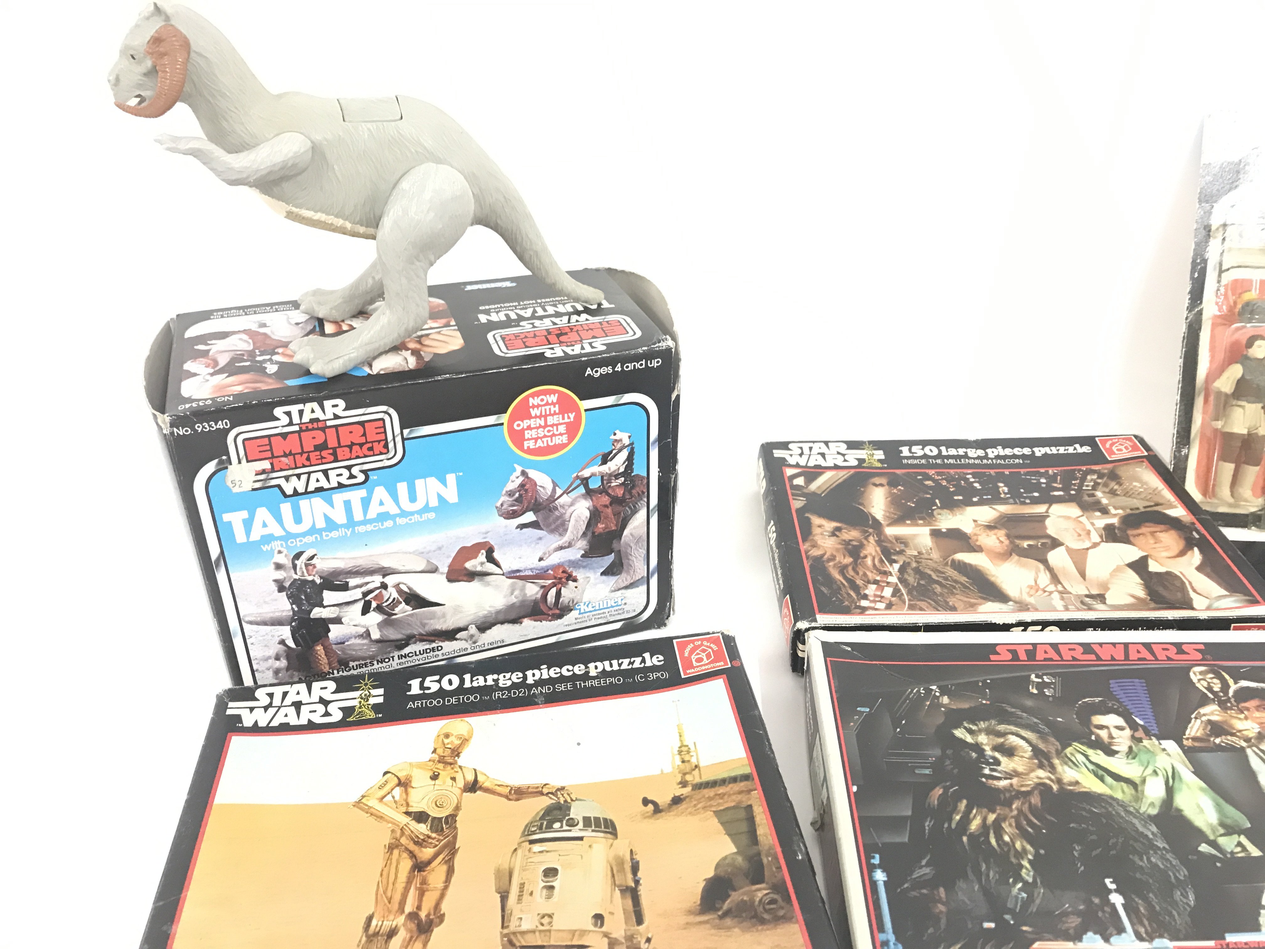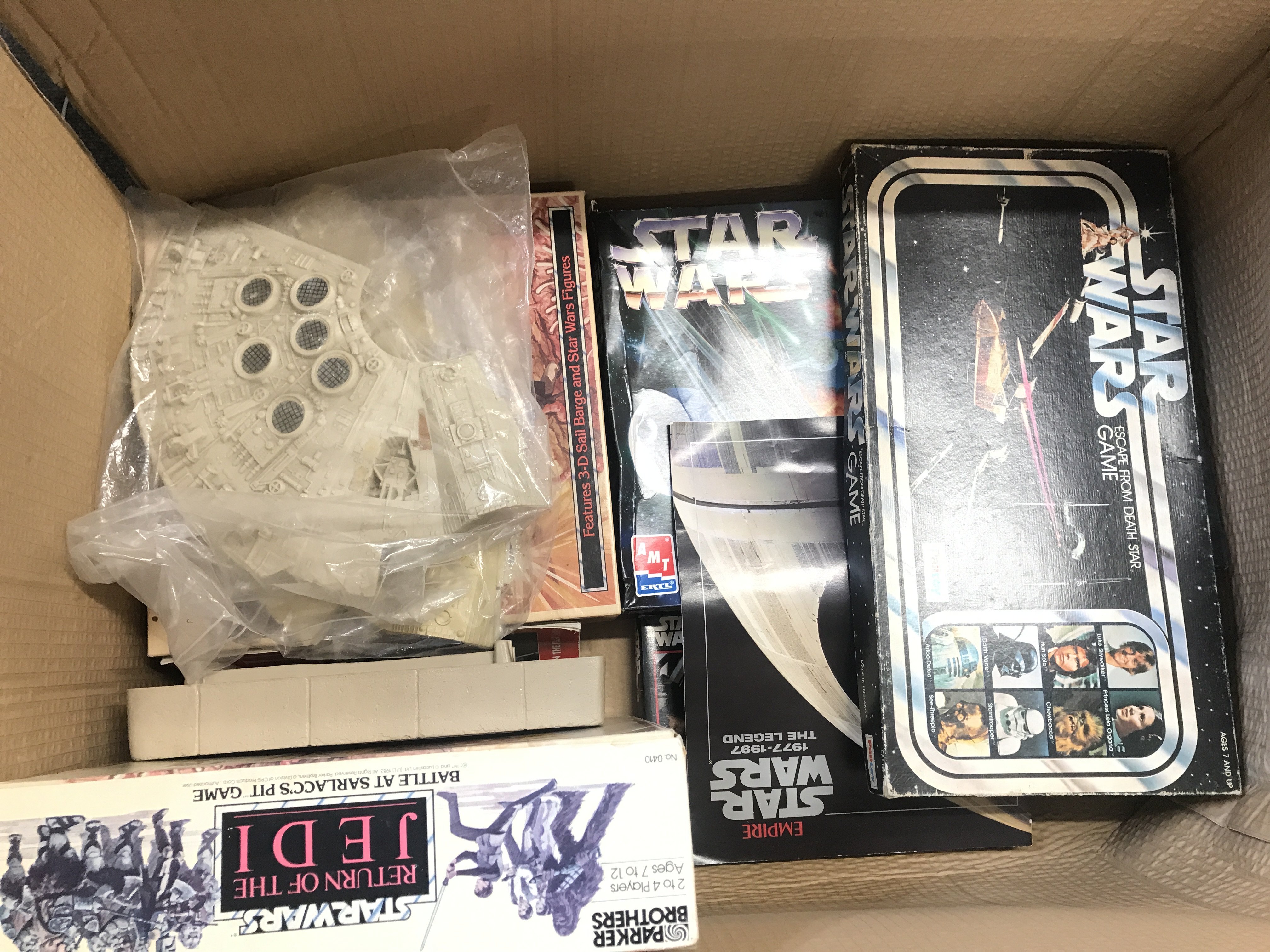 A Box Containing a Collection of Vintage Star Wars Puzzles. Figures. Board Games. Etc.