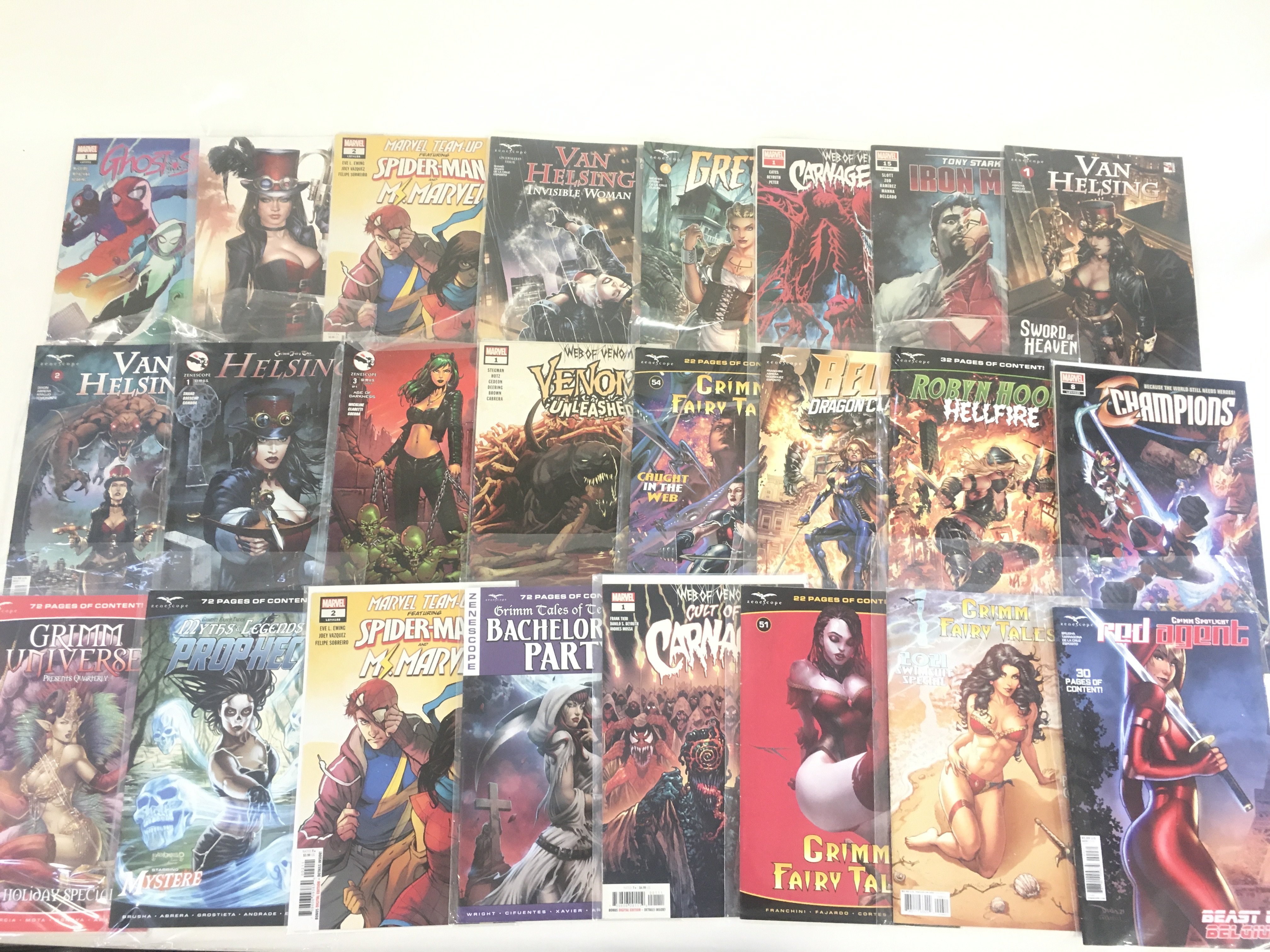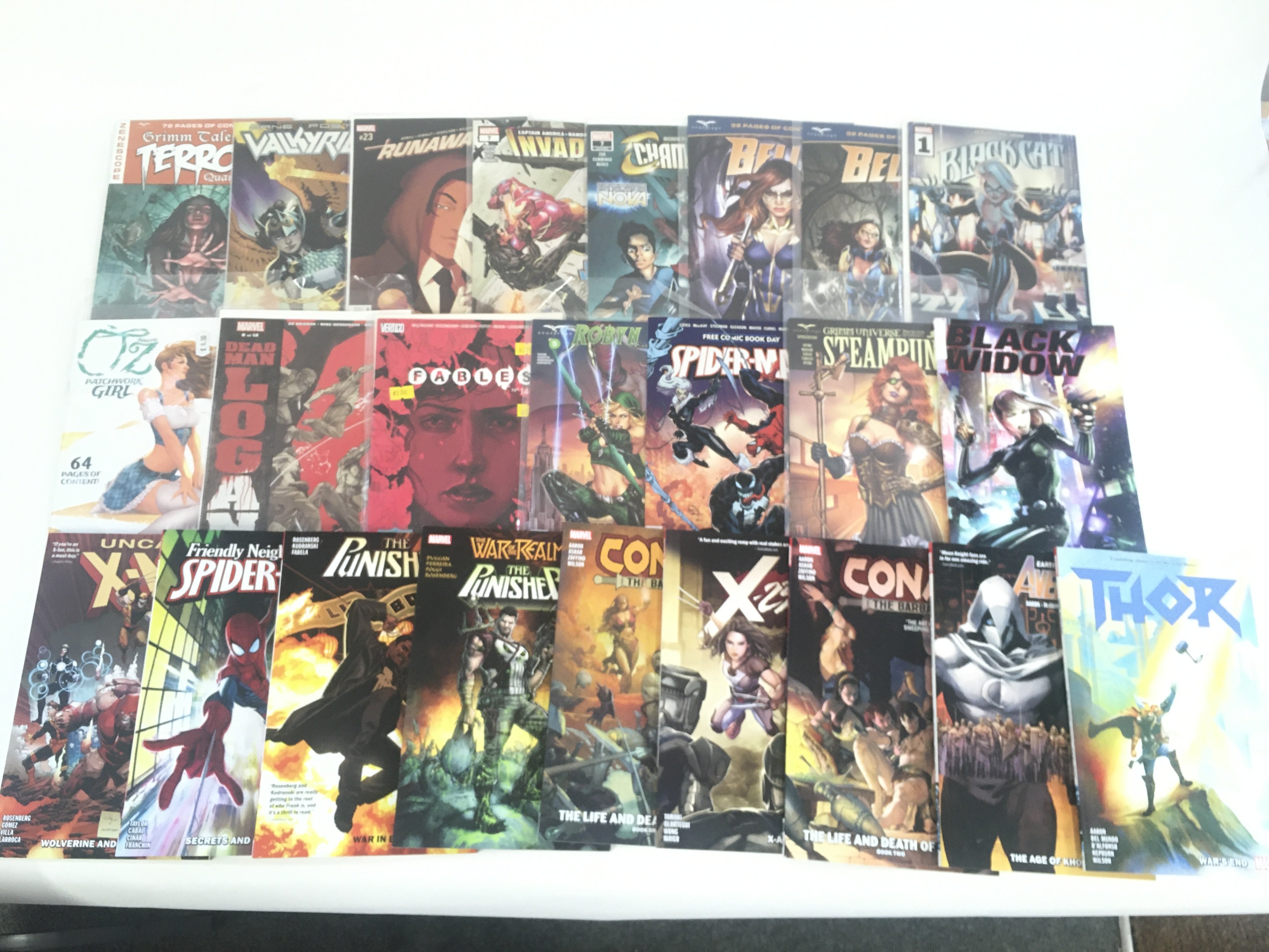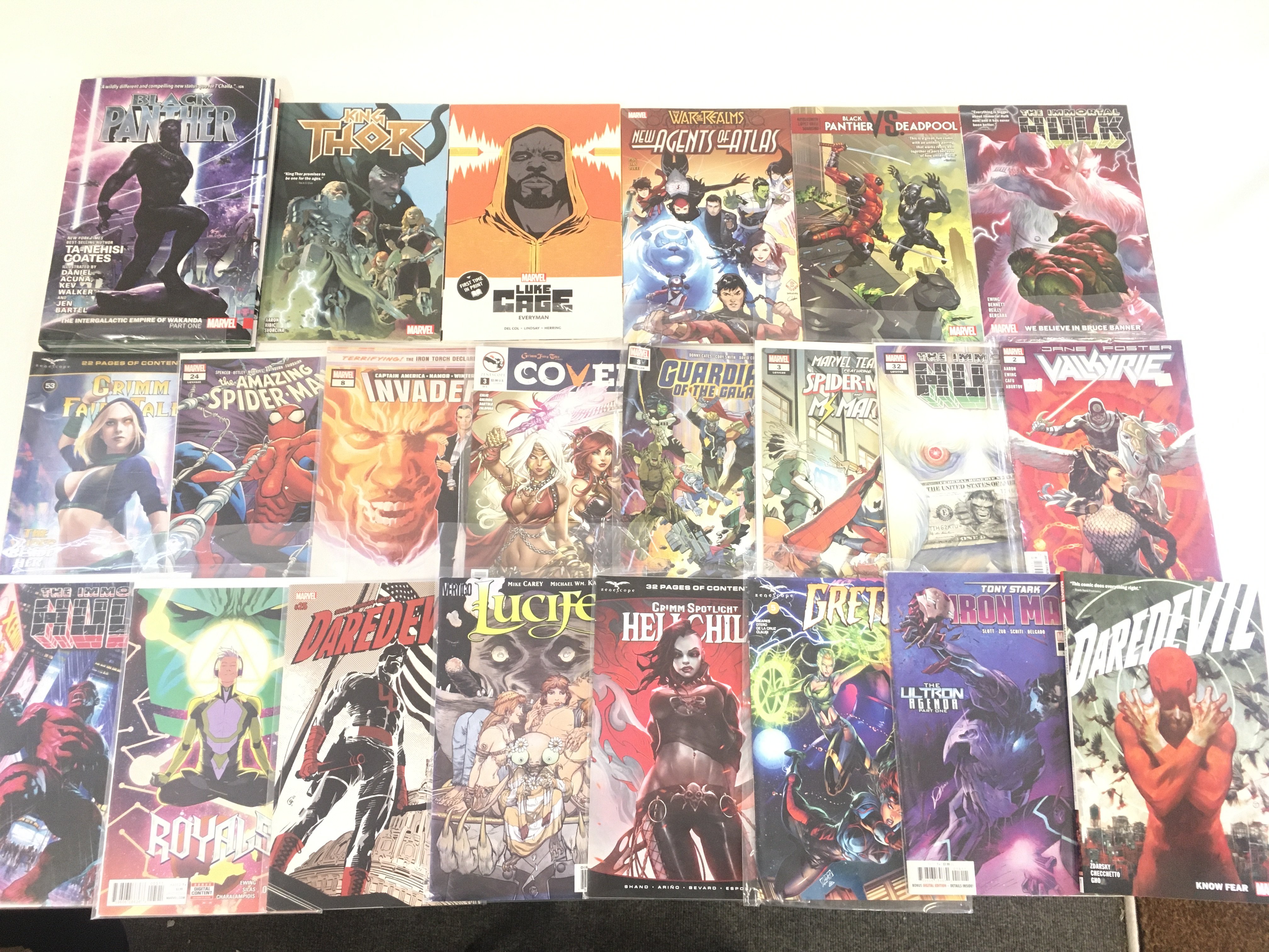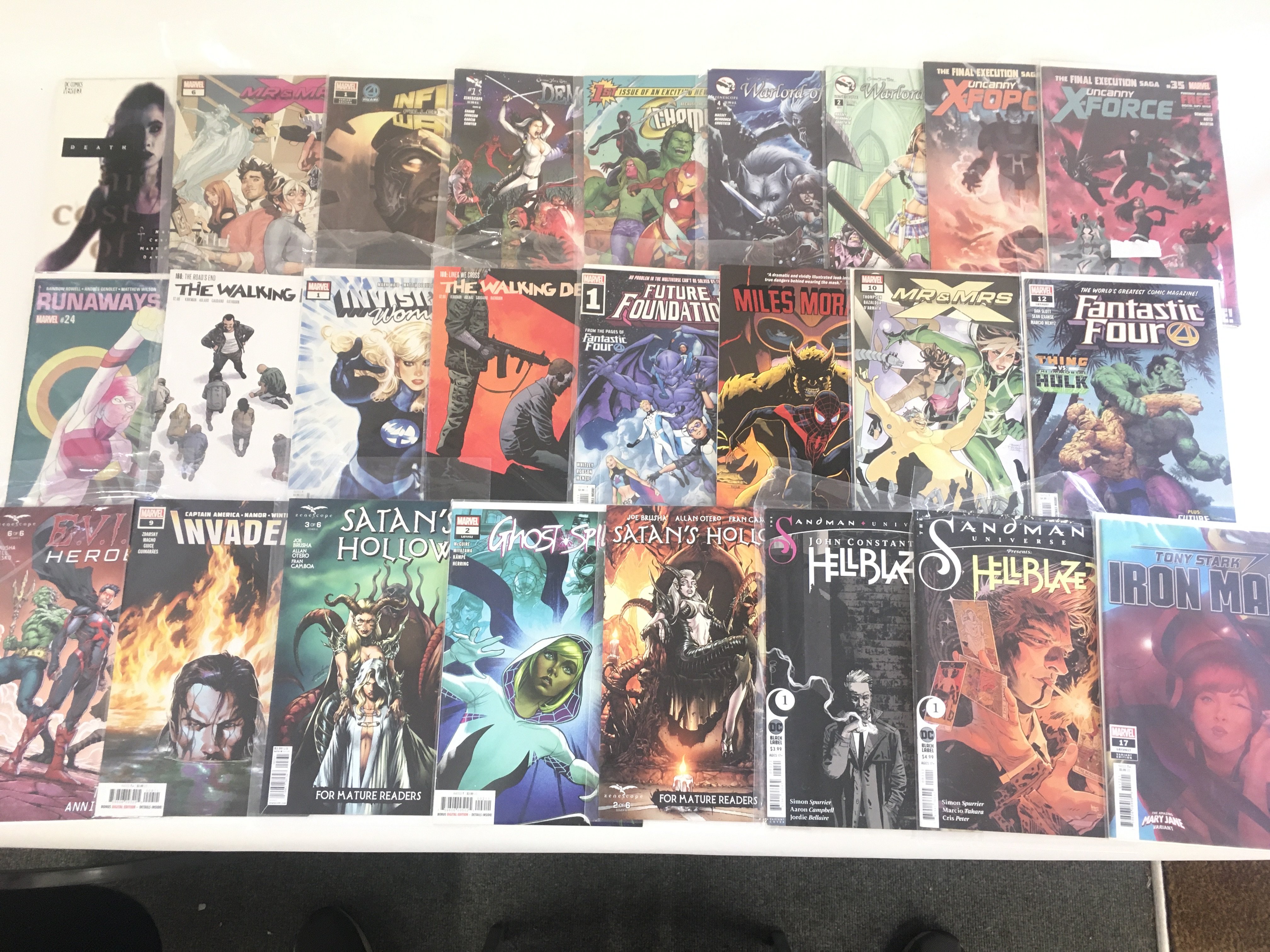 A box containing approximately 100 comics. Various titles including Marvel and DC. No reserve.