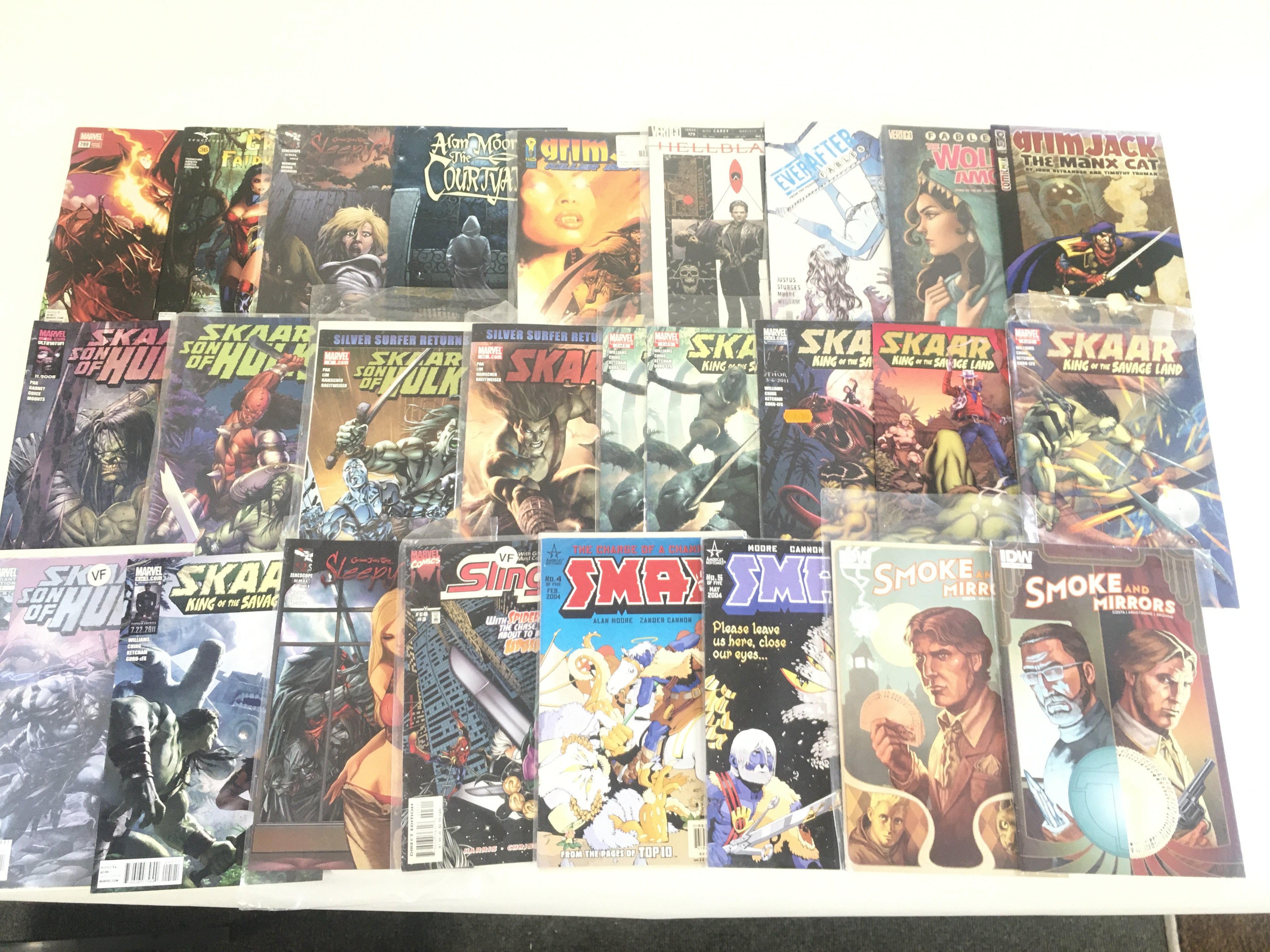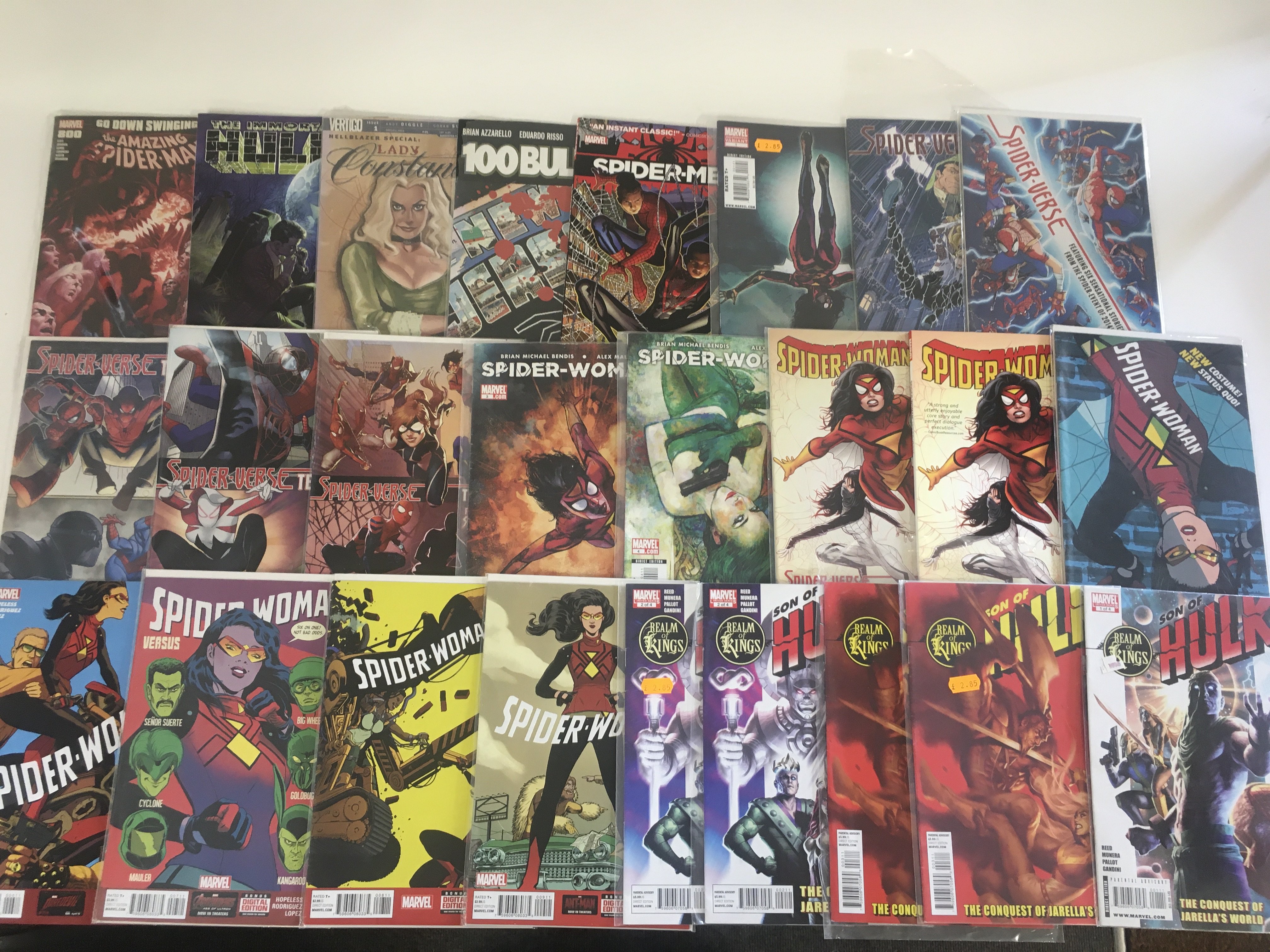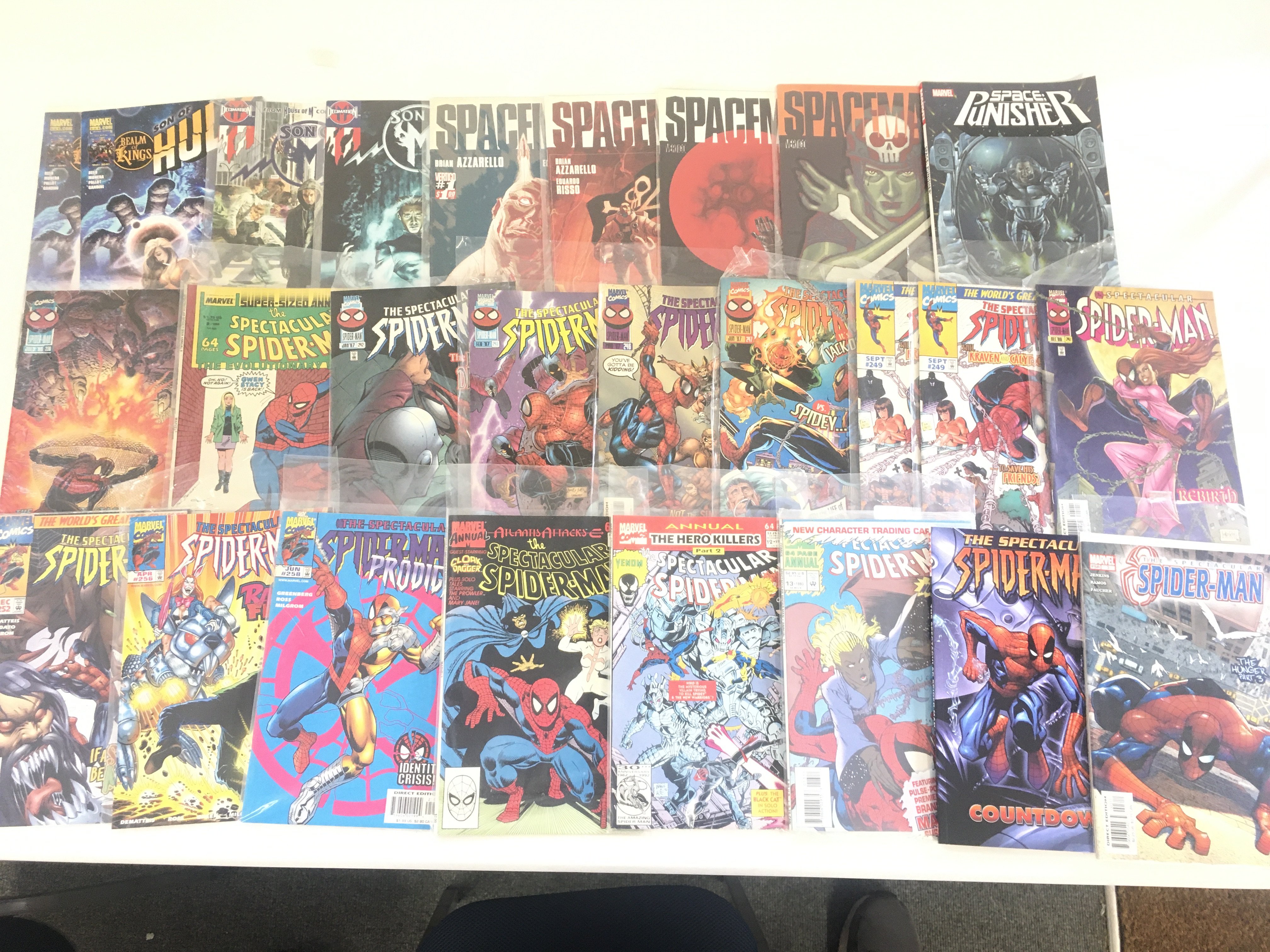 A box containing approximately 100 comics. Various titles including Marvel and DC. No reserve.