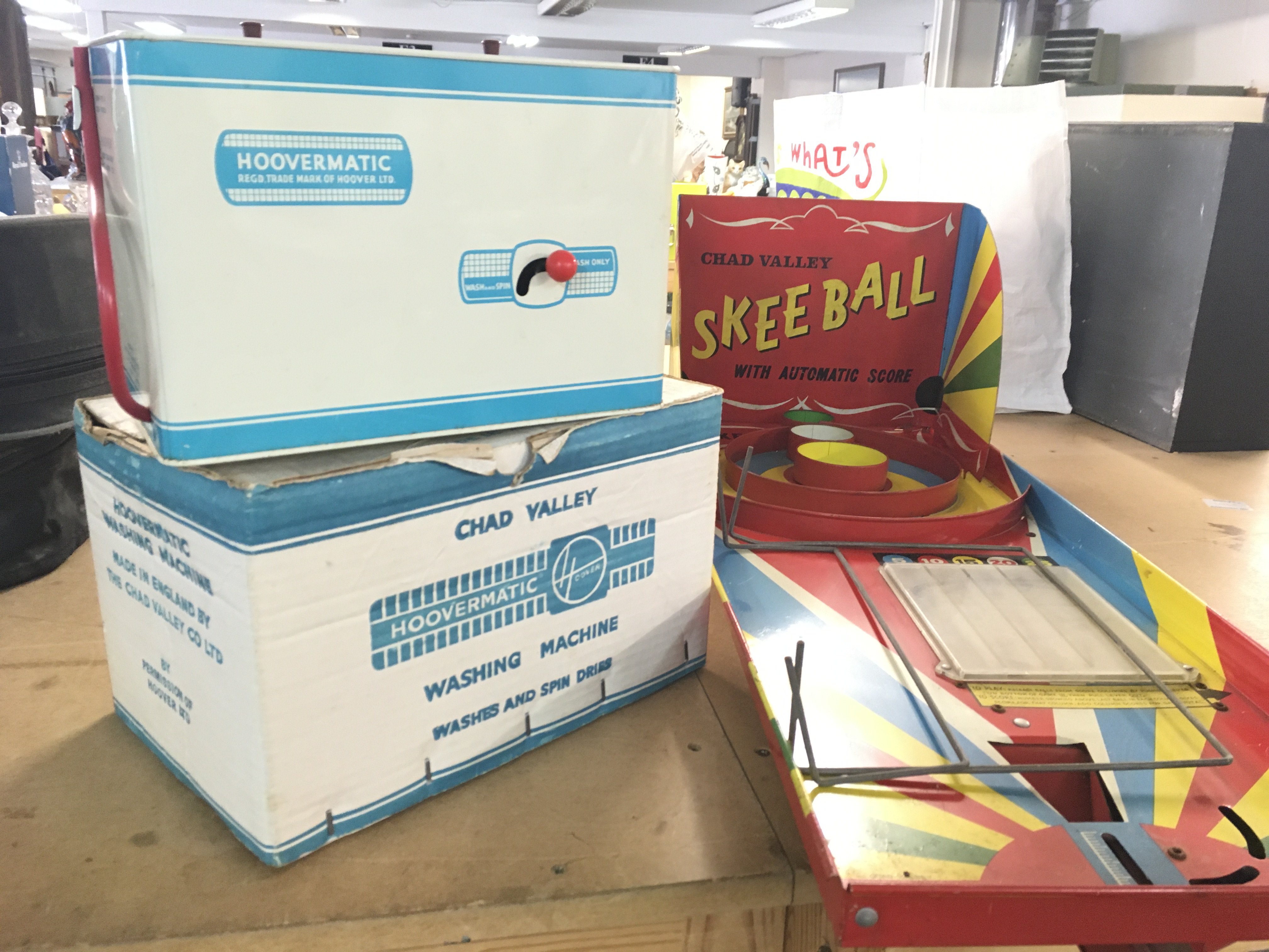 Chad Valley tin plate Skee Ball & a boxed Chad Valley washing machine, postage category C