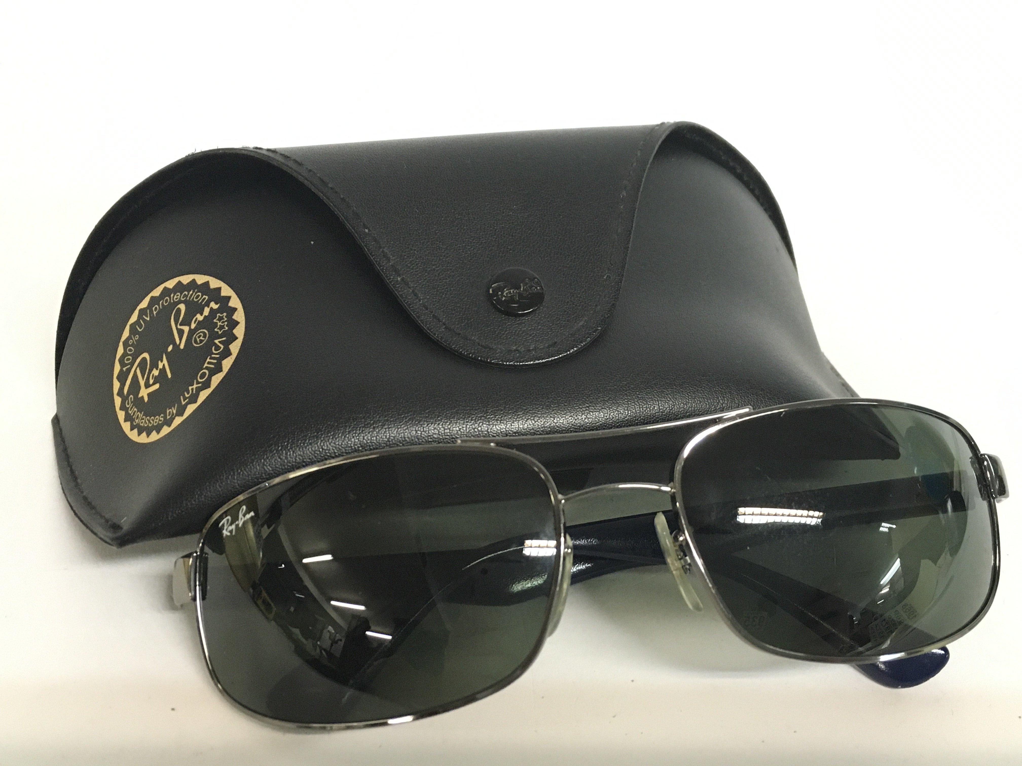 A pair of cased Ray Ban RB3445 sunglasses. Postage category A